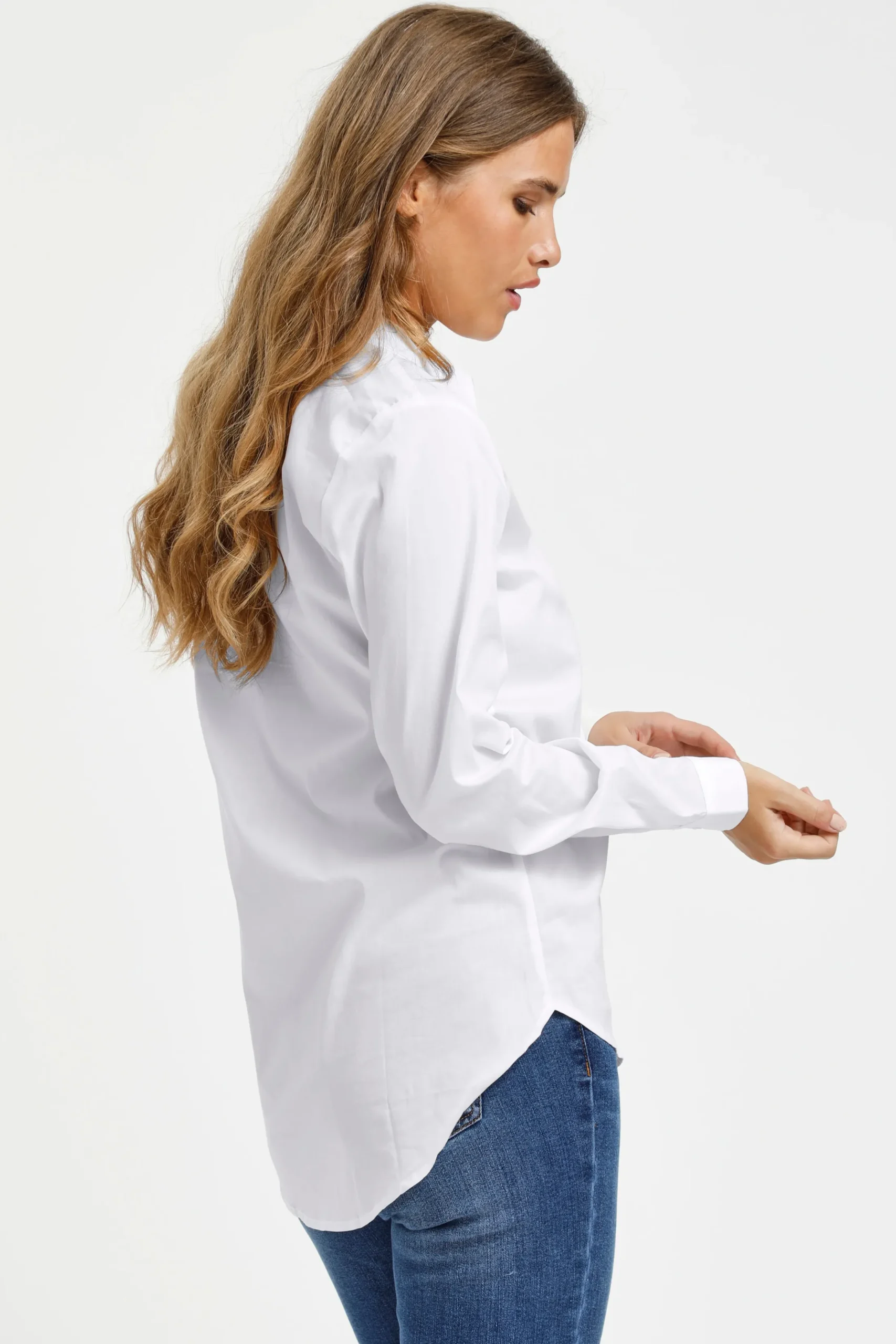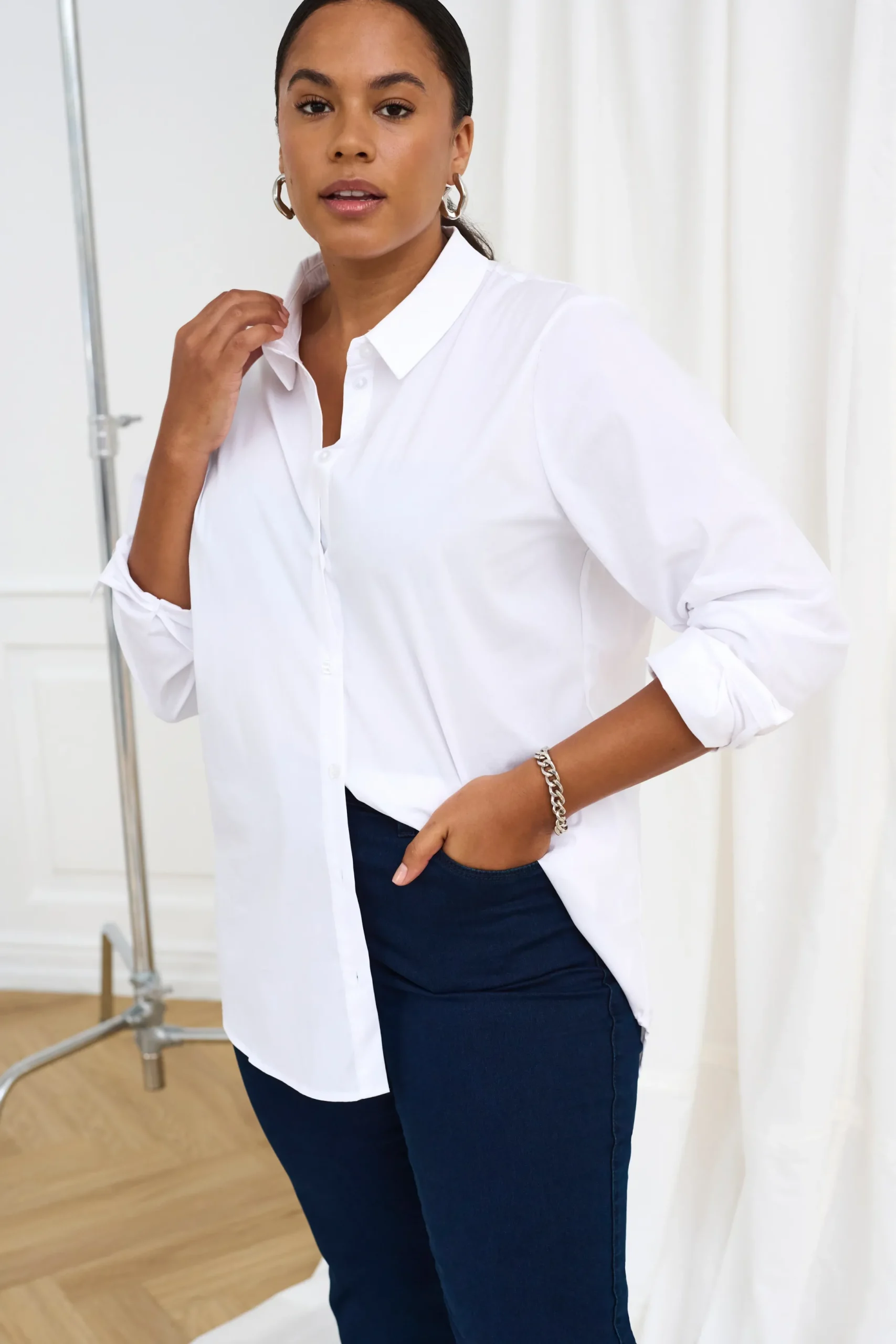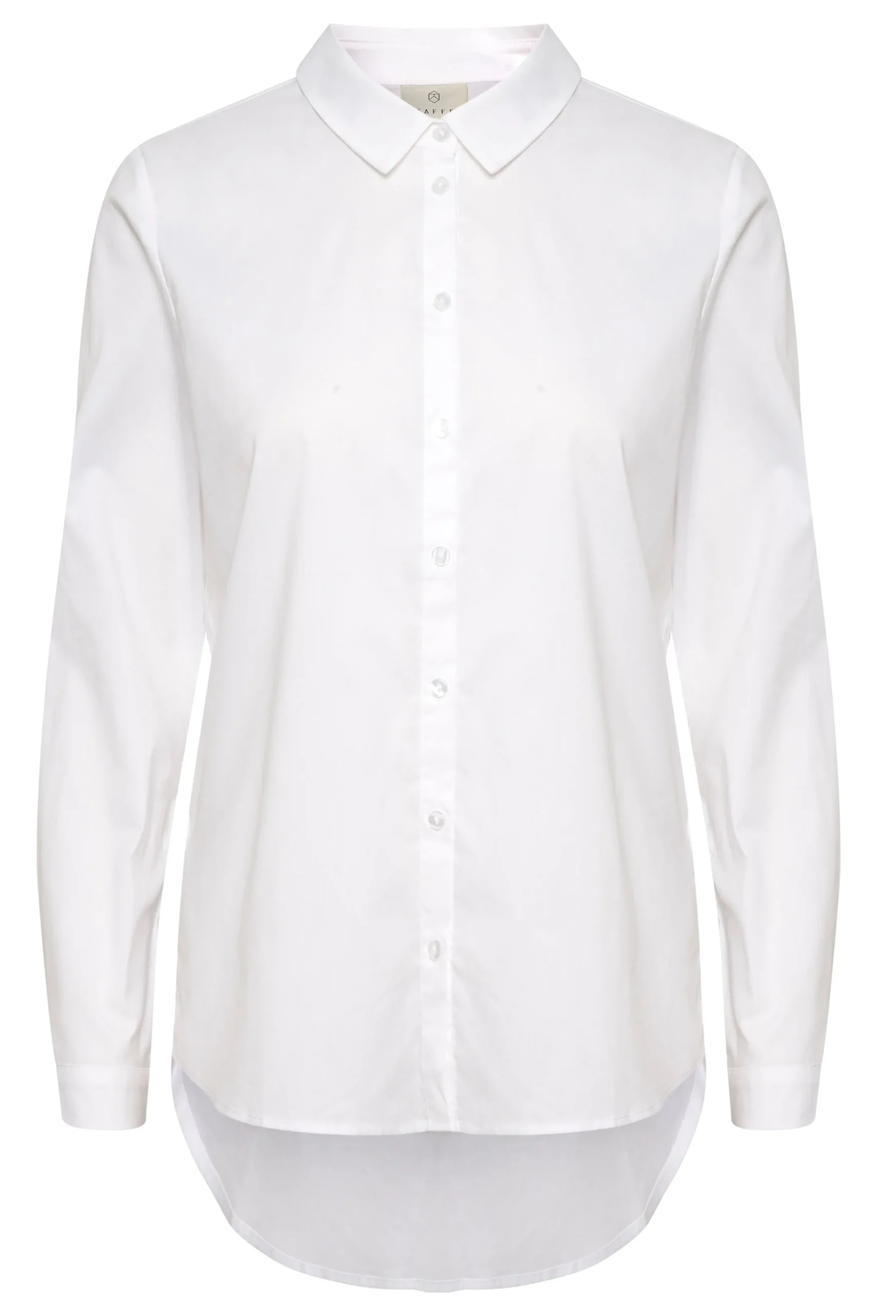 Skjorte fra KAFFE med krave. Lange ærmer med slids, manchet og knap. Synlig knaplukning. Afrundet forneden. Længere bagtil end foran. Vævet kvalitet. Skjorten fra KAFFE har normal pasform.