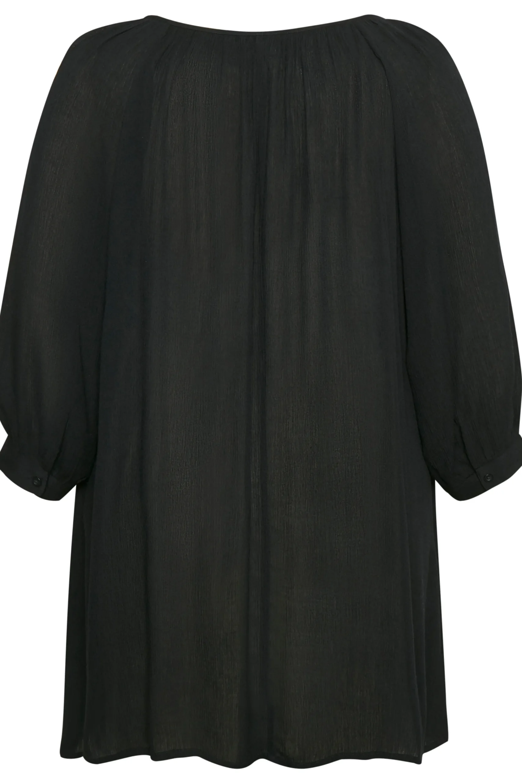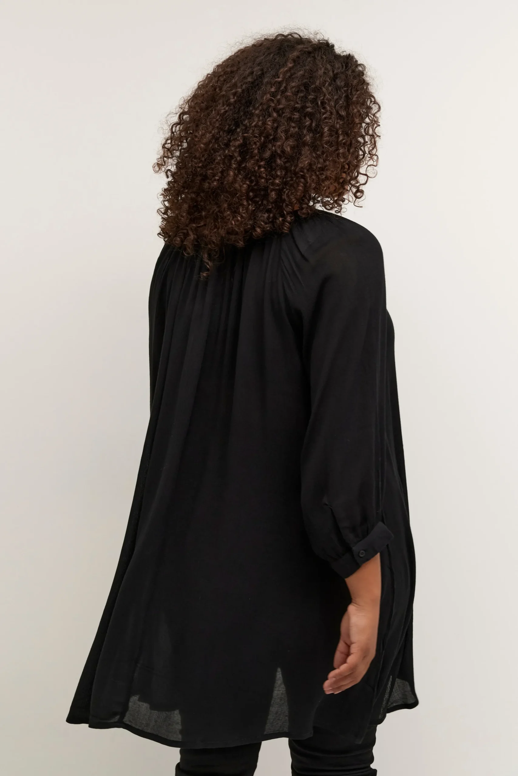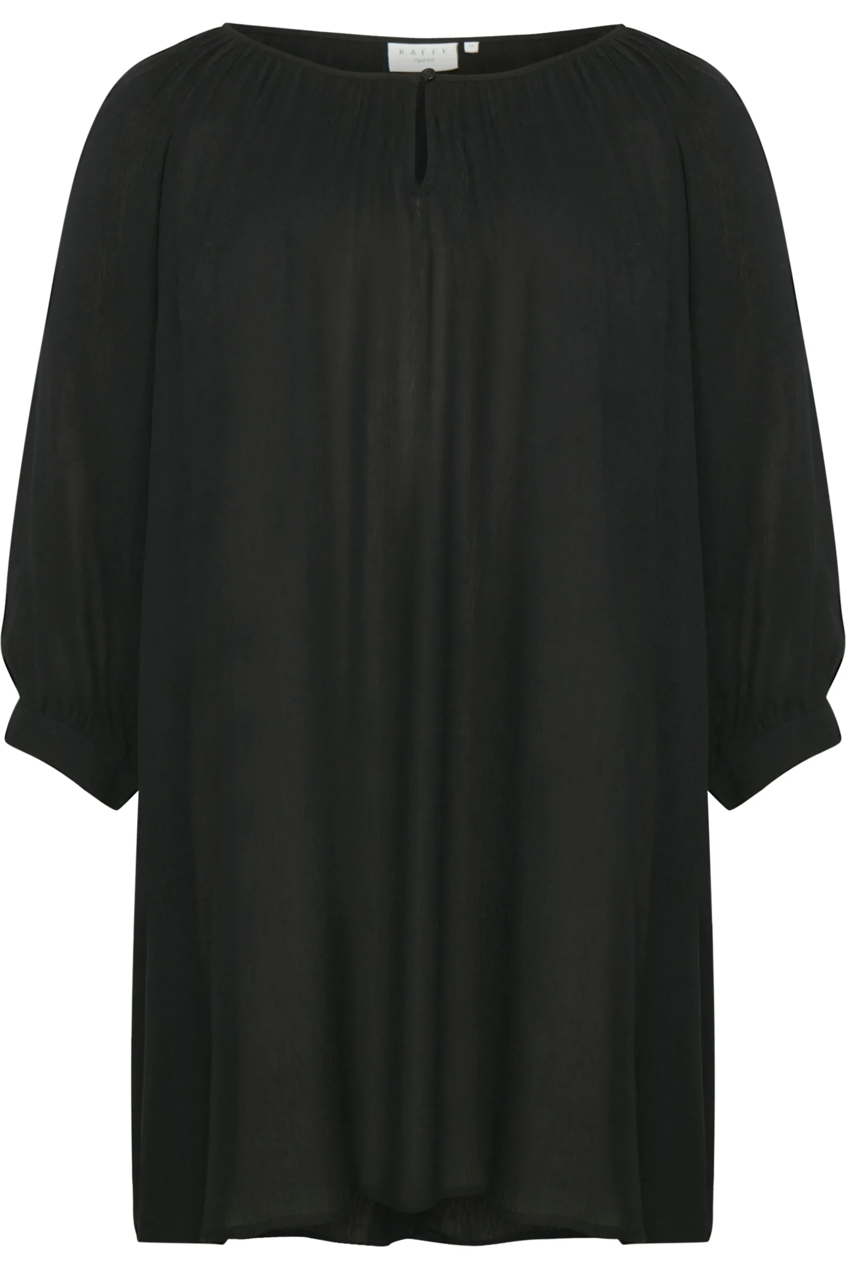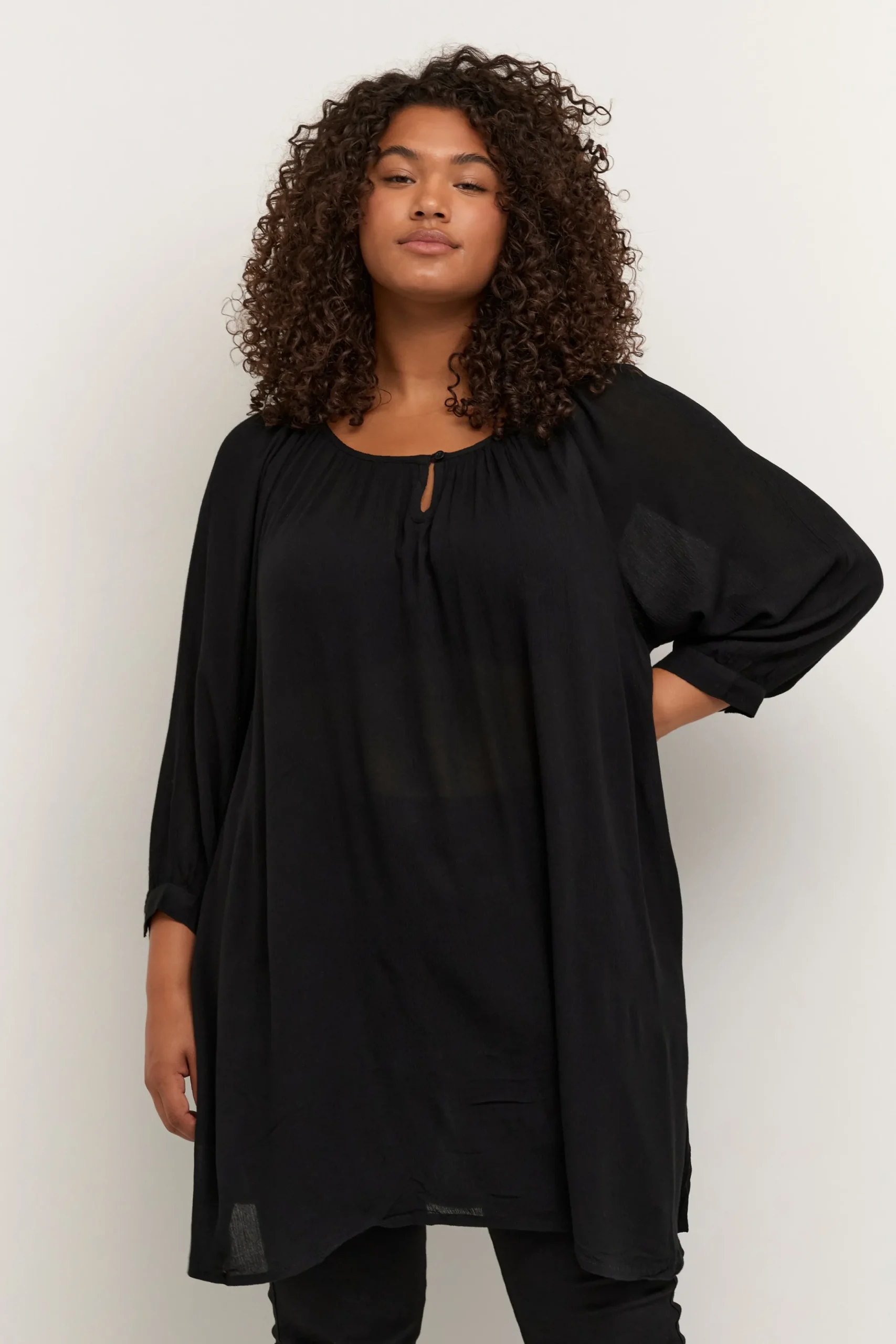 Tunika fra KAFFE med rund hals. 3/4-ærmer. Slids og knap i hals samt ærmer. Vævet kvalitet. Tunikaen fra KAFFE har normal pasform.