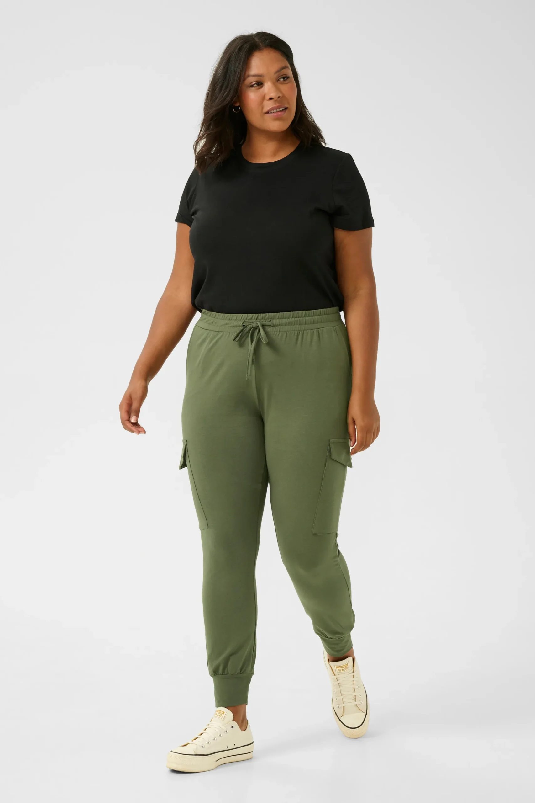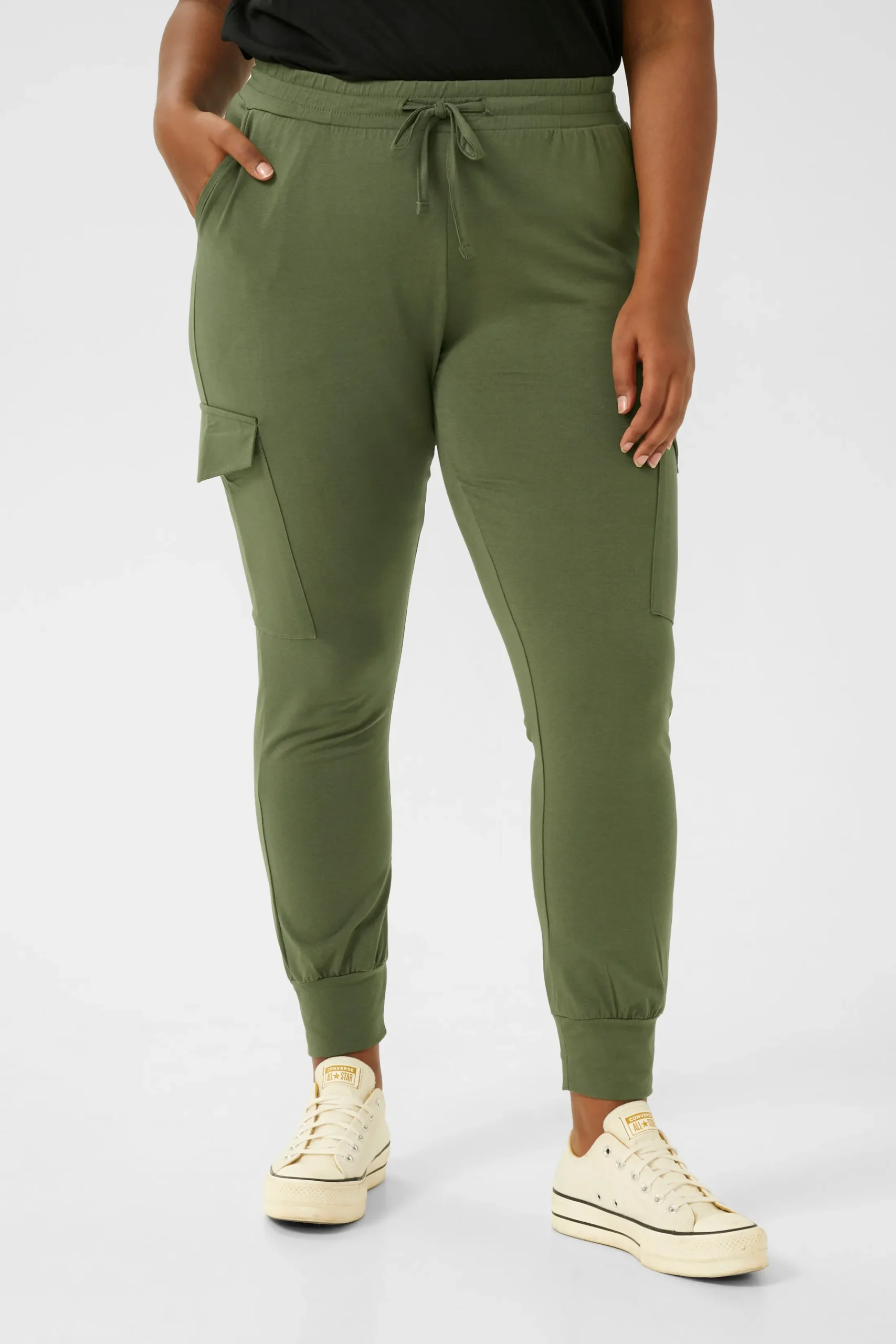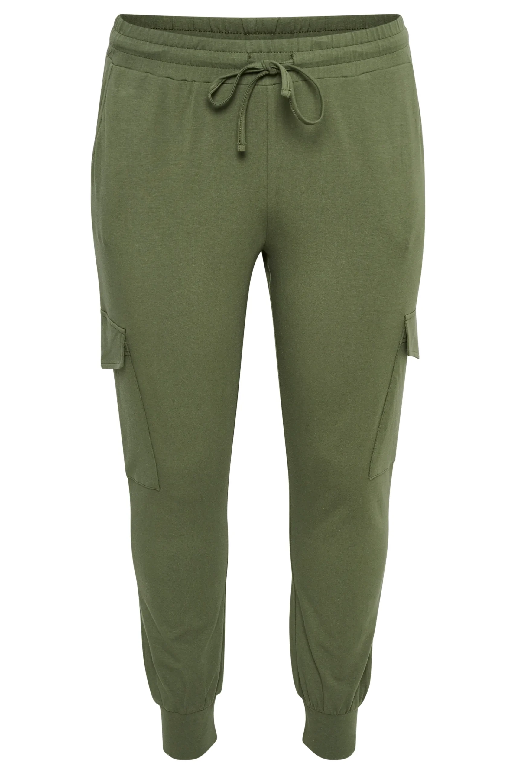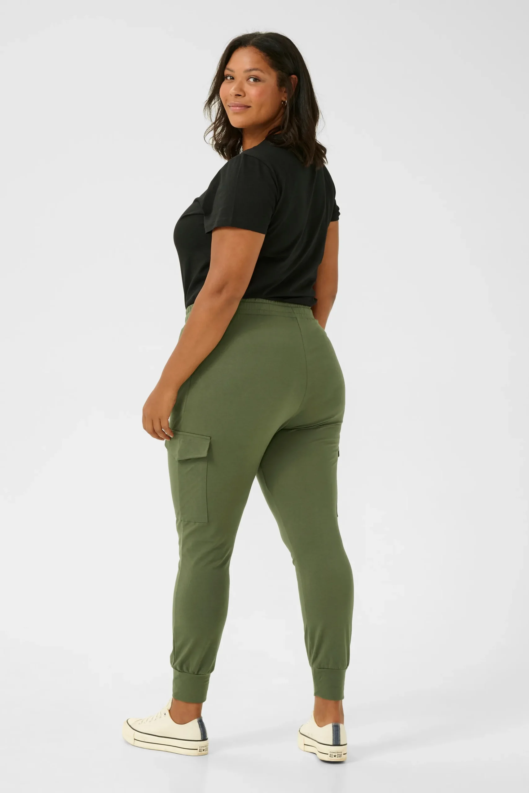 Buks fra KAFFE CURVE med elastik og snøre i taljen. Stiklommer i siden samt lommer på lår. Ribkant forneden. Kraftig jerseykvalitet. Bukserne fra KAFFE CURVE har løstsiddende pasform.