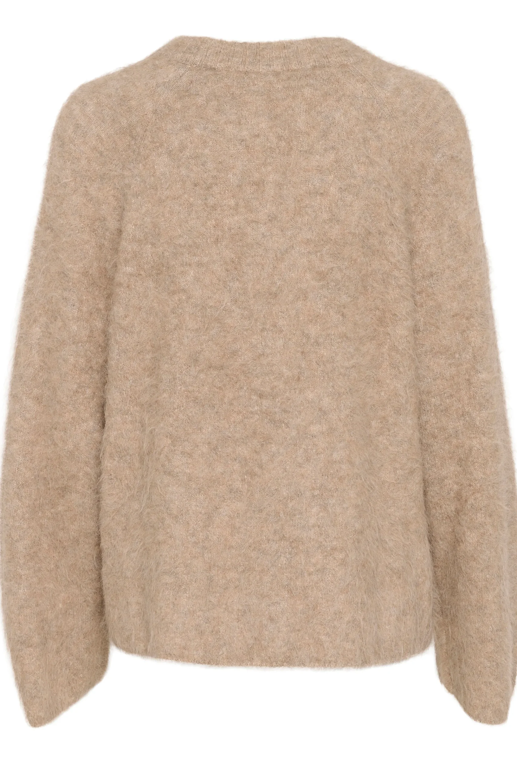 Denne klassiske sweater med rund hals er uundværlig i garderoben. Lavet af en blød uldblanding, tilbyder den både varme og komfort. Den enkle design gør den alsidig til både hverdagsbrug og afslappede aftener, perfekt med et par jeans eller en nederdel.