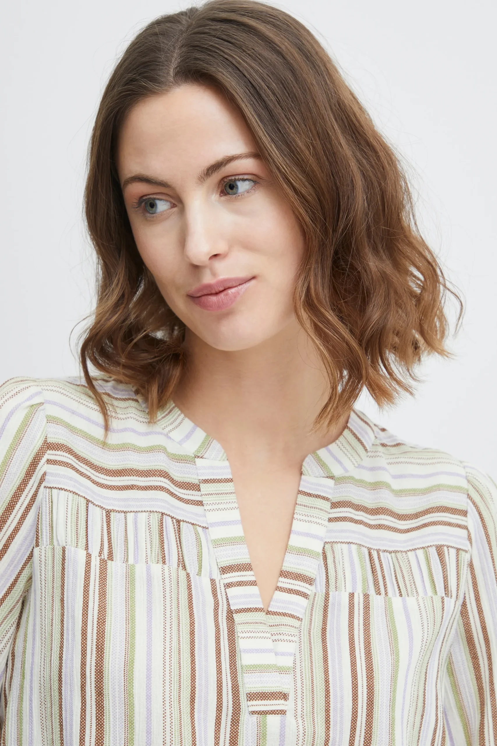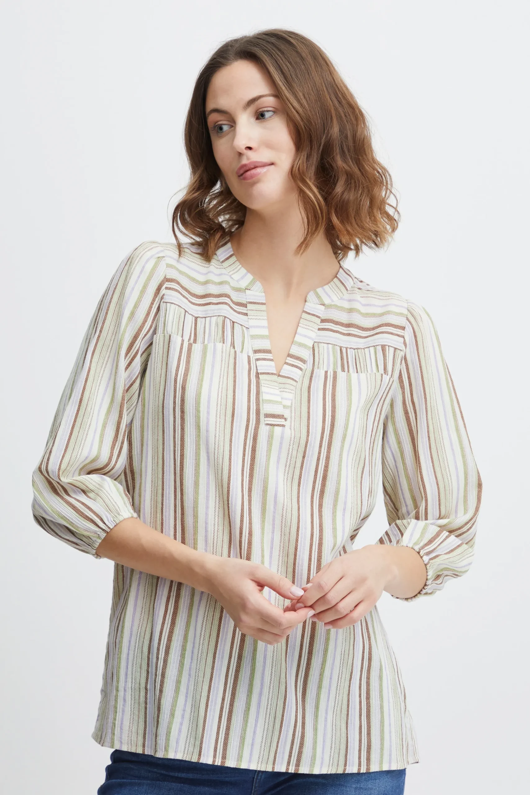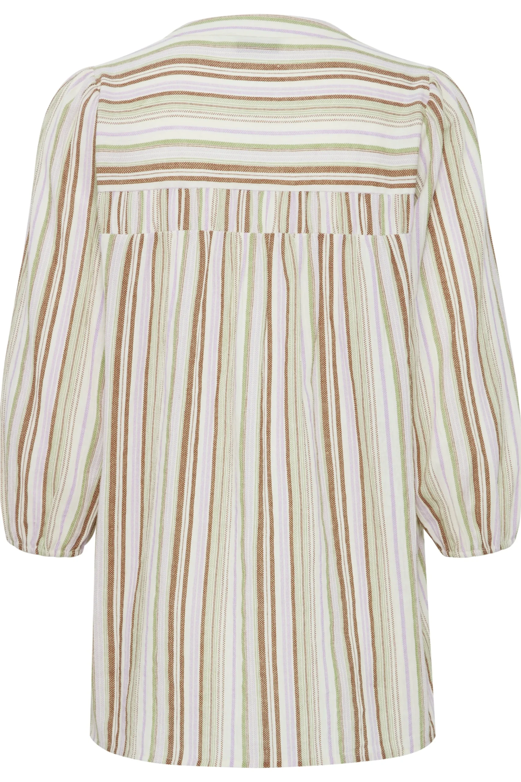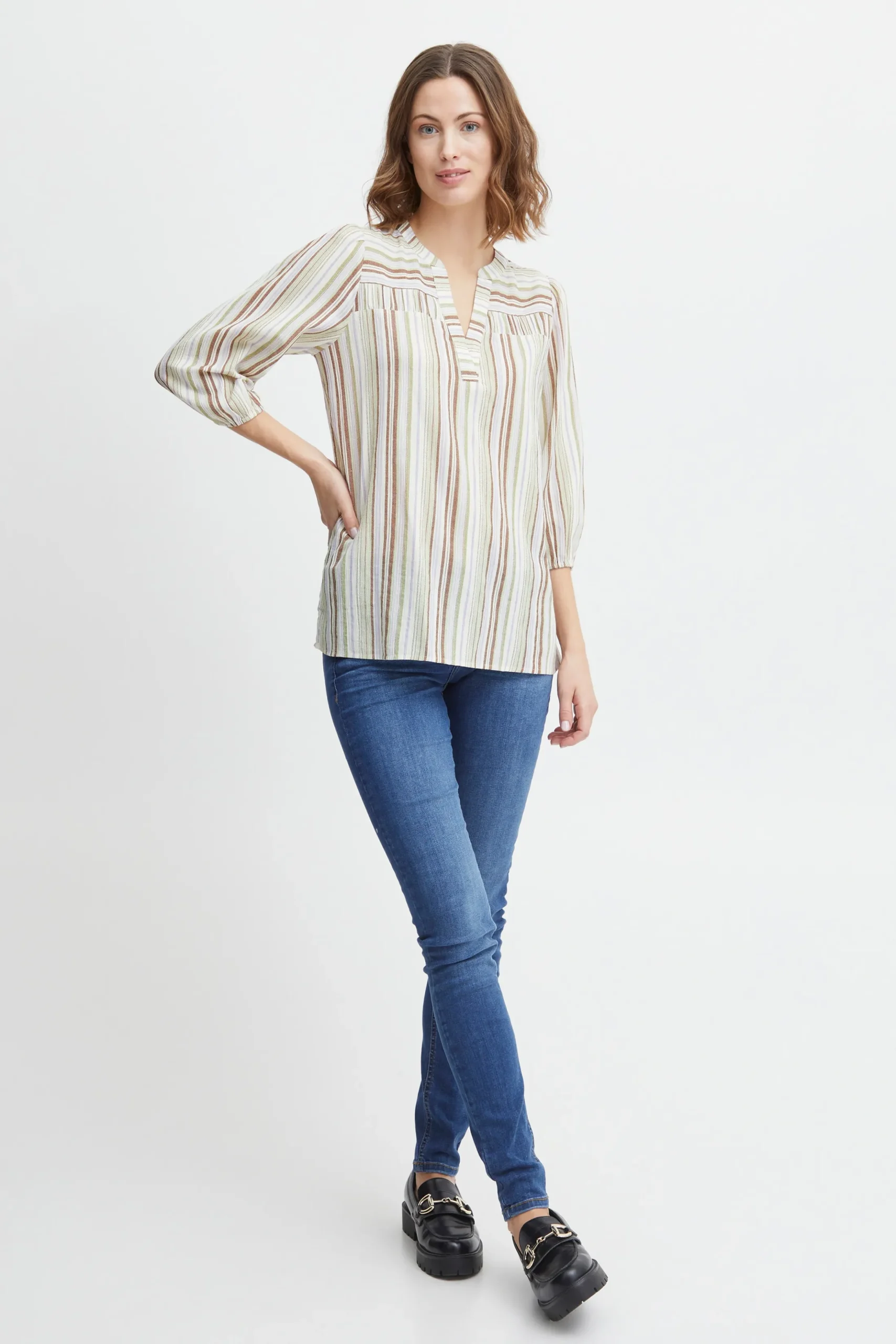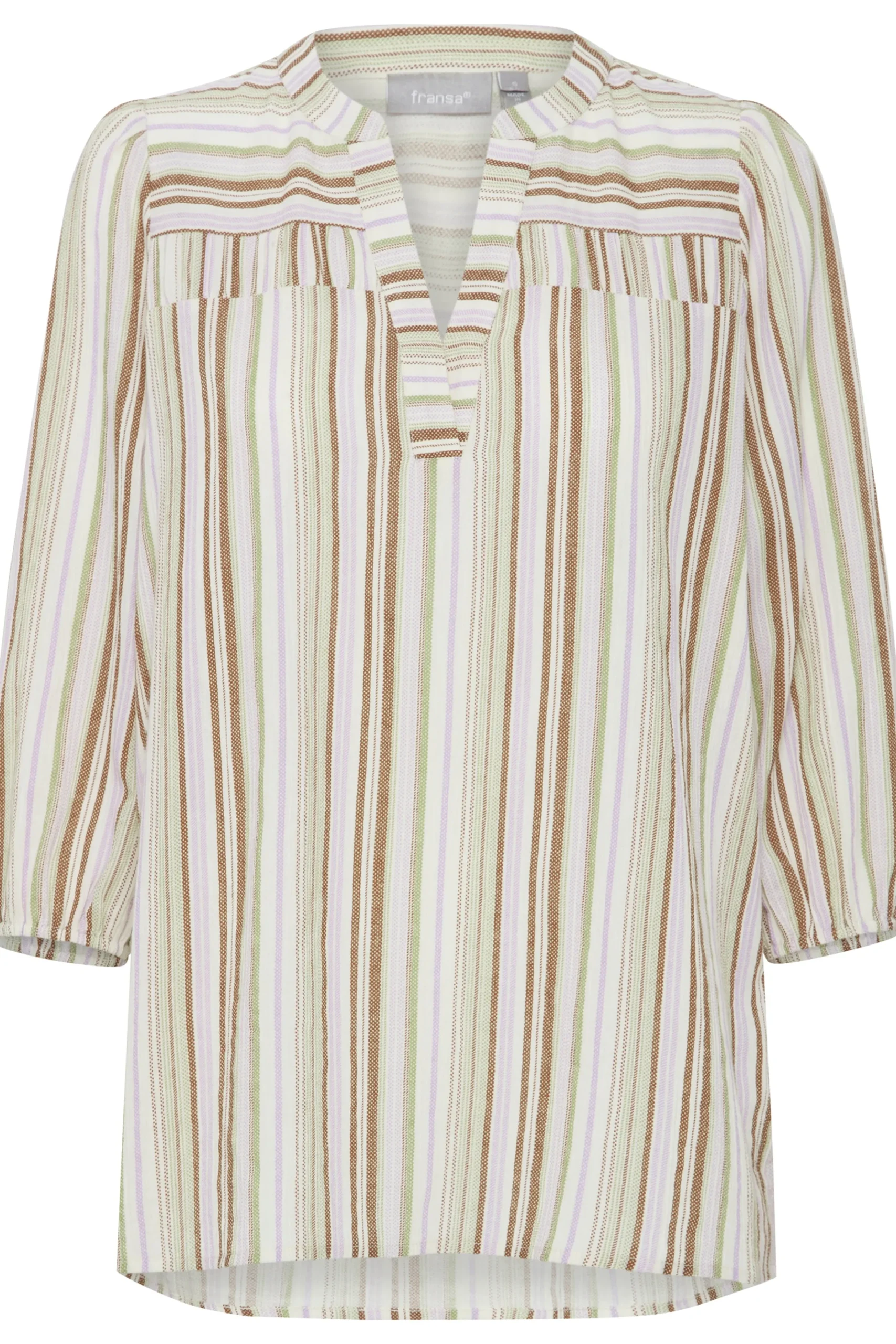 Bluse fra Fransa med rund hals og V-udskæring. 3/4- ærmer. Vævet crinklet kvalitet. Normal pasform.