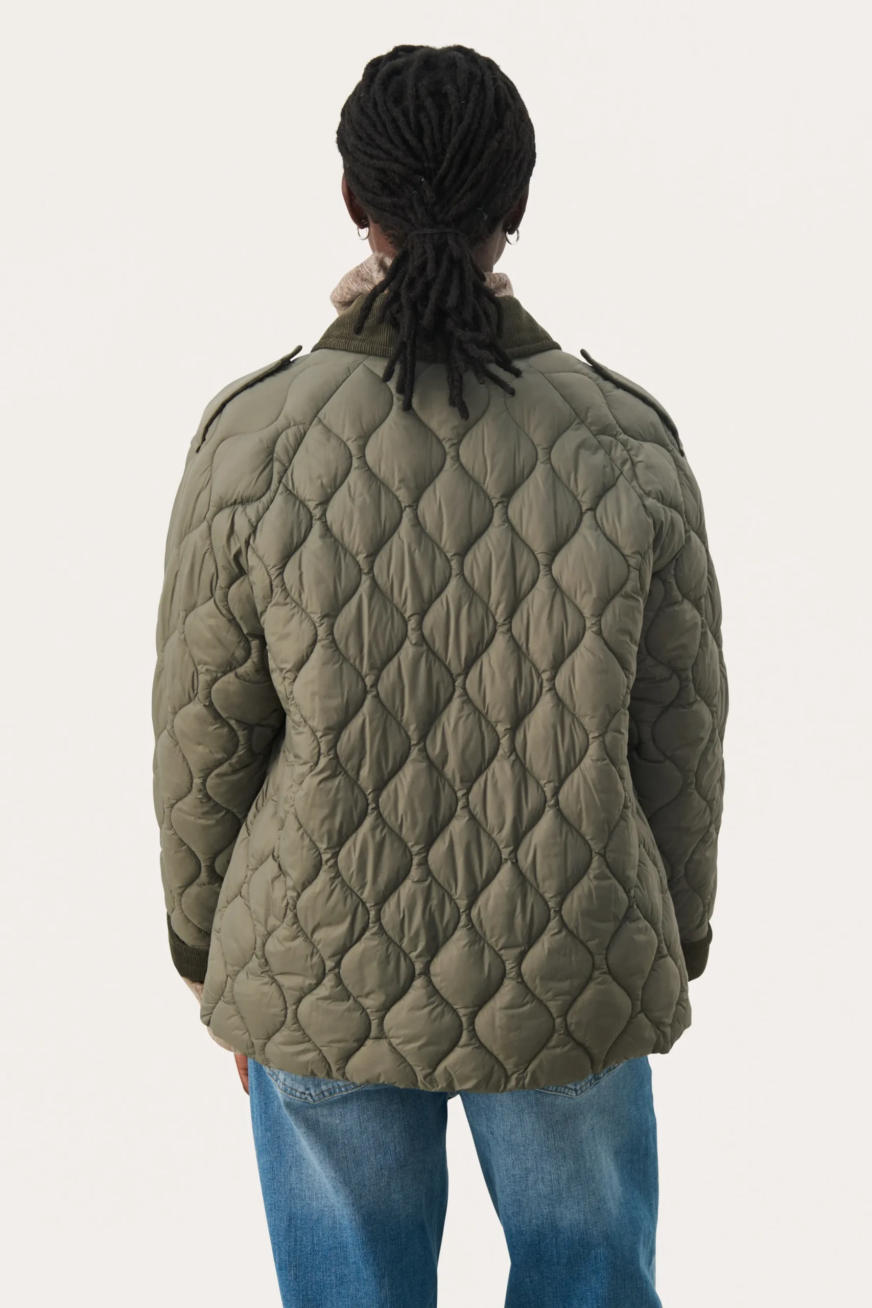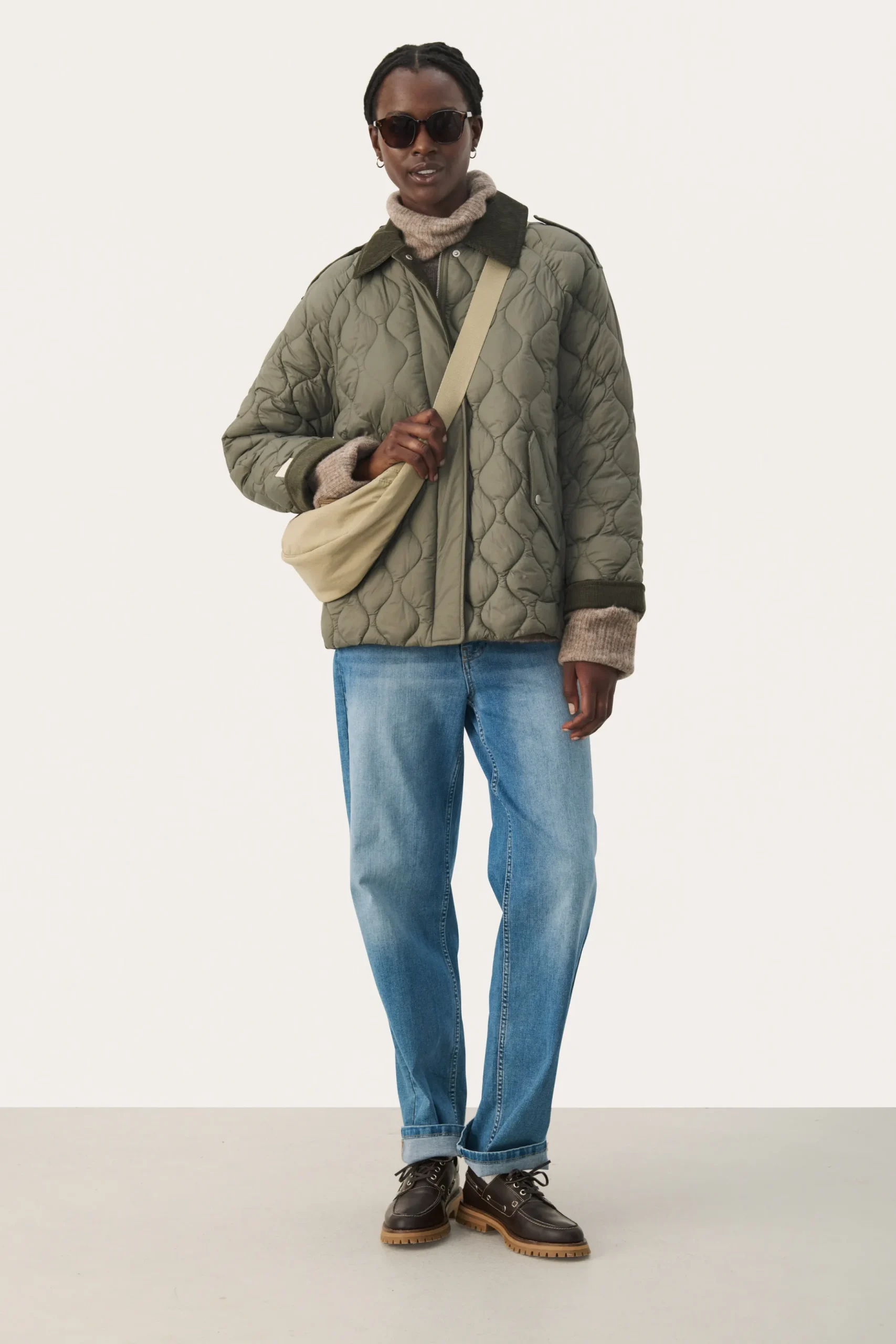 Modellen er 172 cm høj og er iført en størrelse 36.\\n\\nDenne quiltede jakke kombinerer klassisk design med moderne komfort. Den har en rummelig pasform, høj krave og praktiske lommer, der gør den perfekt til kølige dage. Fremstillet af lette materialer, der sikrer varme uden at gå på kompromis med stilen. Ideel til hverdagsbrug.