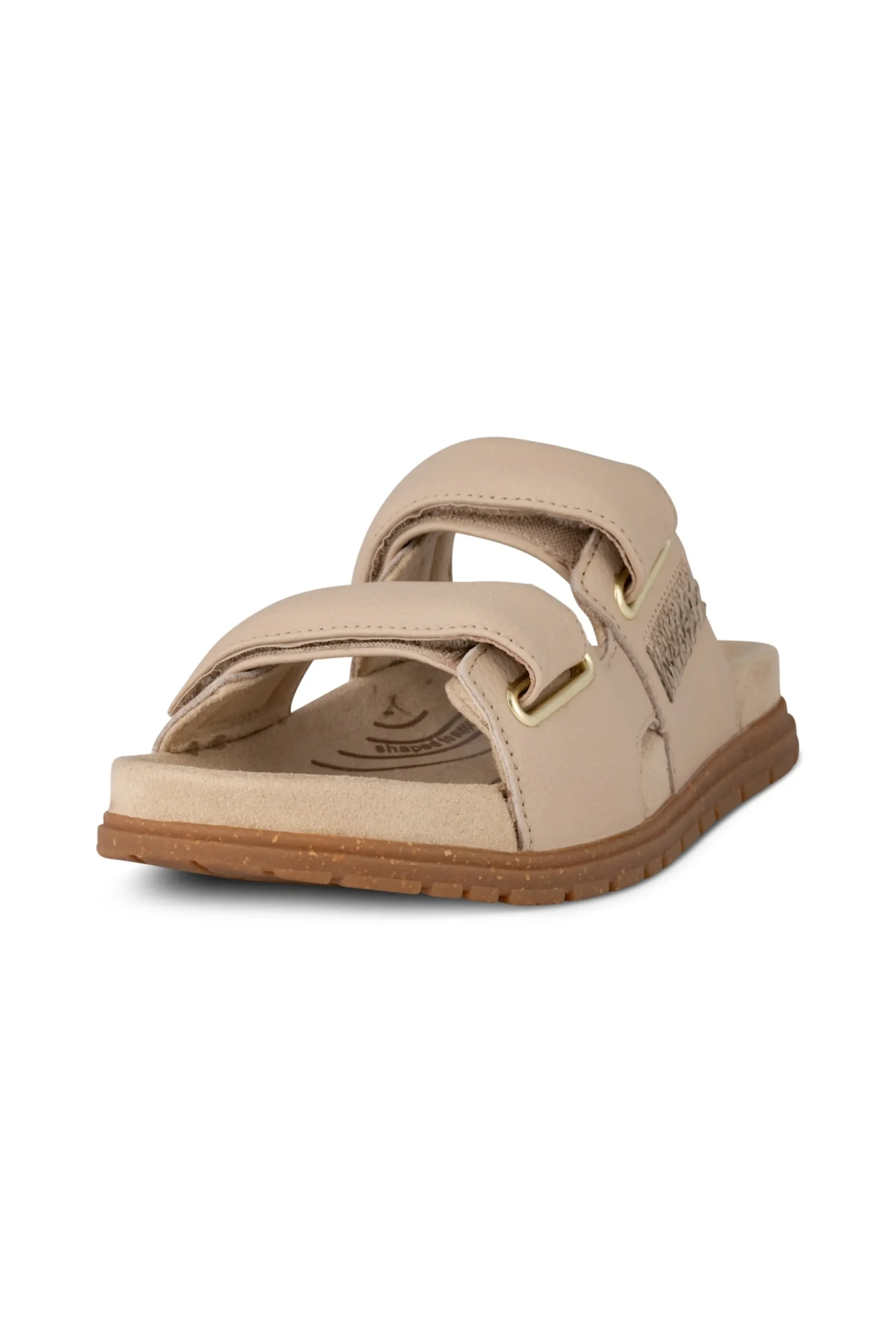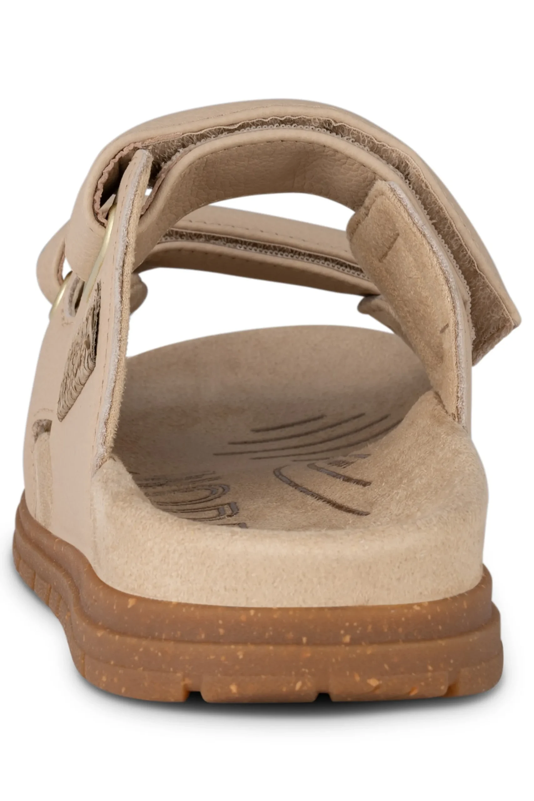 Vi præsenterer den seneste tilføjelse til vores designkollektion, Lisa Leather. Designet i LWG-certificeret læder og er udtryk for stilfuld luksus. Sandalen lukkes med to brede, justerbare stropper med spænder, som giver en sikker pasform. Det monokrome design fremhæves af en tonet indersål i læder og en ydersål i gummi for eksklusiv pasform og komfort.\\n\\n窶æder fra LWG\\n窶ægts mellemsål i PU\\n窶ål i gummi med 10% genanvendt gummi.