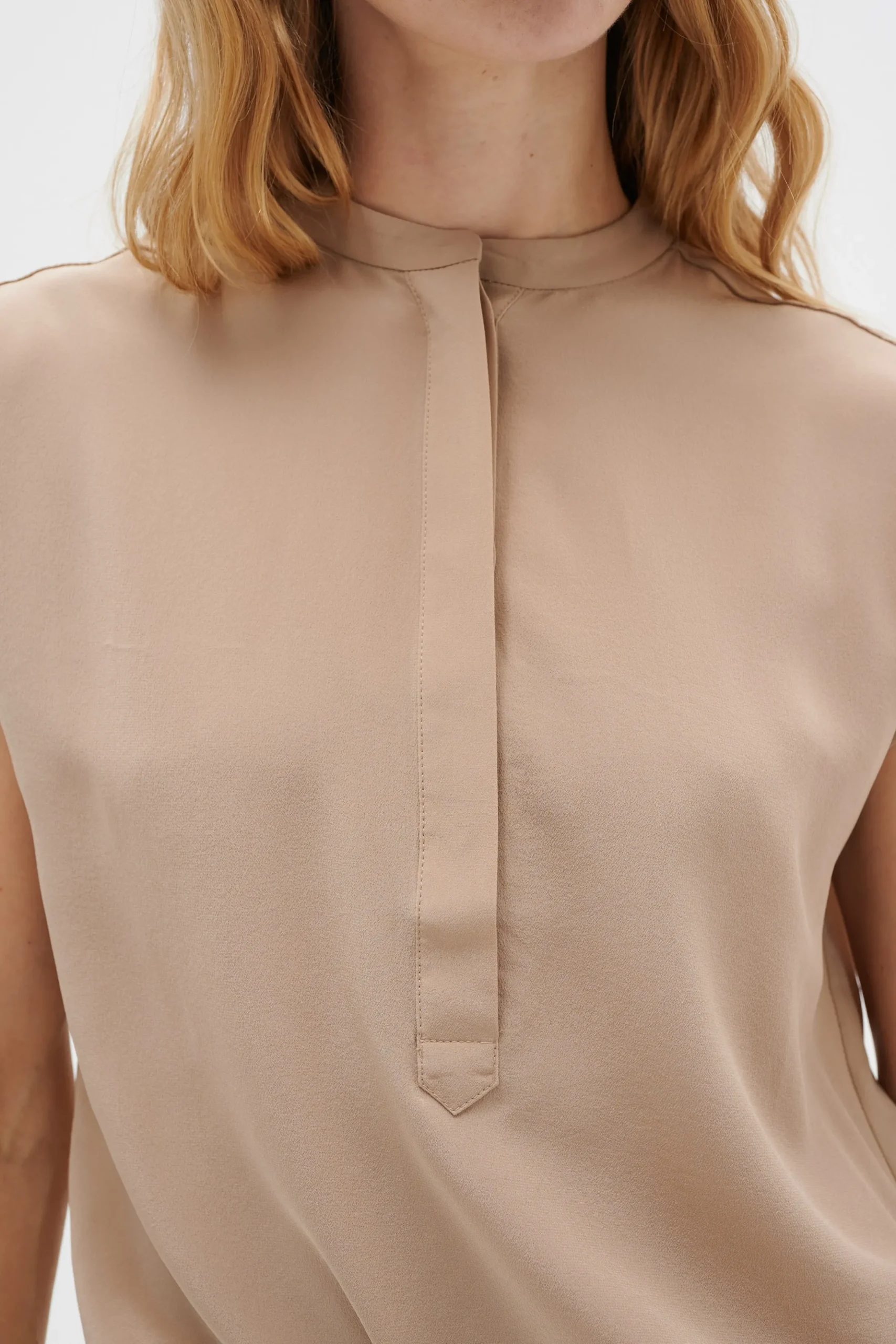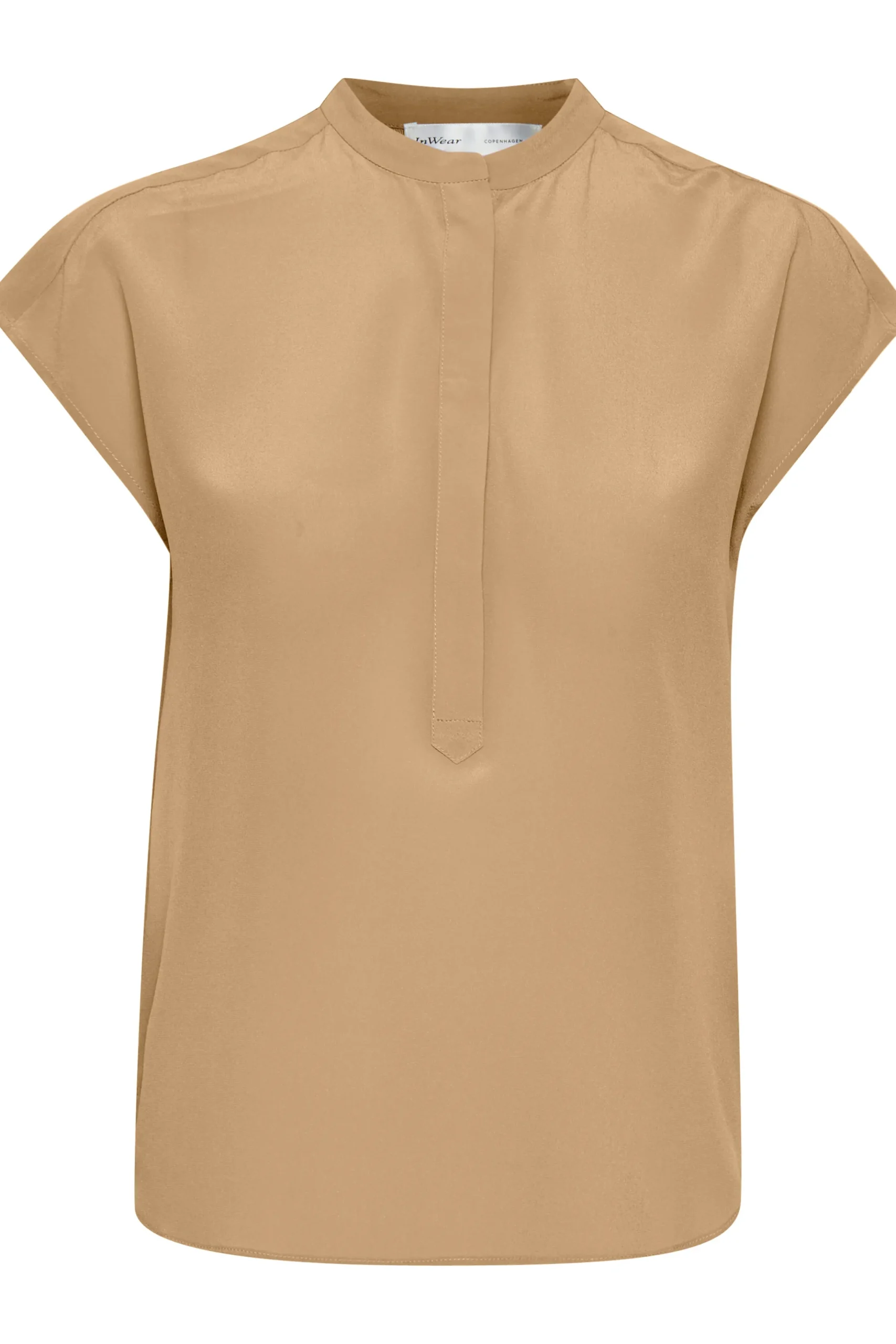 Bluse fra INWEAR med rund hals. Korte ærmer. Stolpe med skjult knaplukning. Vævet kvalitet. Blusen fra INWEAR har normal pasform.
