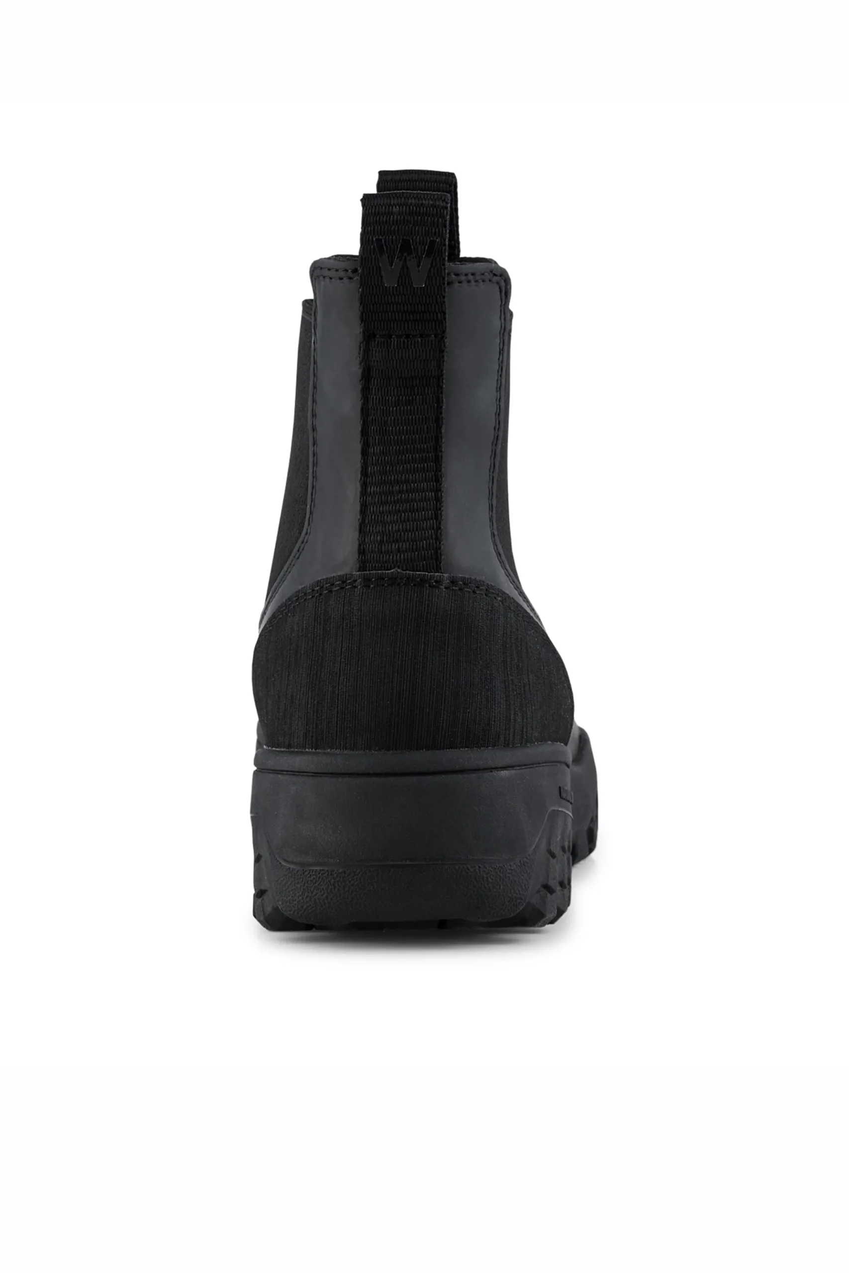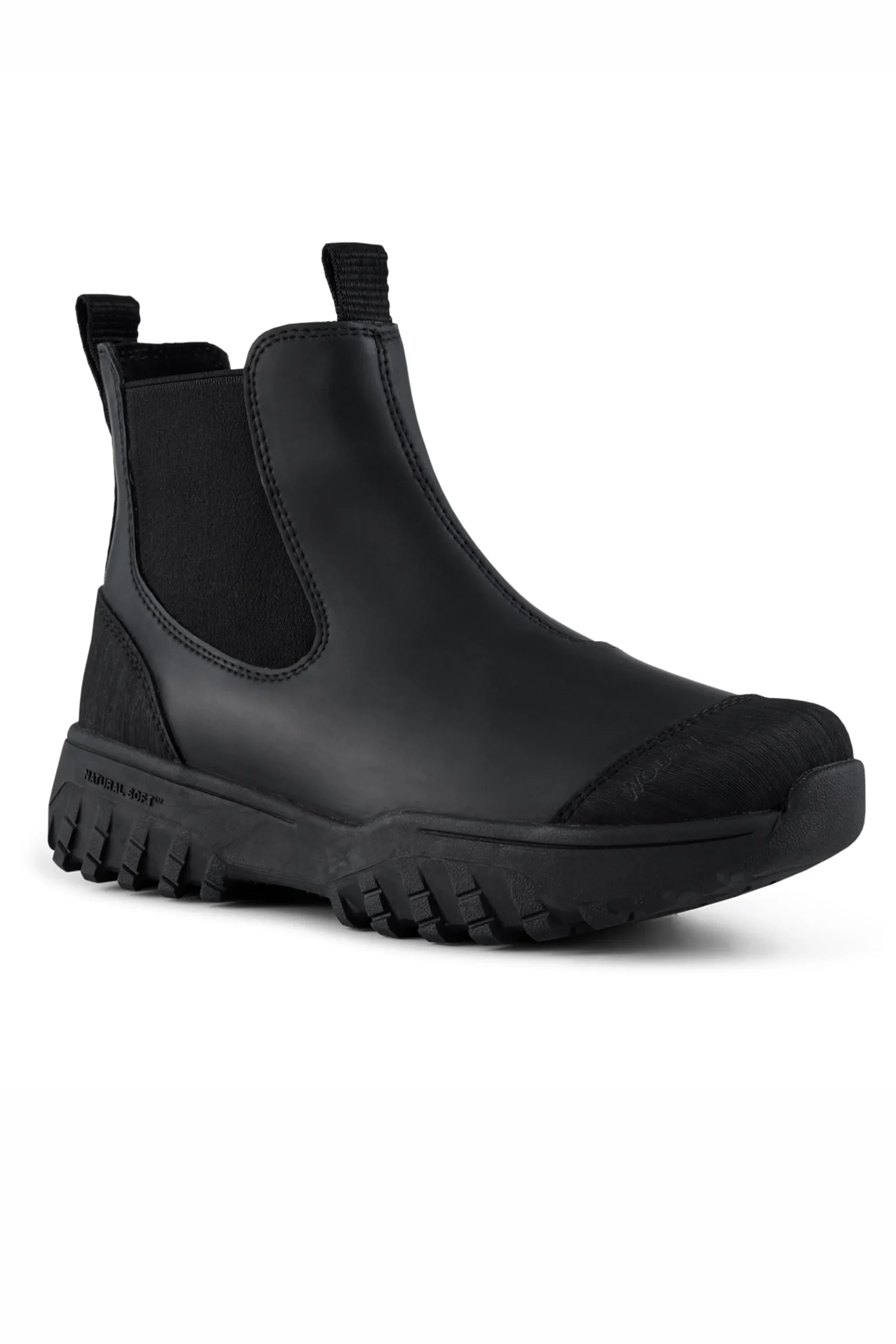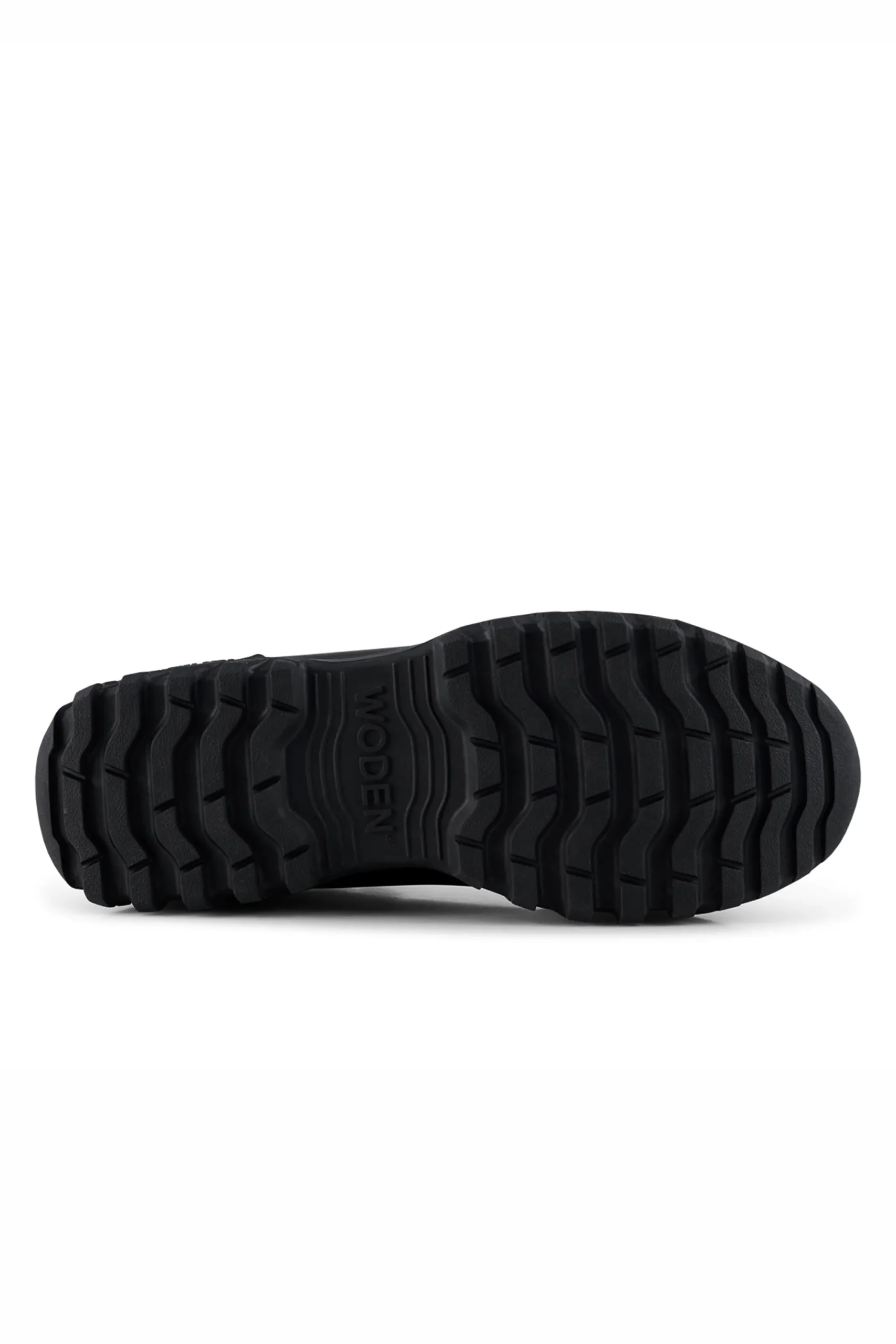 Magda Track er en slidstærk, vandtæt støvle lavet af 70% naturgummi og 30% genbrugsgummi. Derudover er støvlen designet med smukke detaljer i fiskelæder på hælen. En karakteristik sål fuldender støvlen for ultimativ komfort.\\n\\nBlødt PU-skum bruges til støvlens indersål, som både er let og stødabsorberende. Støvlens åndbarhed sikres ved brug af et WODEN airflow underlag og en ydersål baseret på vores Natural Soft teknologi. En teknologi designet til at sikre den bedst mulige komfort, hvilket gør Magda Track til en behagelig vandtæt følgesvend på farten.\\n\\n窶ål med Natural Soft teknologi\\n窶æt\\n窶ål med track mønster for bedre skridsikkerhed\\n窶æder detaljer\\n窶ægssål med Airflow system\\n