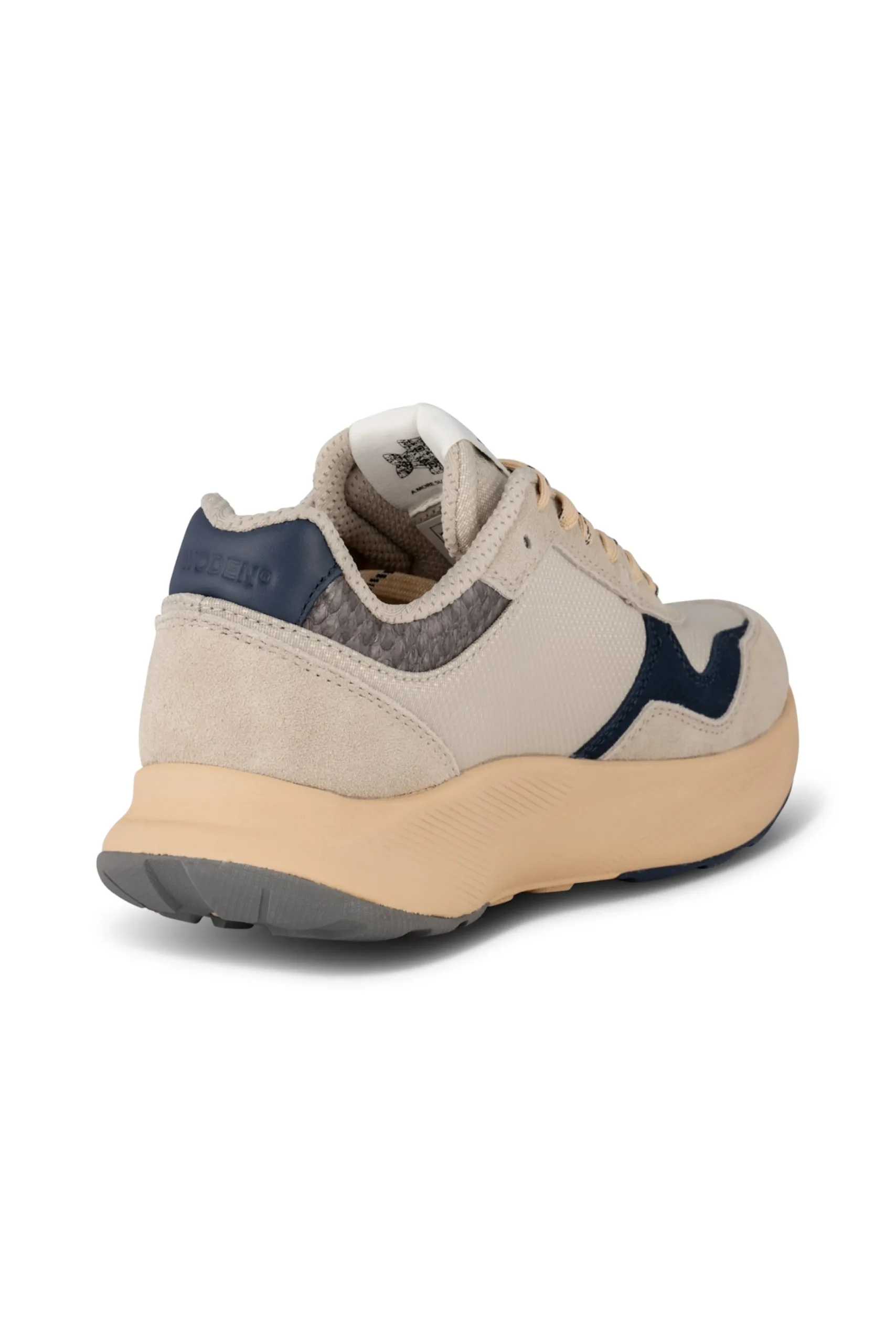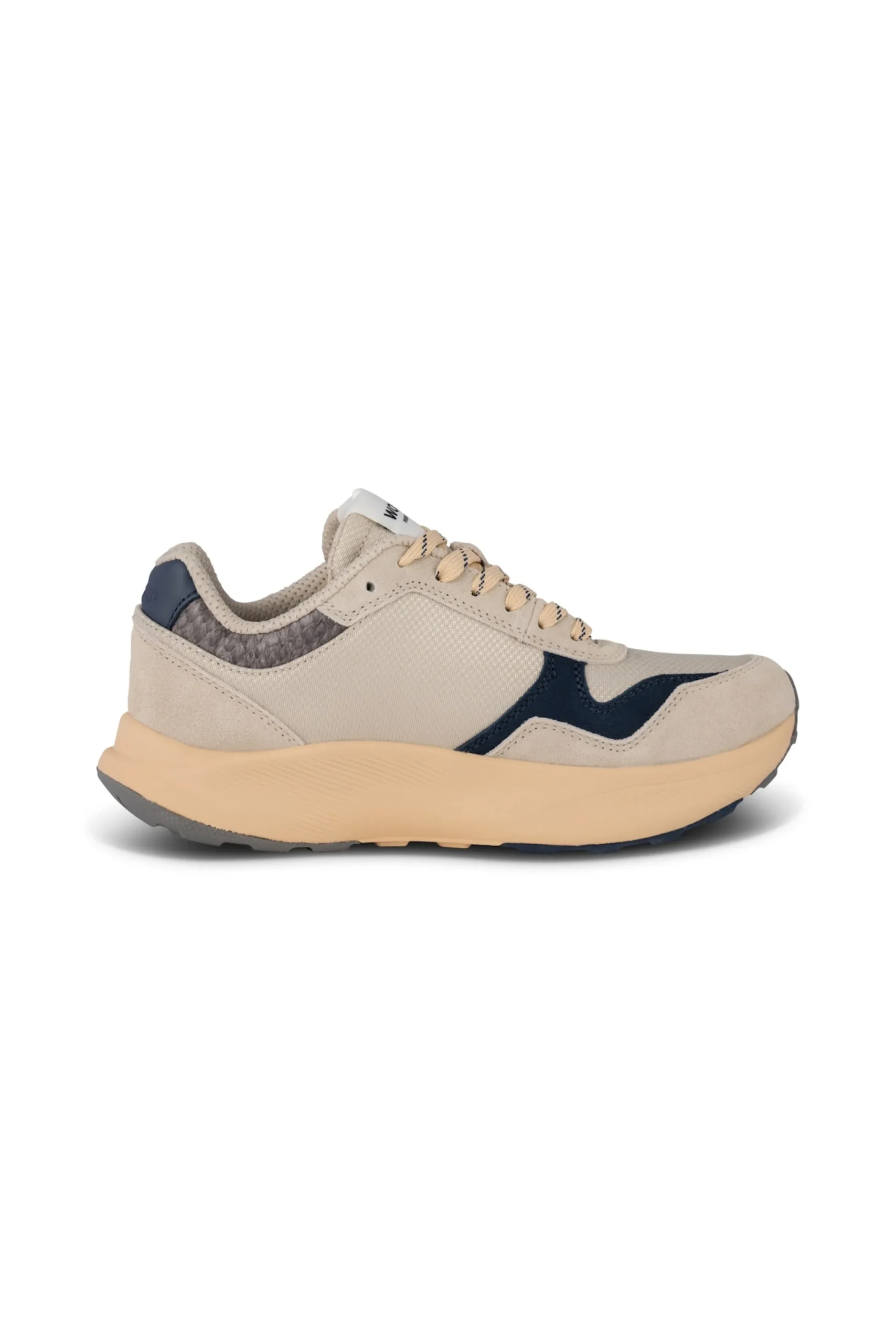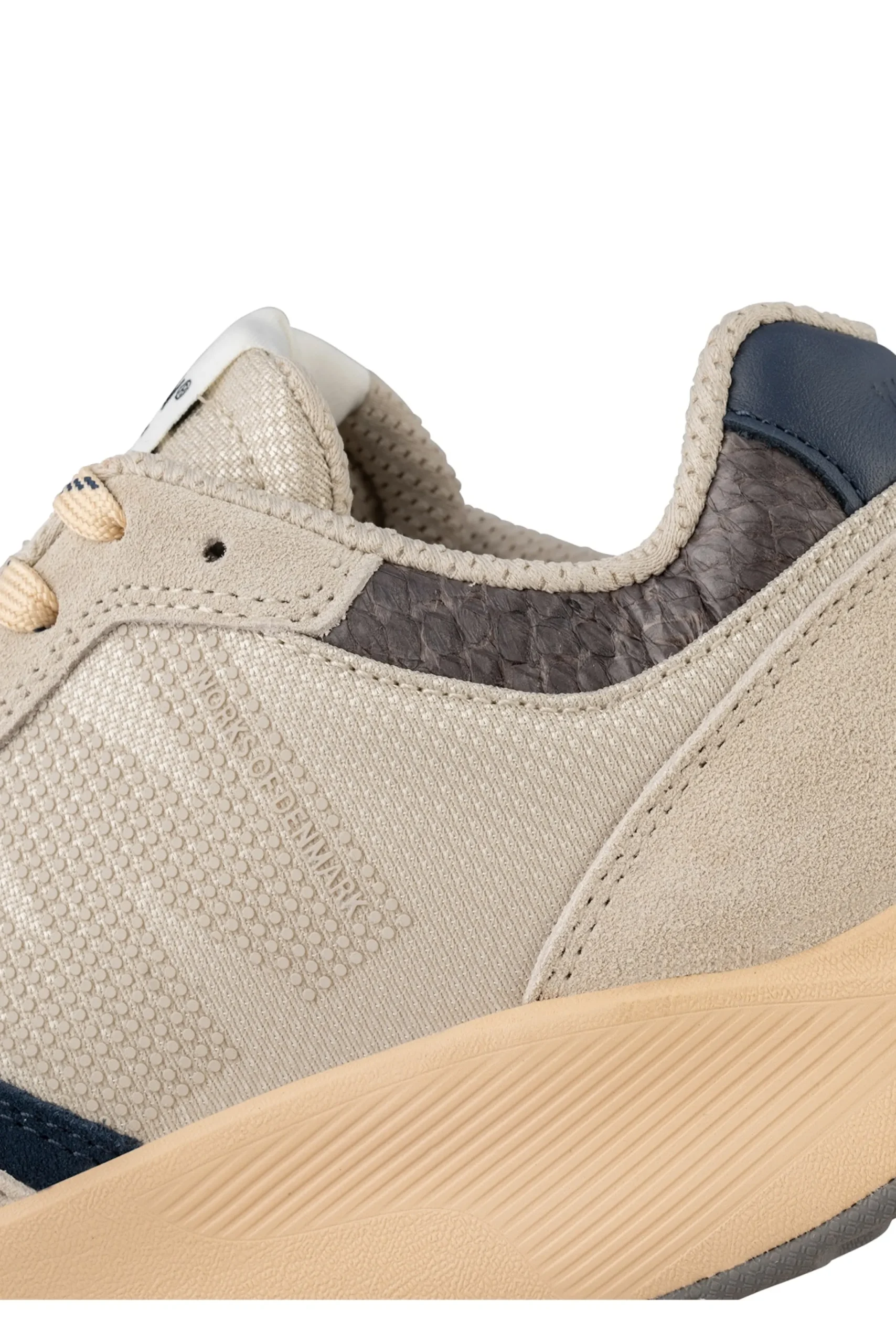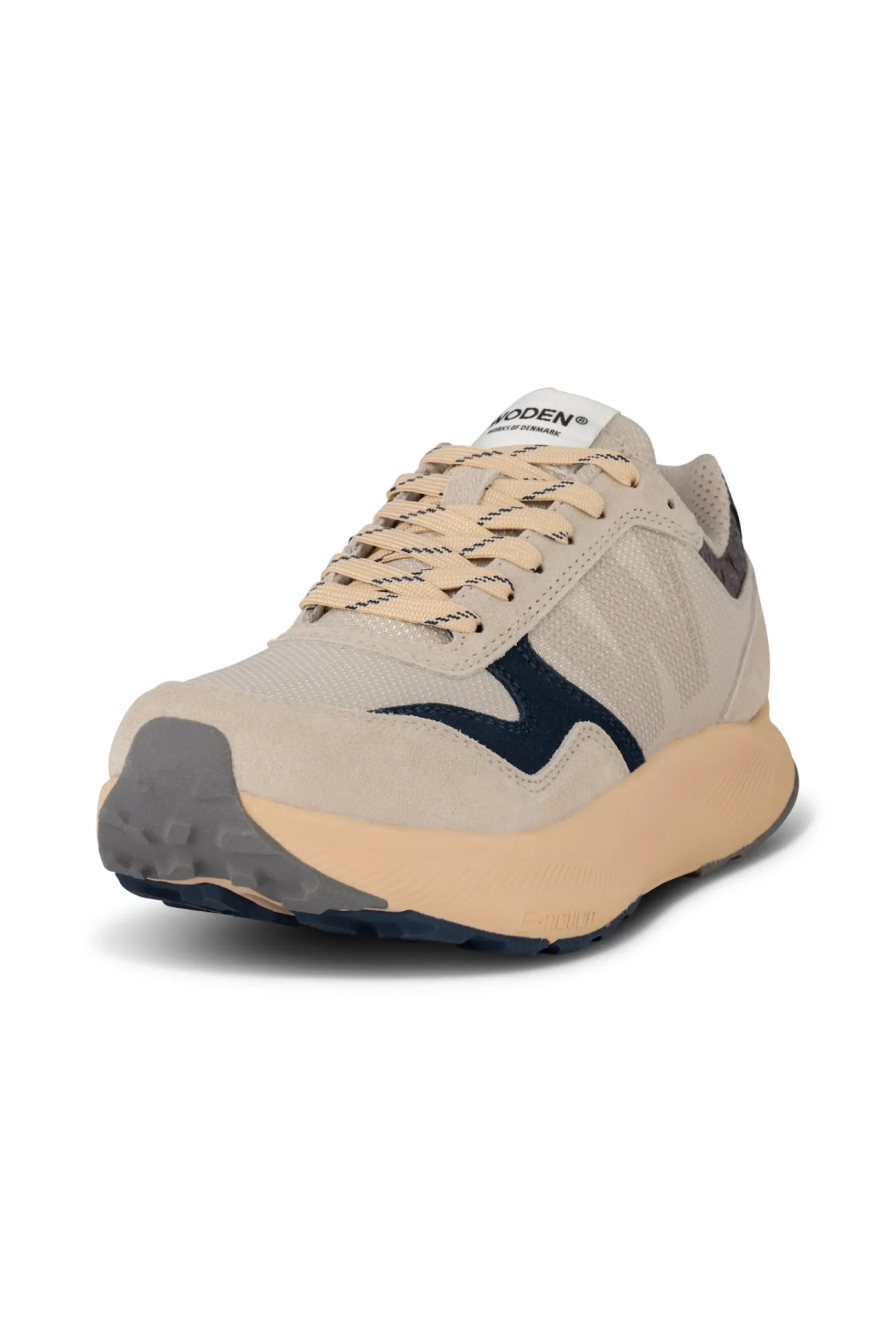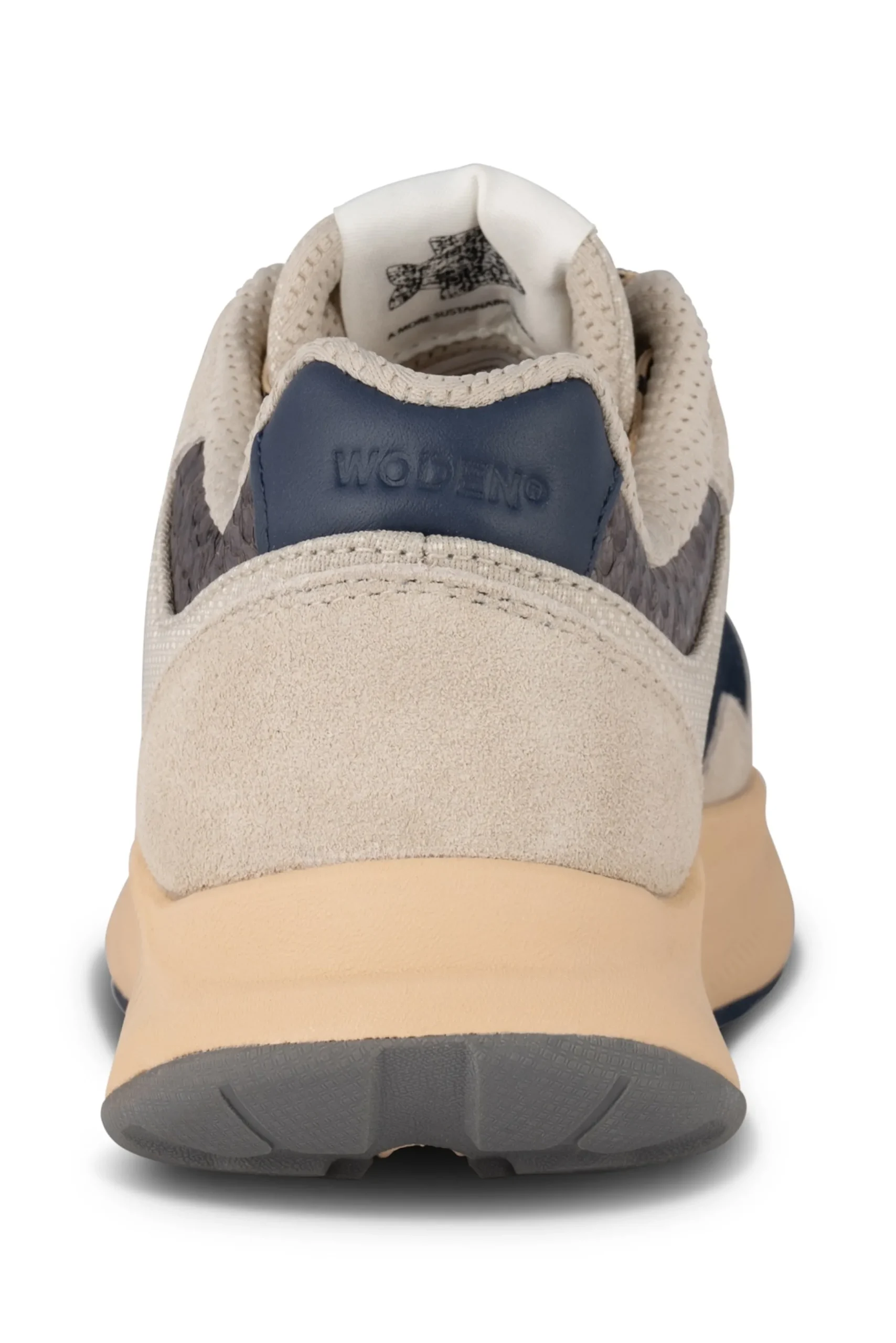 Oplev Mathilde Runner, der er fremstillet i højkvalitets certificeret LWG-ruskind. Denne sporty sneaker kombinerer genbrugstekstiler, ASC-certificeret upcyclet fiskelæder og har Natural Soft Technology邃æder med ASC certificering \\n- WODEN Natural soft technology 邃ød formstøbt indlægssål i PU beklædt med kork \\n- Woden air flow system 邃ål i letvægtsmaterialet EVA \\n- Sål i 100% gummi med 10% genanvendt gummi