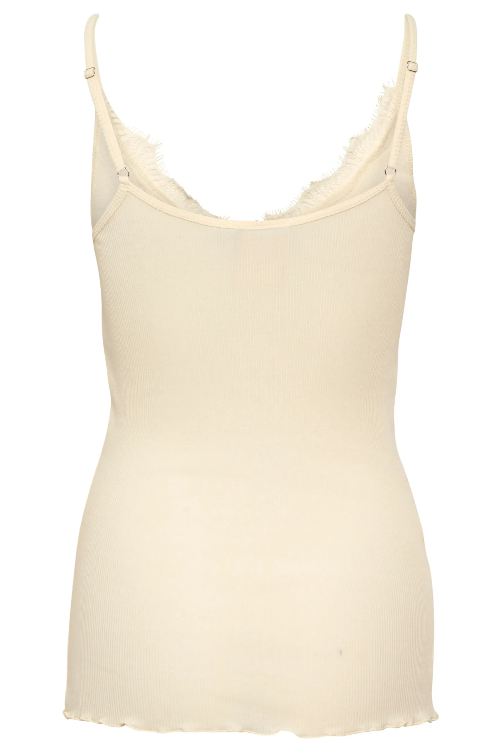 Top fra Saint Tropez med V-udskæring og blonde foran. Justerbare skulderstropper. Vævet kvalitet. Normal pasform.