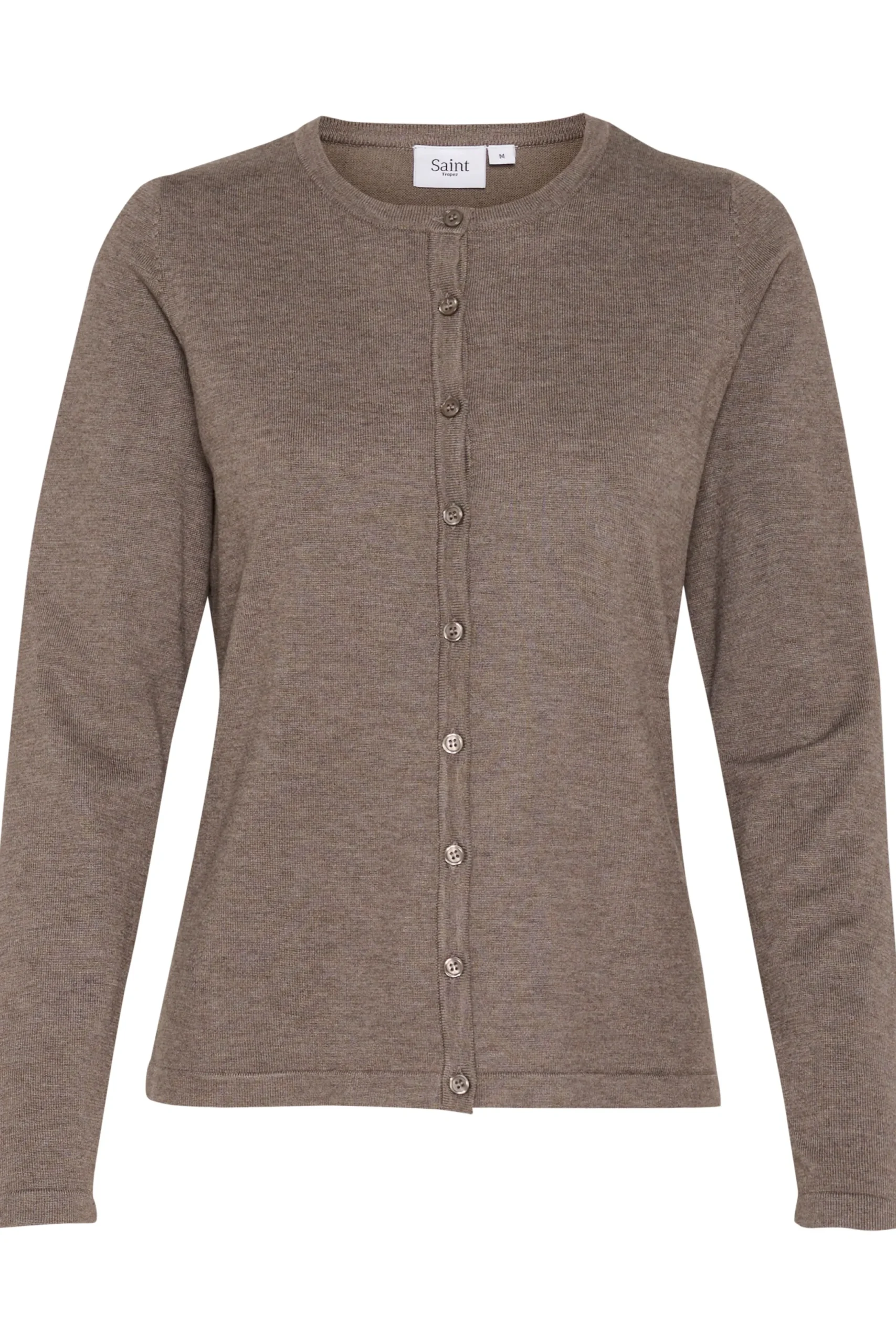 Strikcardigan fra Saint Tropez med rund hals. Lange ærmer. Synlig knaplukning. Ribkant i hals, ærmer og forneden. Strikcardiganen fra Saint Tropez har normal pasform.