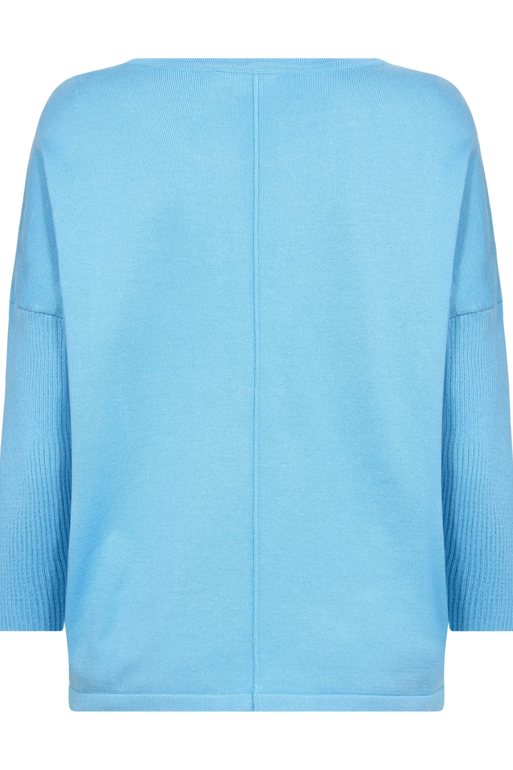 Strikbluse fra Saint Tropez med rund hals. 3/4-ærmer. Ribkant i hals og forneden.