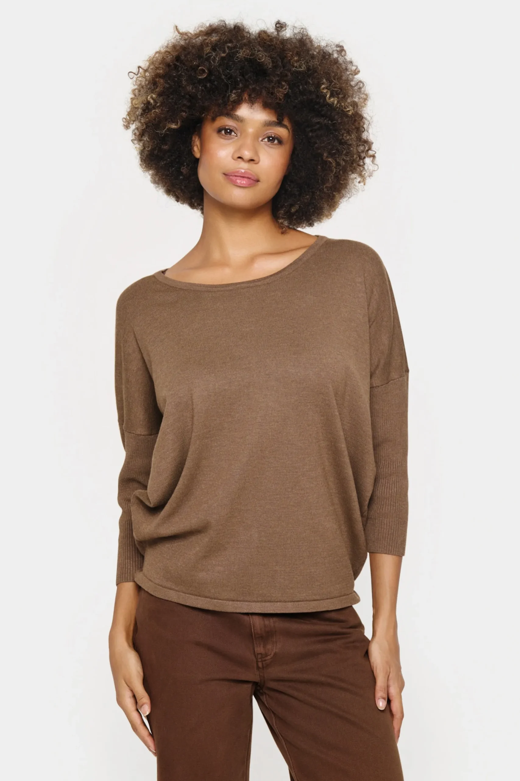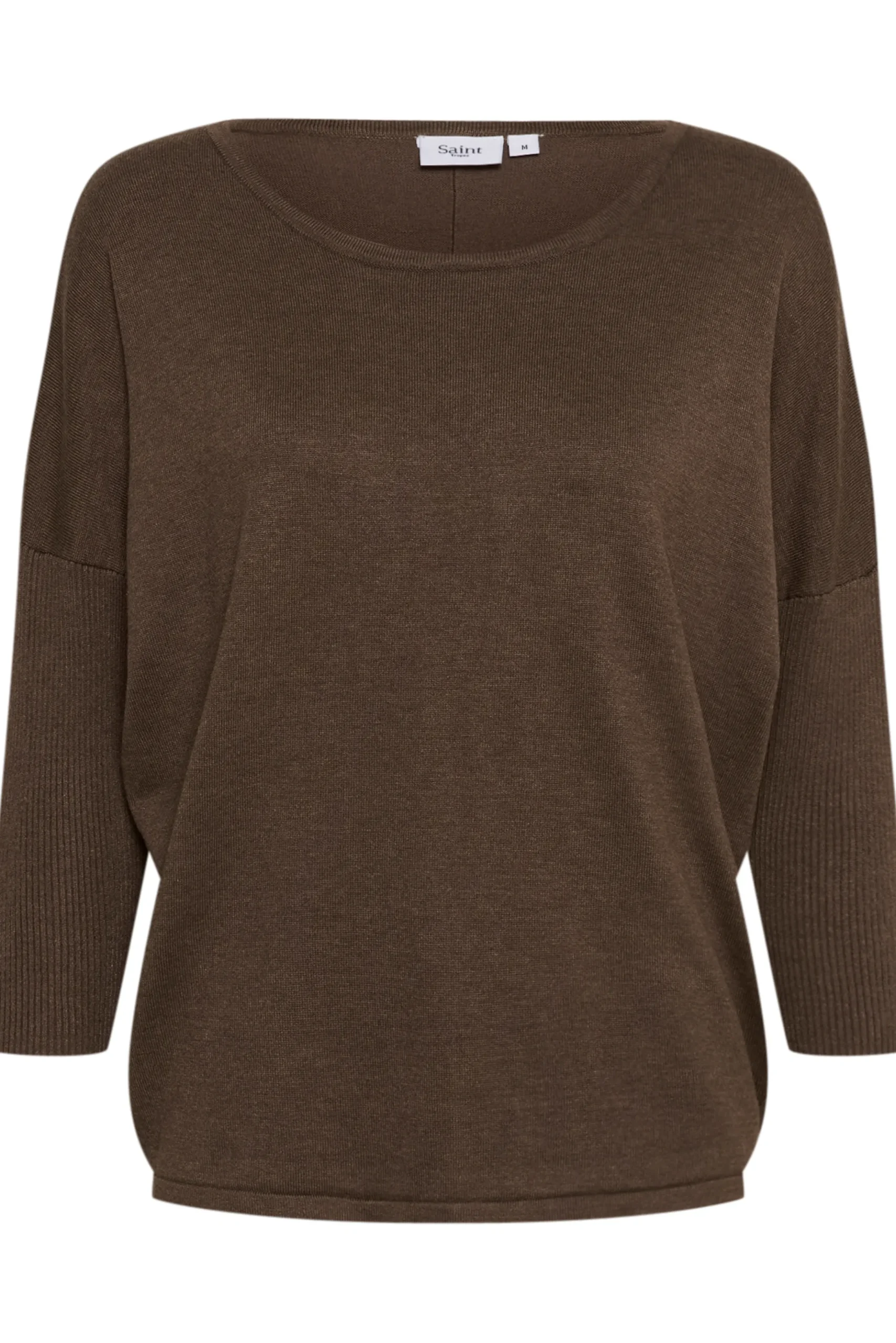 Strikbluse fra Saint Tropez med rund hals. 3/4-ærmer. Ribkant i hals og forneden.