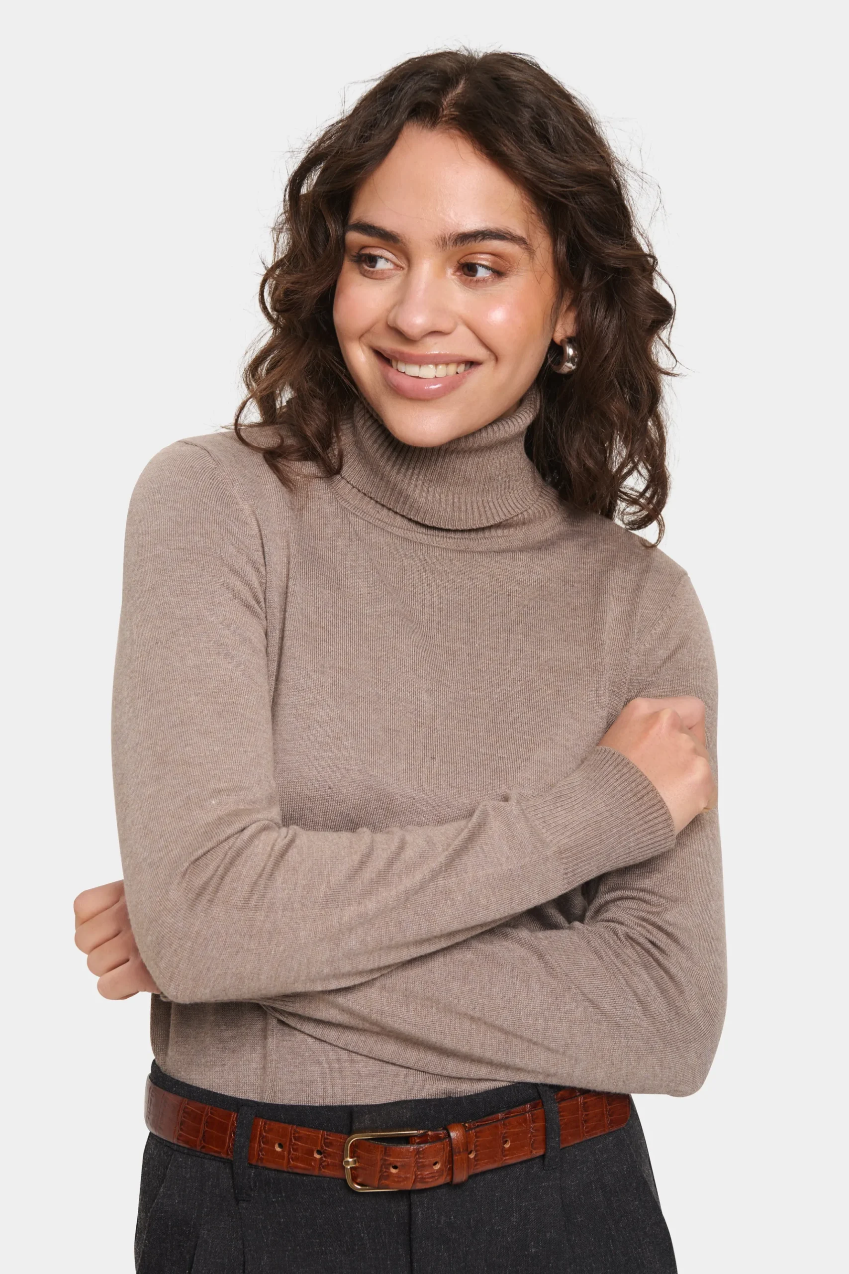 Strikbluse fra Saint Tropez med rullekrave. Lange ærmer. Ribkant i hals, ærmer og forneden. Normal pasform.