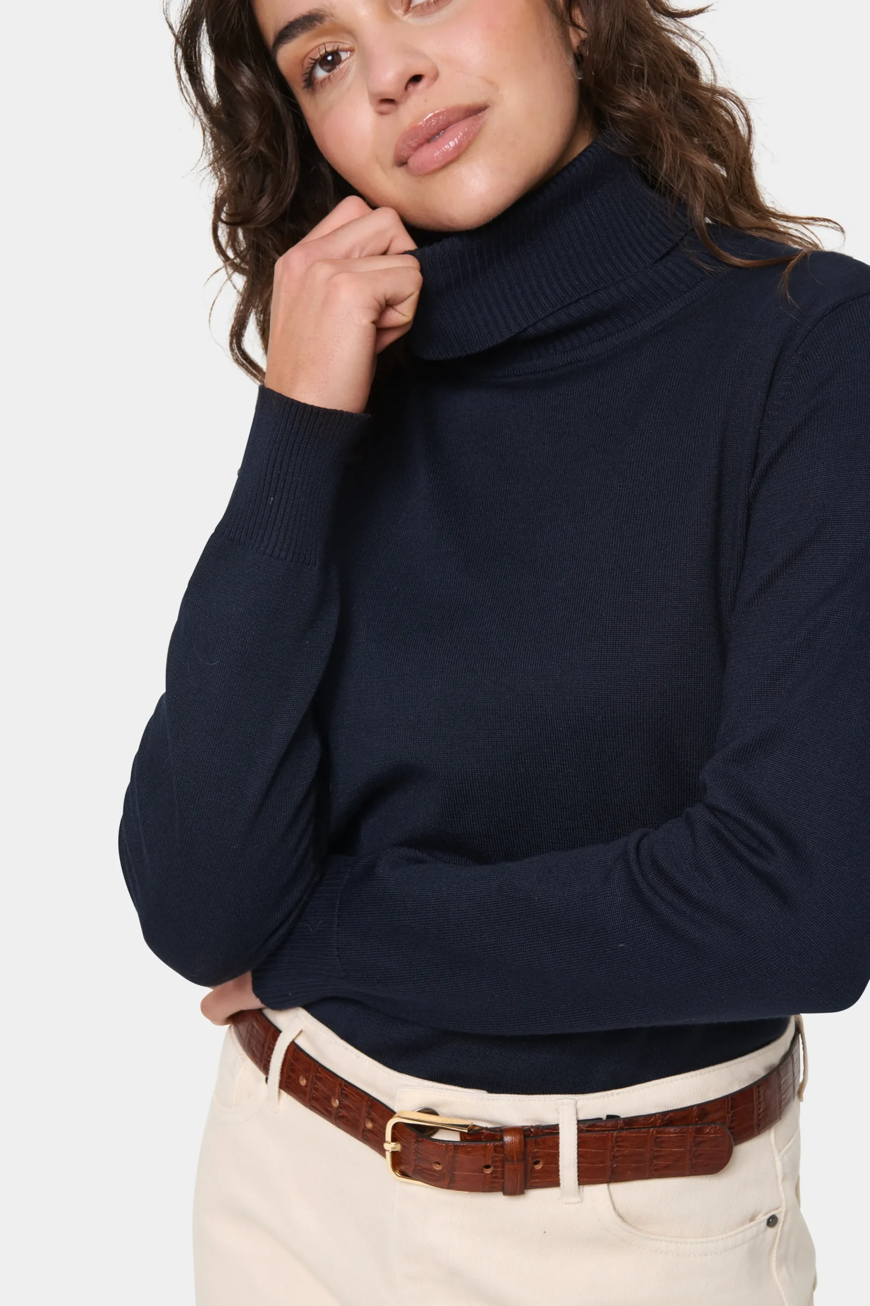 Strikbluse fra Saint Tropez med rullekrave. Lange ærmer. Ribkant i hals, ærmer og forneden. Normal pasform.