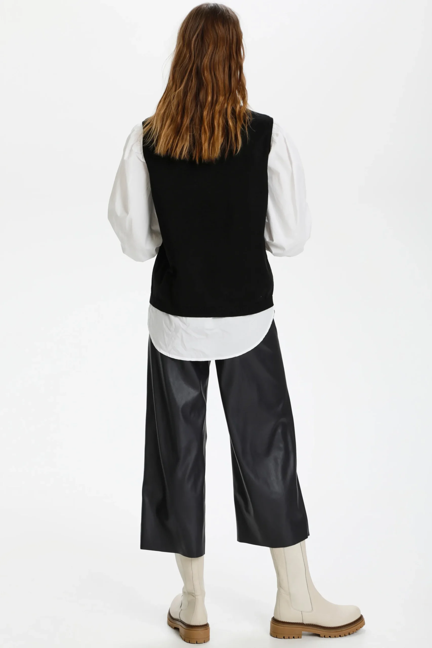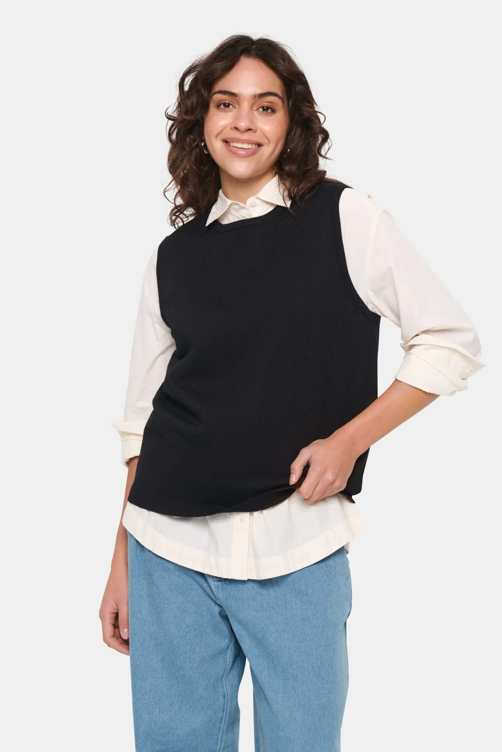 Strikvest fra Saint Tropez med rund hals. Ribkant i hals, ærmegab og forneden. Slids i siden. Normal pasform.