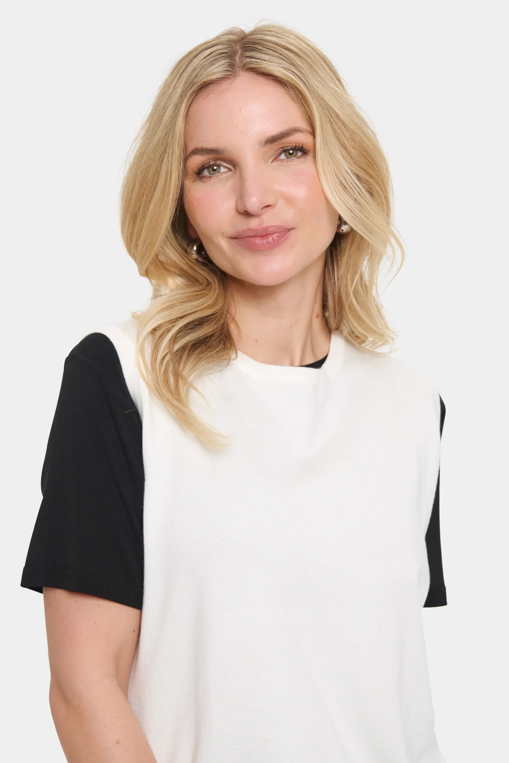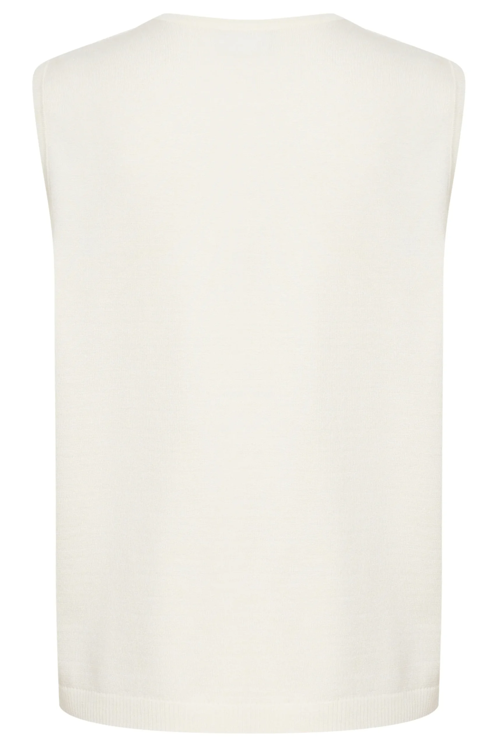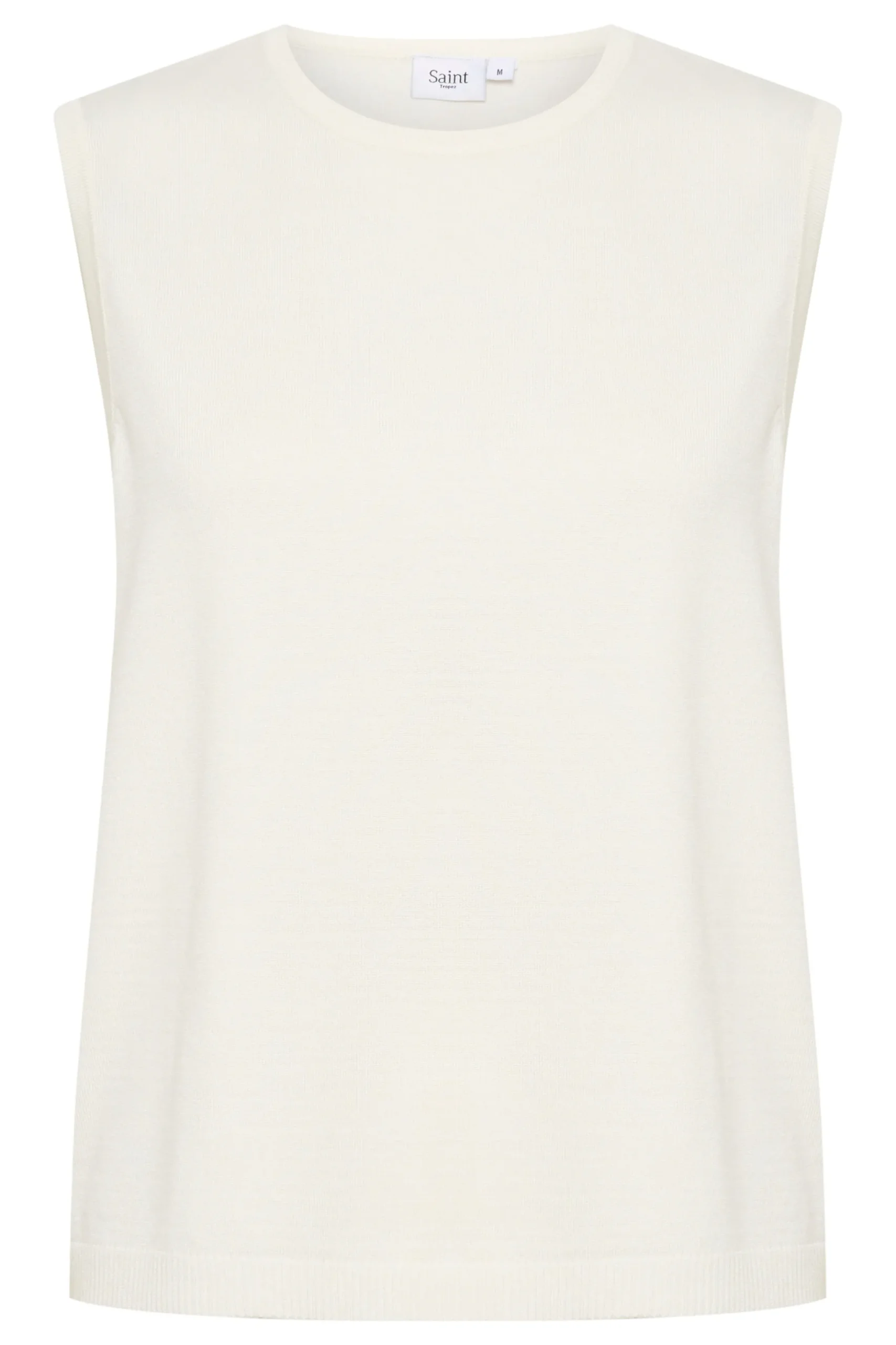 Strikvest fra Saint Tropez med rund hals. Ribkant i hals, ærmegab og forneden. Slids i siden. Normal pasform.