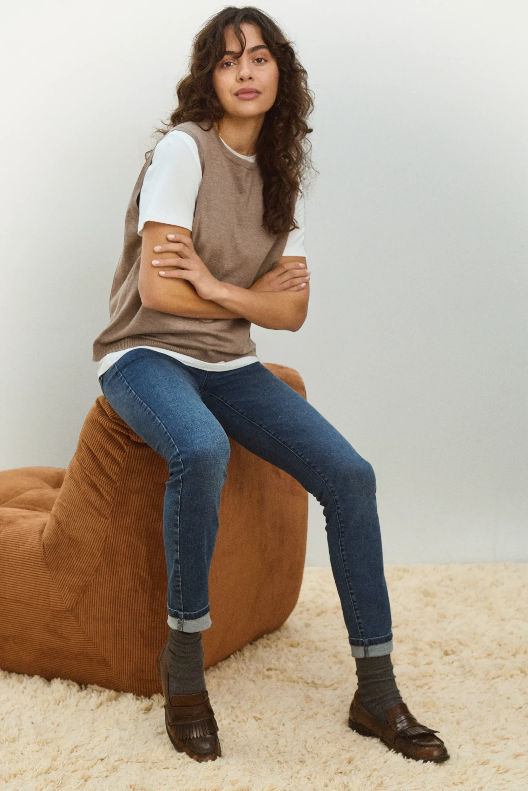 Strikvest fra Saint Tropez med rund hals. Ribkant i hals, ærmegab og forneden. Slids i siden. Normal pasform.