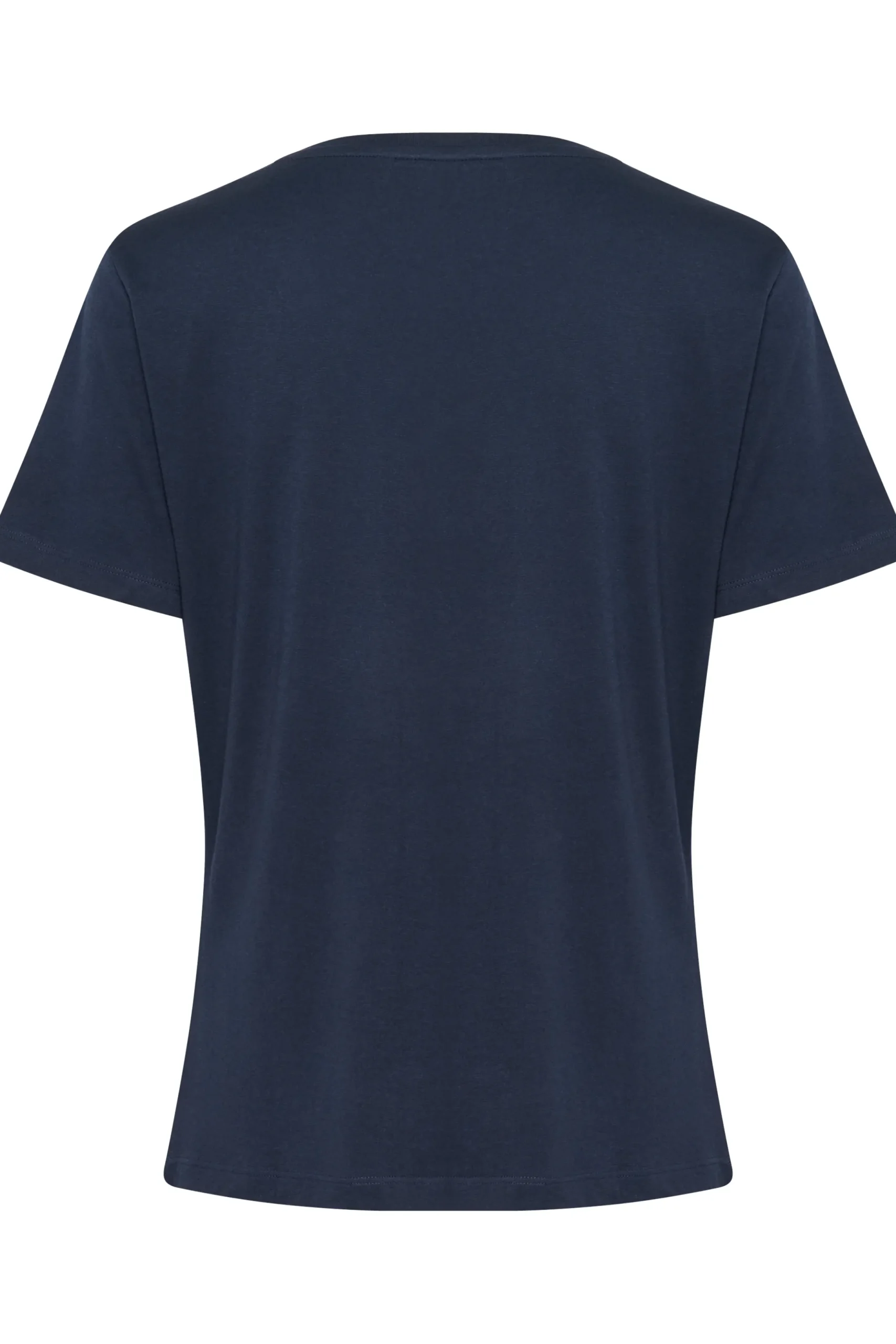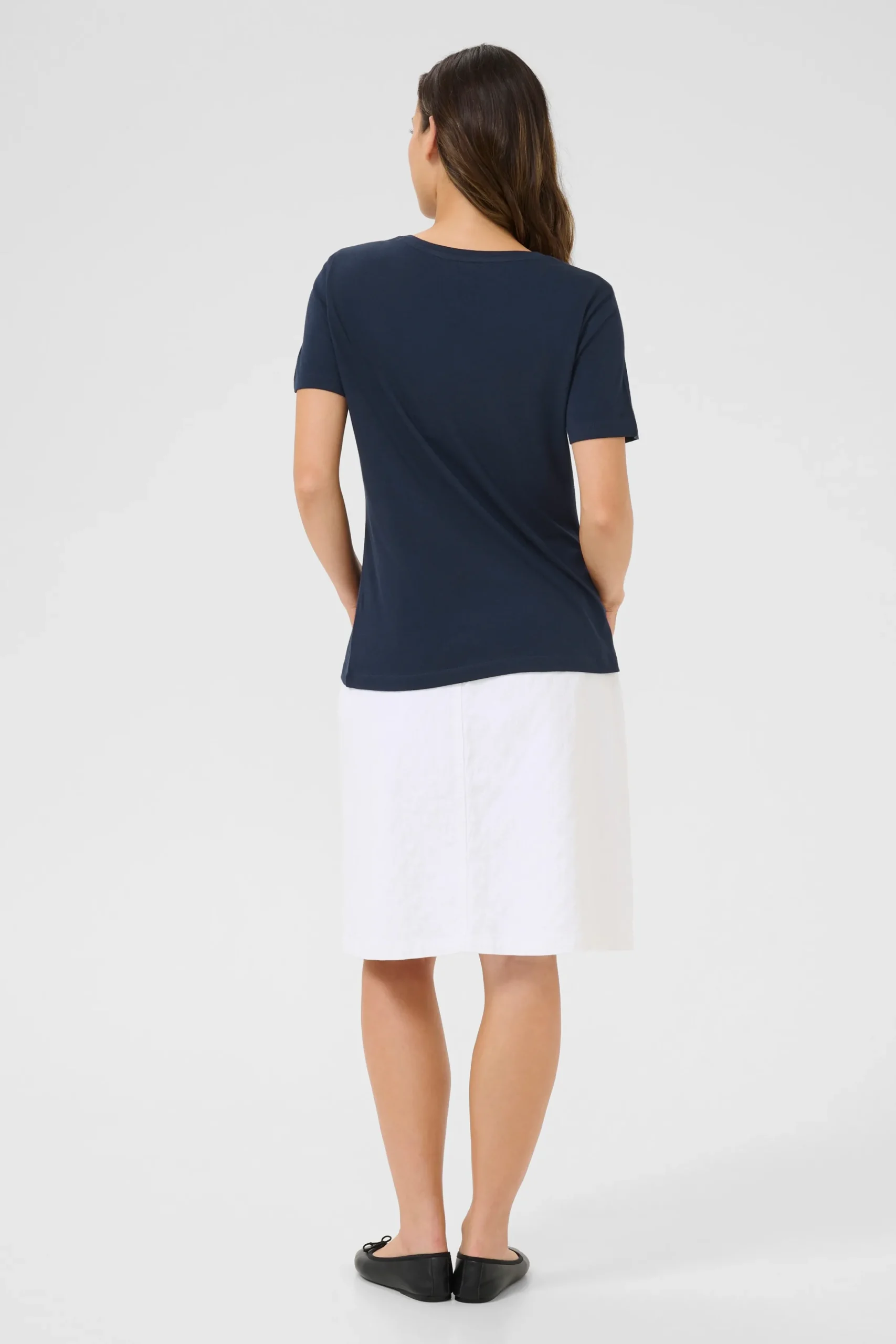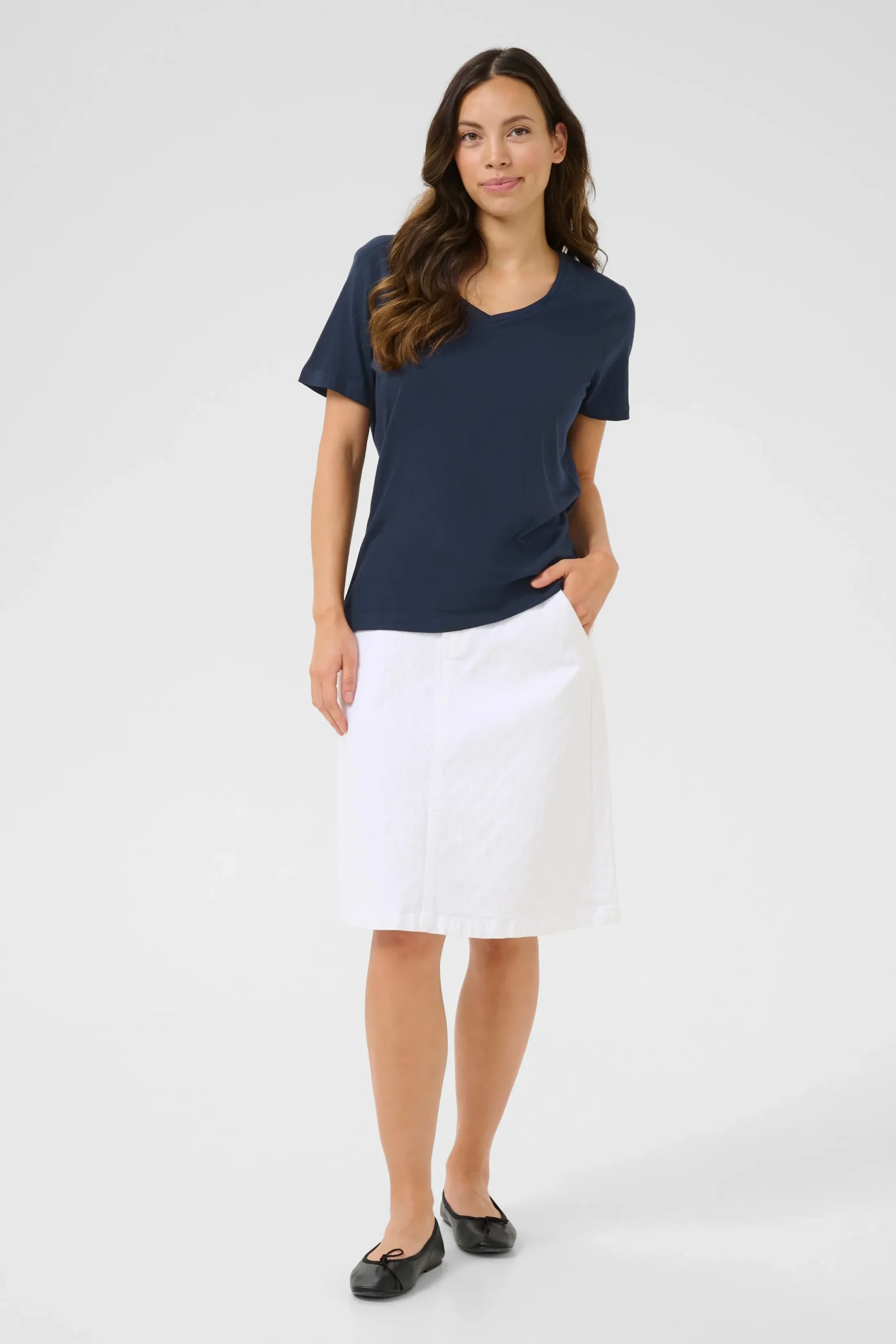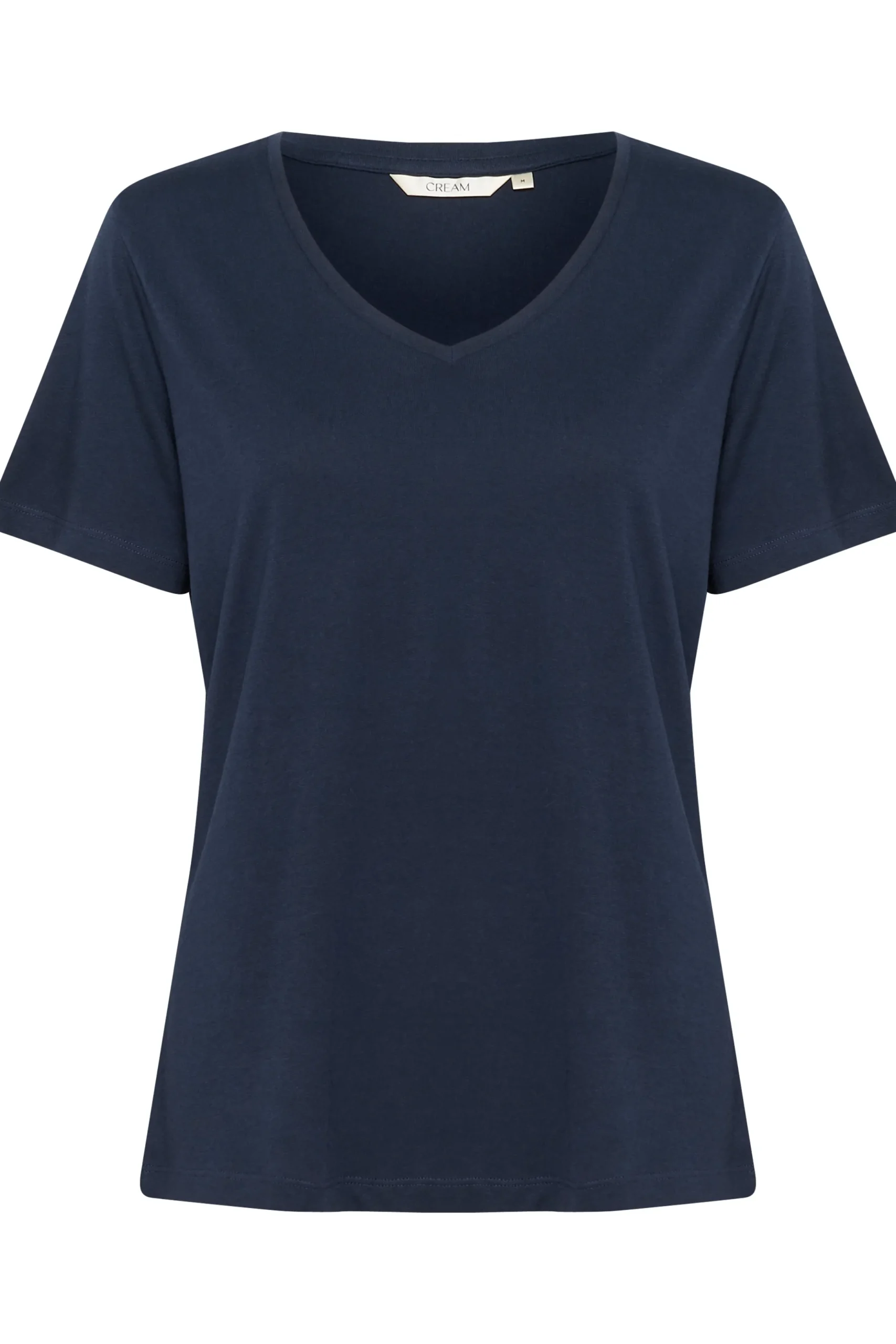 T-shirt fra cream med V-hals. Korte ærmer. Jerseykvalitet. Normal pasform.