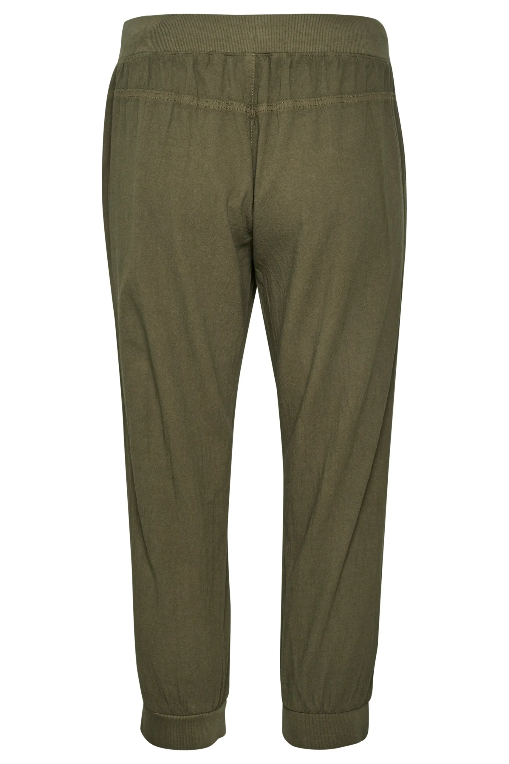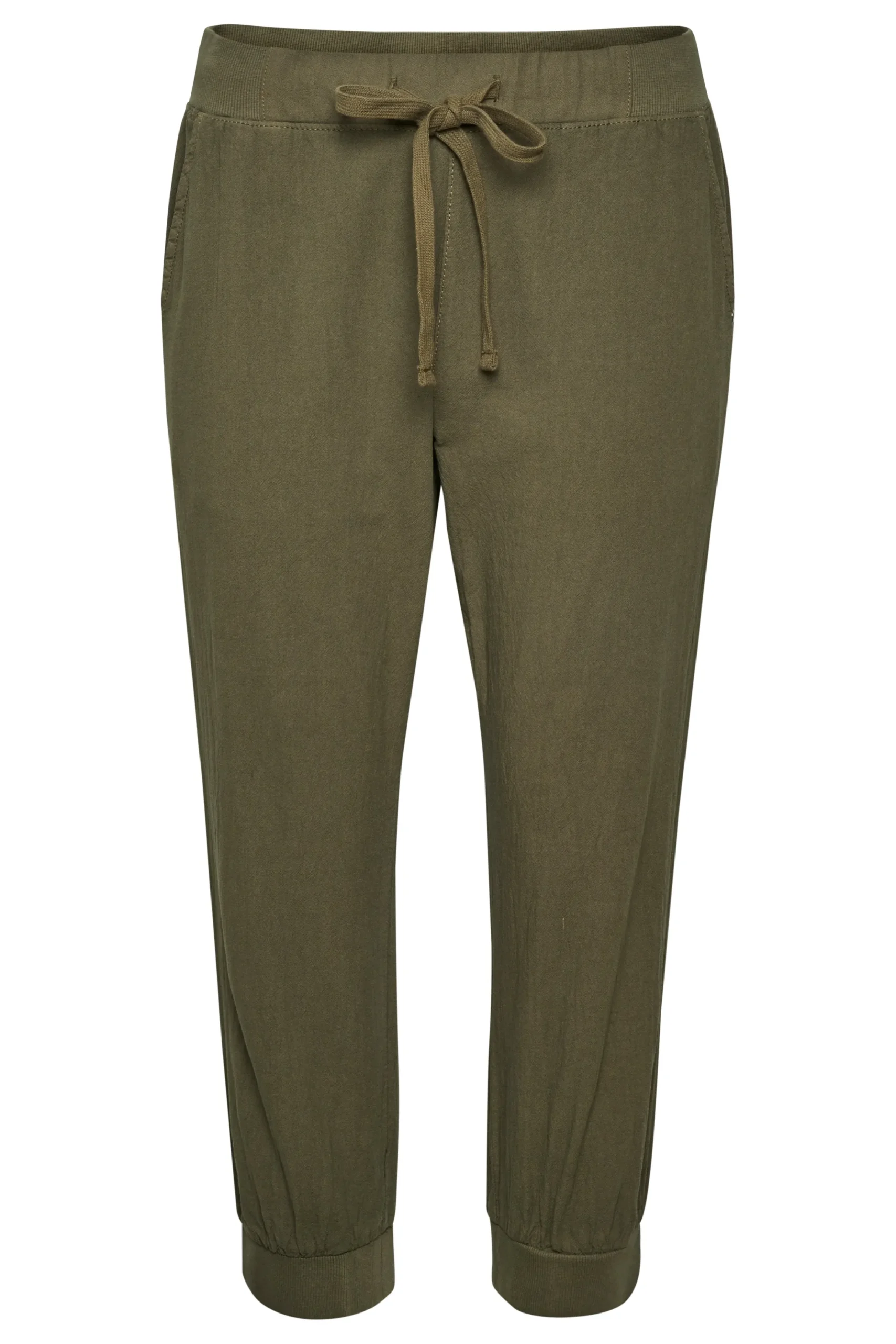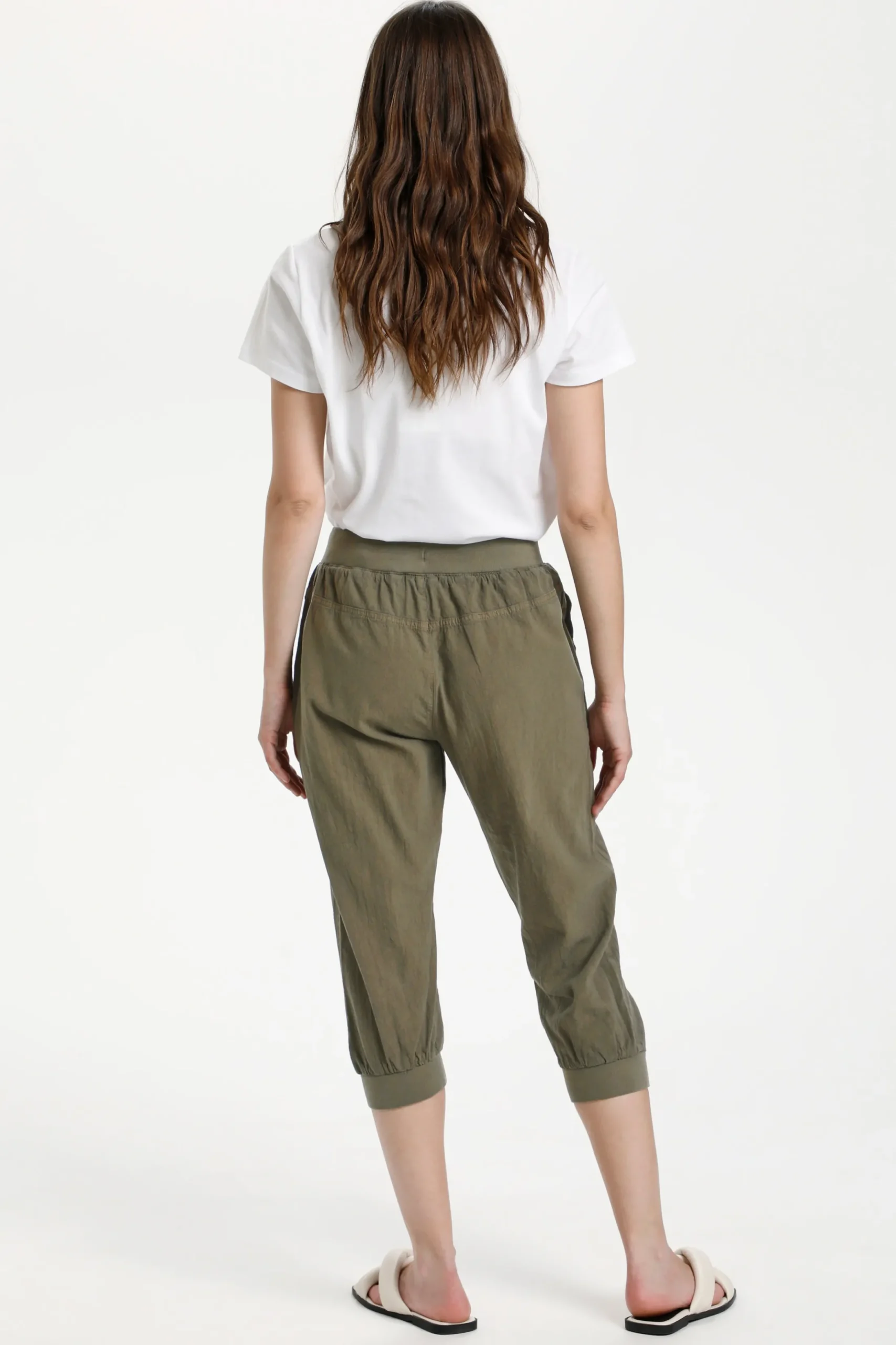 Capribuks fra KAFFE med elastik i taljen. Snøre foran. Ribkant nederst. Vævet kvalitet. Capribukserne fra KAFFE har normal pasform.