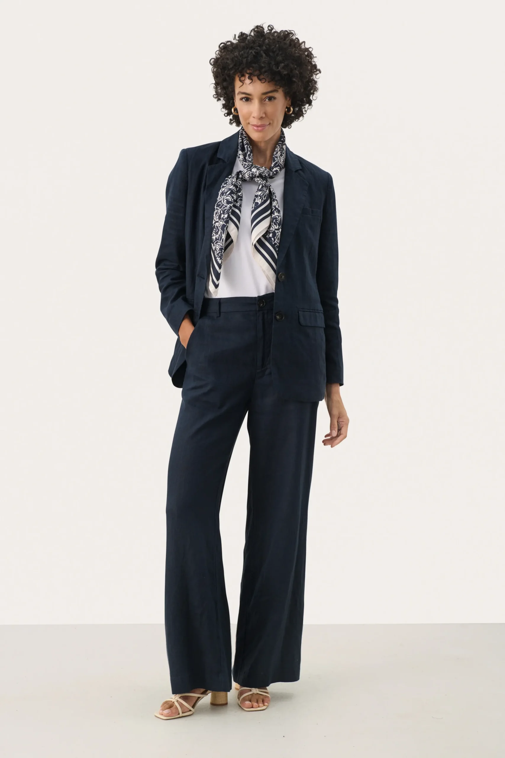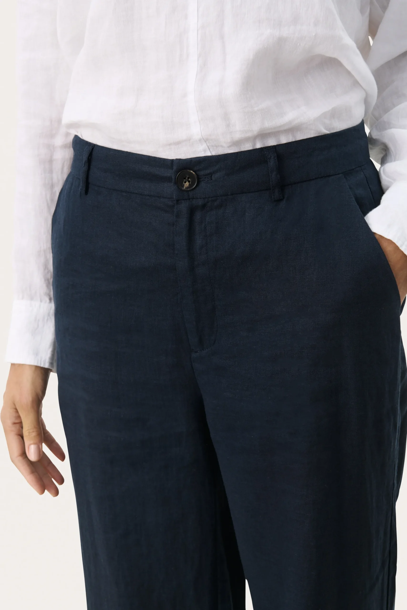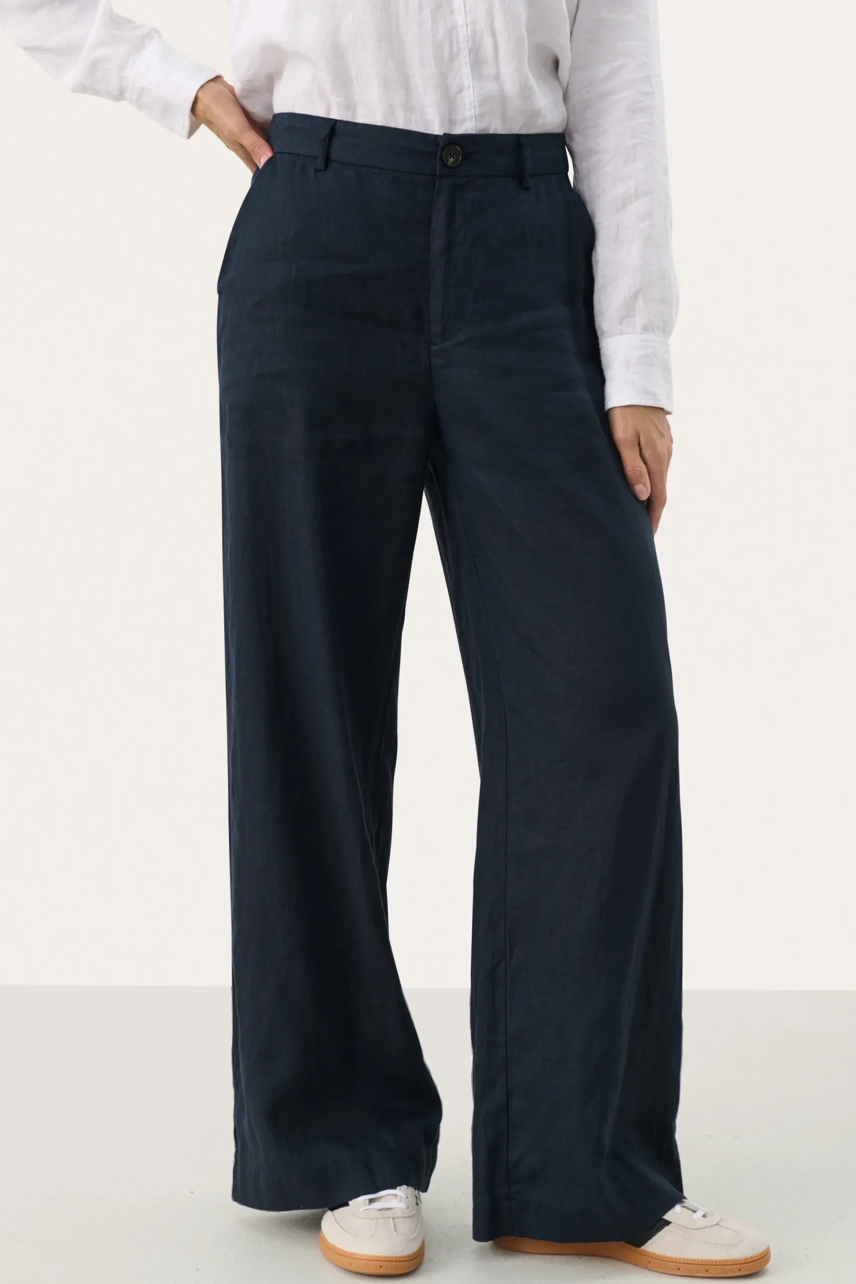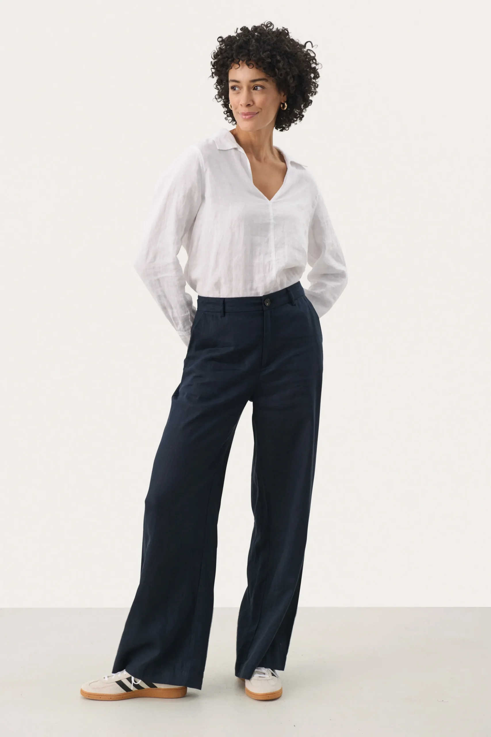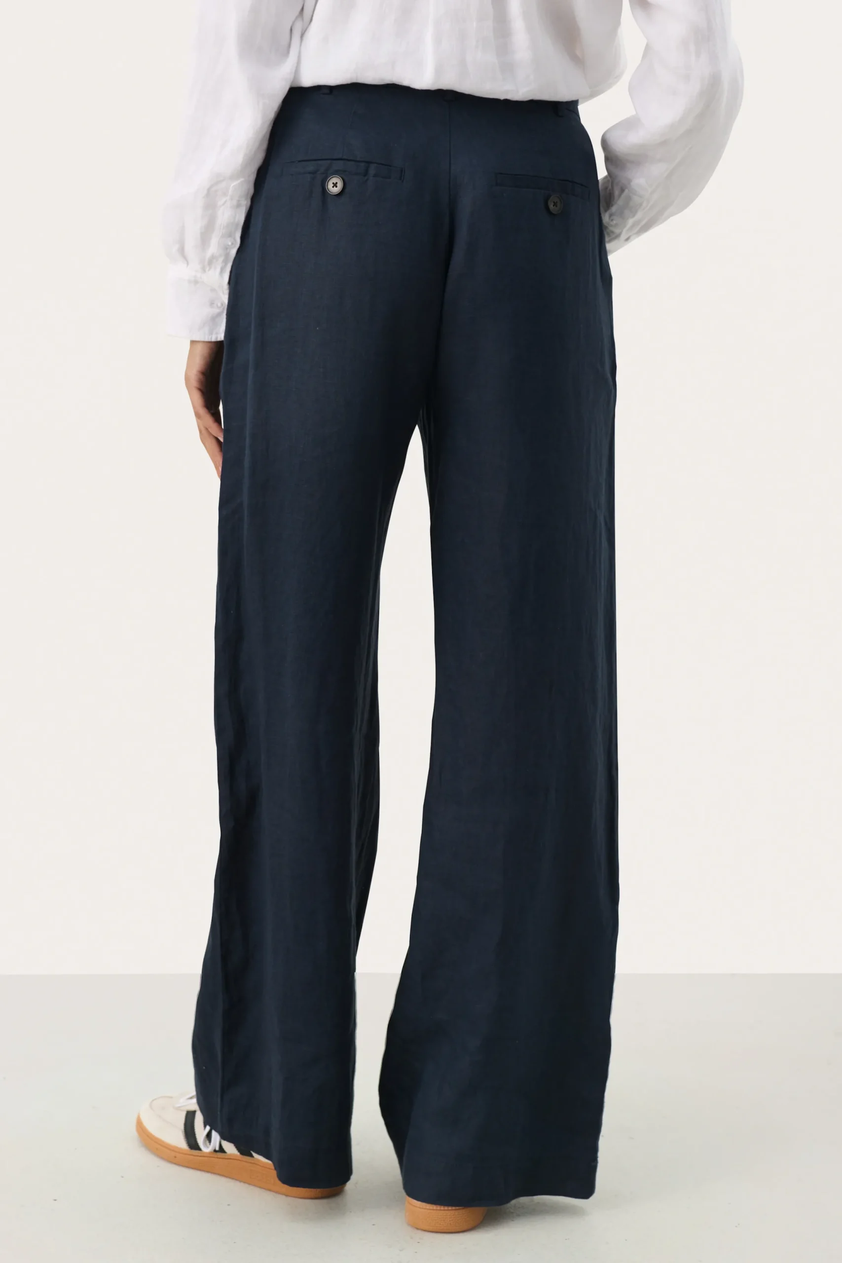 Modellen er 176 cm høj og er iført en størrelse 36.\\n\\nDisse klassiske bukser i let hør har en afslappet, vid pasform og høj talje. Designet uden pressefolder giver et casual og elegant udtryk. Style dem med en skjorte eller en enkel T-shirt for et sofistikeret hverdagslook.\\n\\n