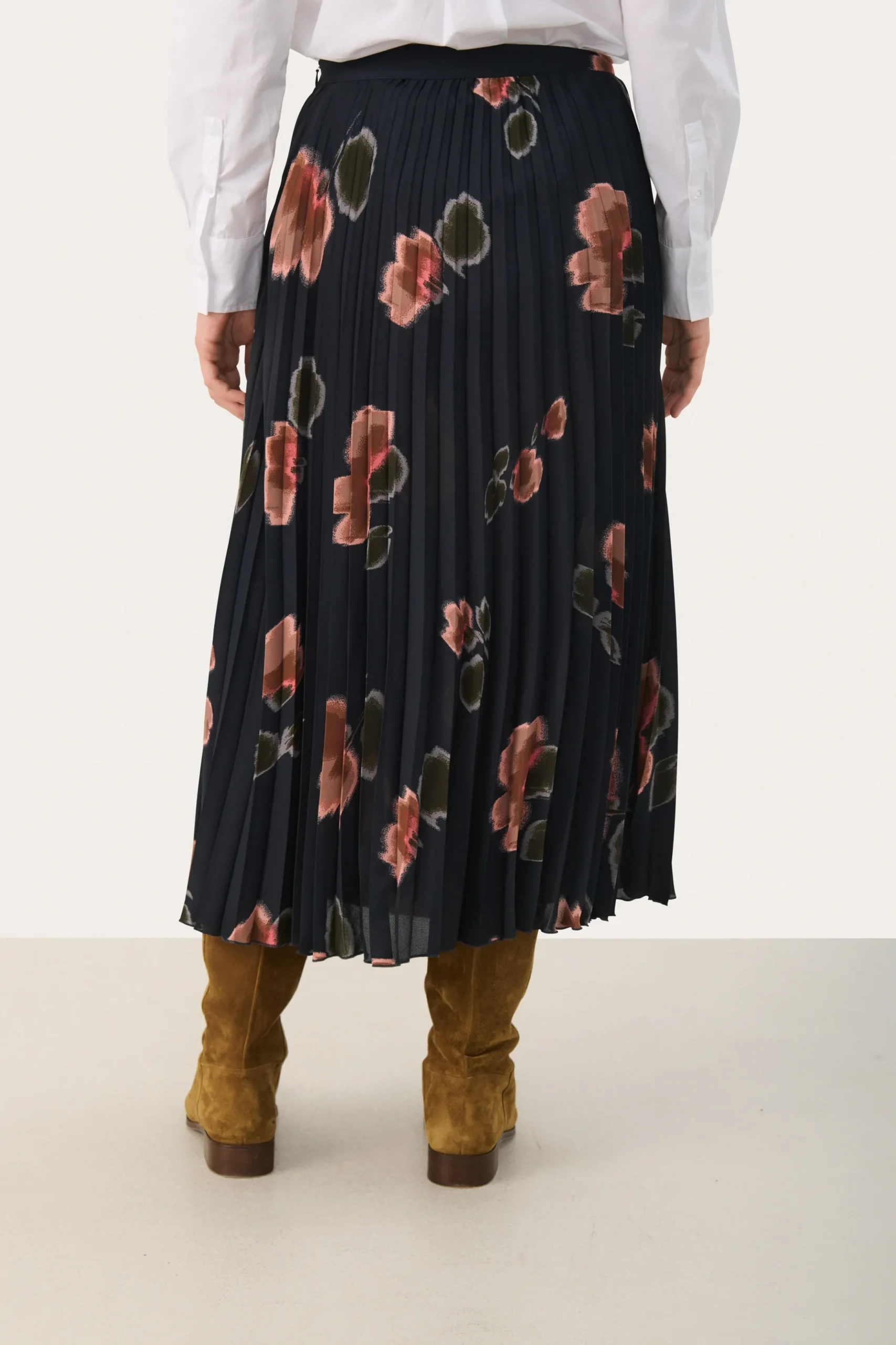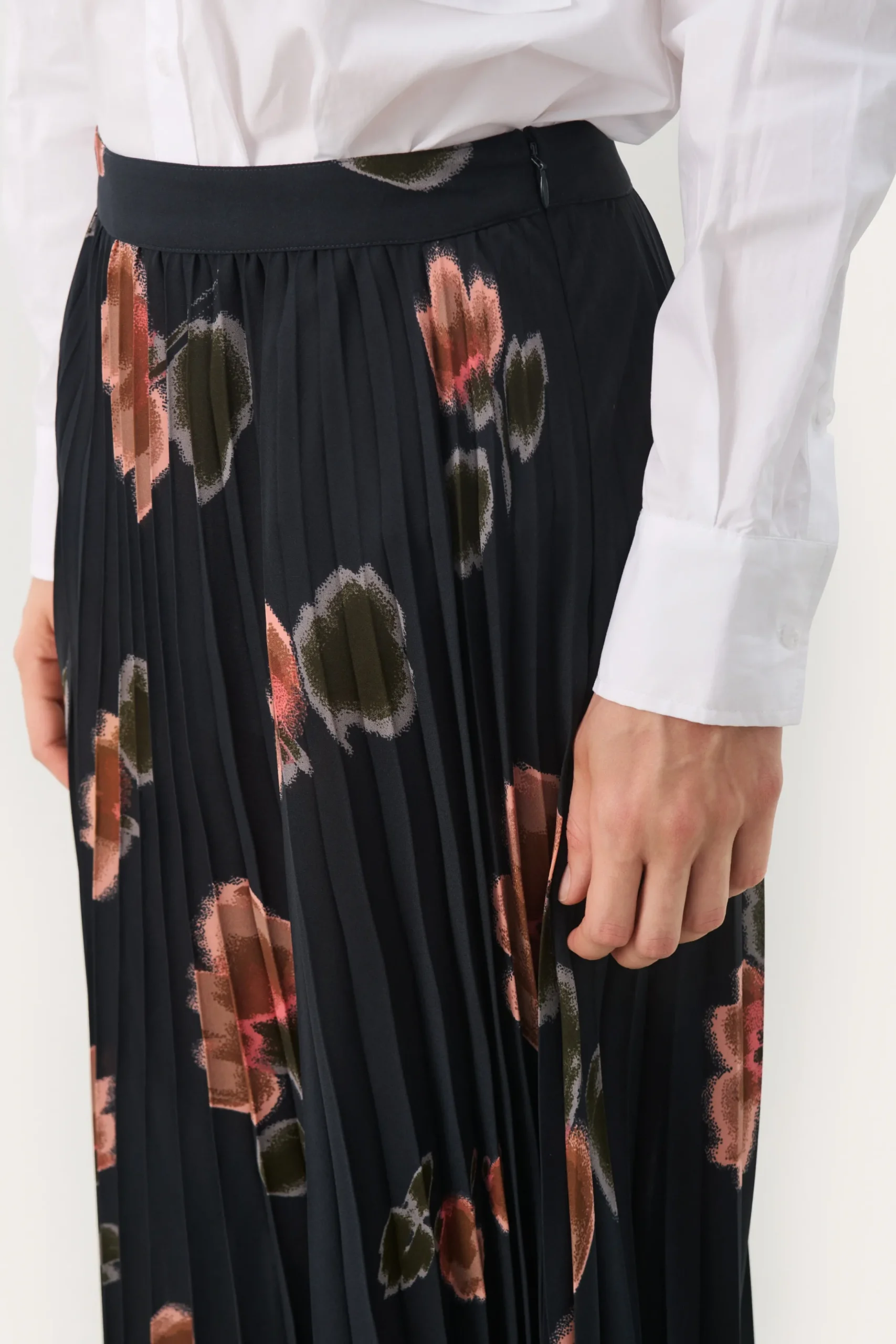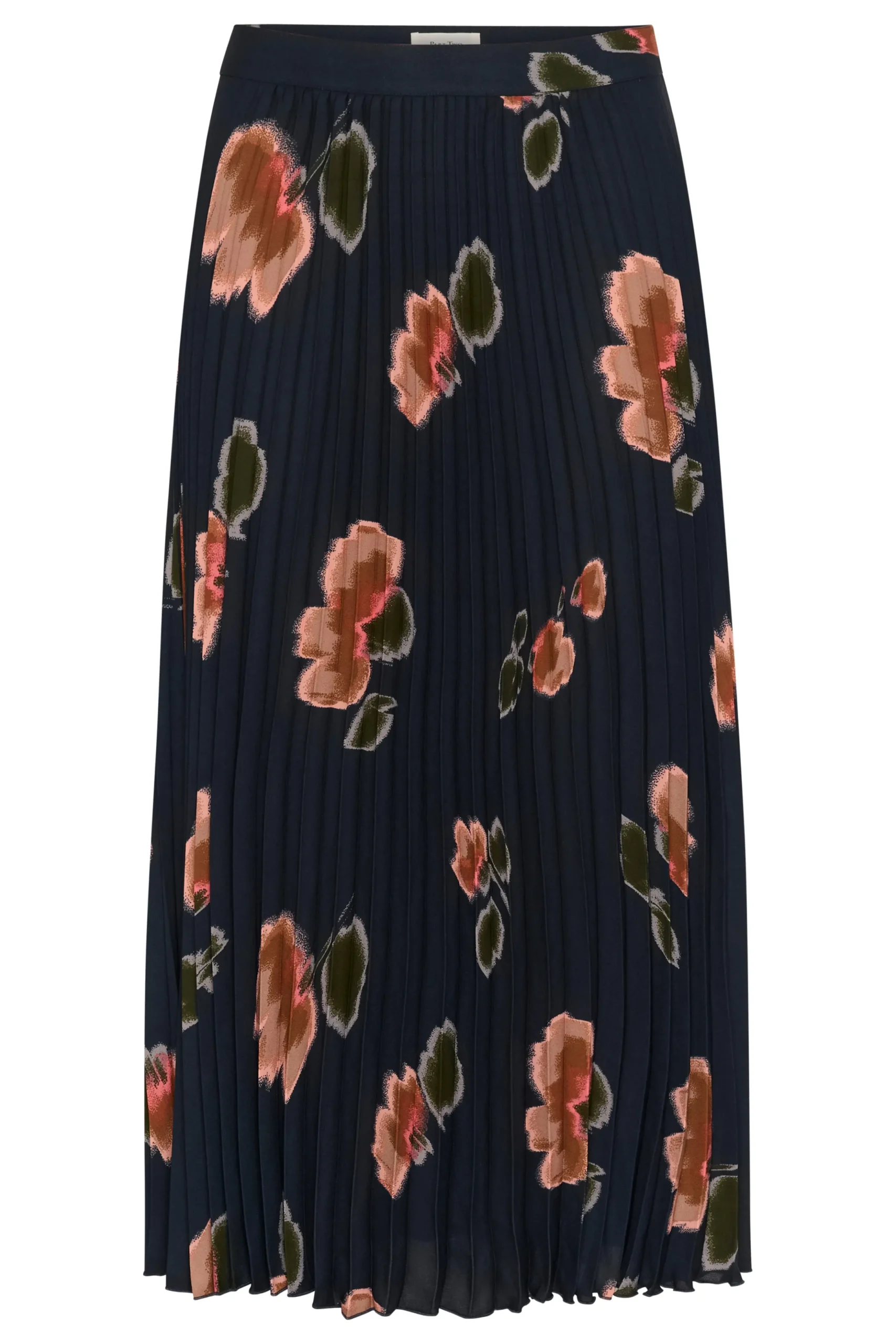 Modellen er 178 cm høj og er iført en størrelse 36.\\n\\nDenne smukke plisserede nederdel med blomsterprint er fremstillet i en let kvalitet, der giver et elegant fald. Den elastiske talje sikrer en komfortabel pasform, perfekt til både hverdag og festlige anledninger. Style den med en bluse eller striktrøje for et feminint look.\\n\\n