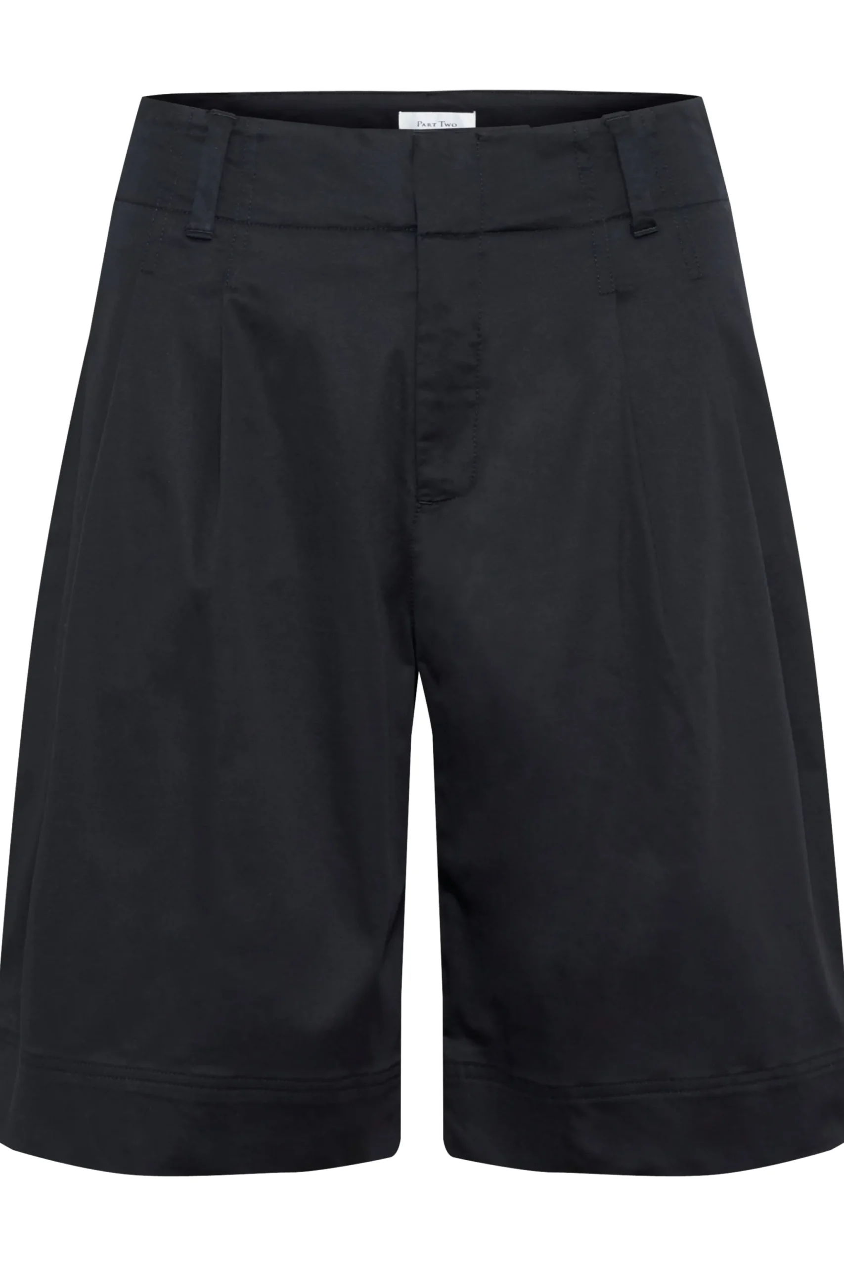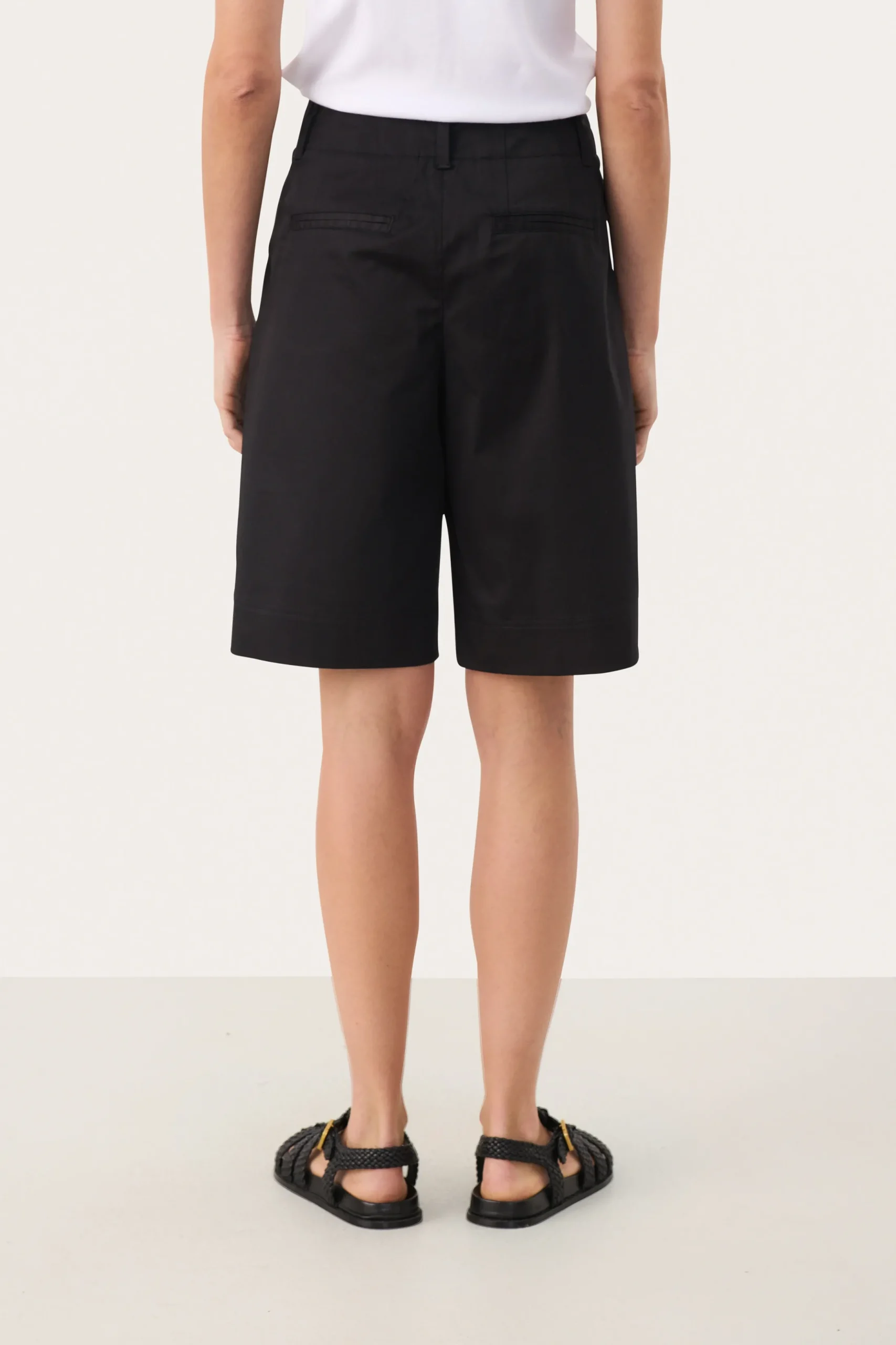 Modellen er 178 cm høj og er iført en størrelse 36.\\n\\nDisse stilfulde bermudashorts i en let bomuldsblanding har en løs, flatterende pasform og klassiske pressefolder, der tilfører et elegant touch. Den høje talje og bæltestropperne giver mulighed for alsidig styling. Perfekte til både hverdagsbrug og mere sofistikerede looks 窶