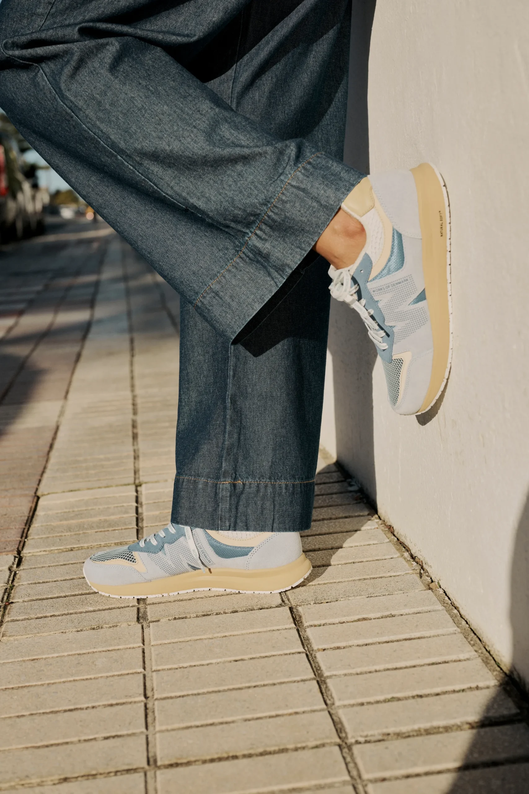 Vi præsenterer Rigmor Open Mesh, en dynamisk sneaker, der blander premium-håndværk med komfortteknologi. Fremstillet af certificeret LWG-ruskind, genbrugsmesh og ASC-certificeret upcyclet fiskelæder. En let EVA-mellemsål og en ydersål af gummi med 10 % genbrugsgummi sikrer holdbarhed. Den bløde PU-indersål med korkforing giver sammen med WODENs Natural Soft邃åndbarhed og komfort.\\n\\n- Certificeret ruskind fra Leather Working Group – Recycled tekstil \\n- Upcyclet fiskelæder med ASC certificering \\n- Formstøbt mellemsål i letvægtsmateriale EVA \\n- Ydersål i gummi med 10% genanvendt gummi \\n- WODEN natural soft technogi TM. \\n- Blød formstøbt indlægssål i PU beklædt med kork \\n- Woden air flow system TM.