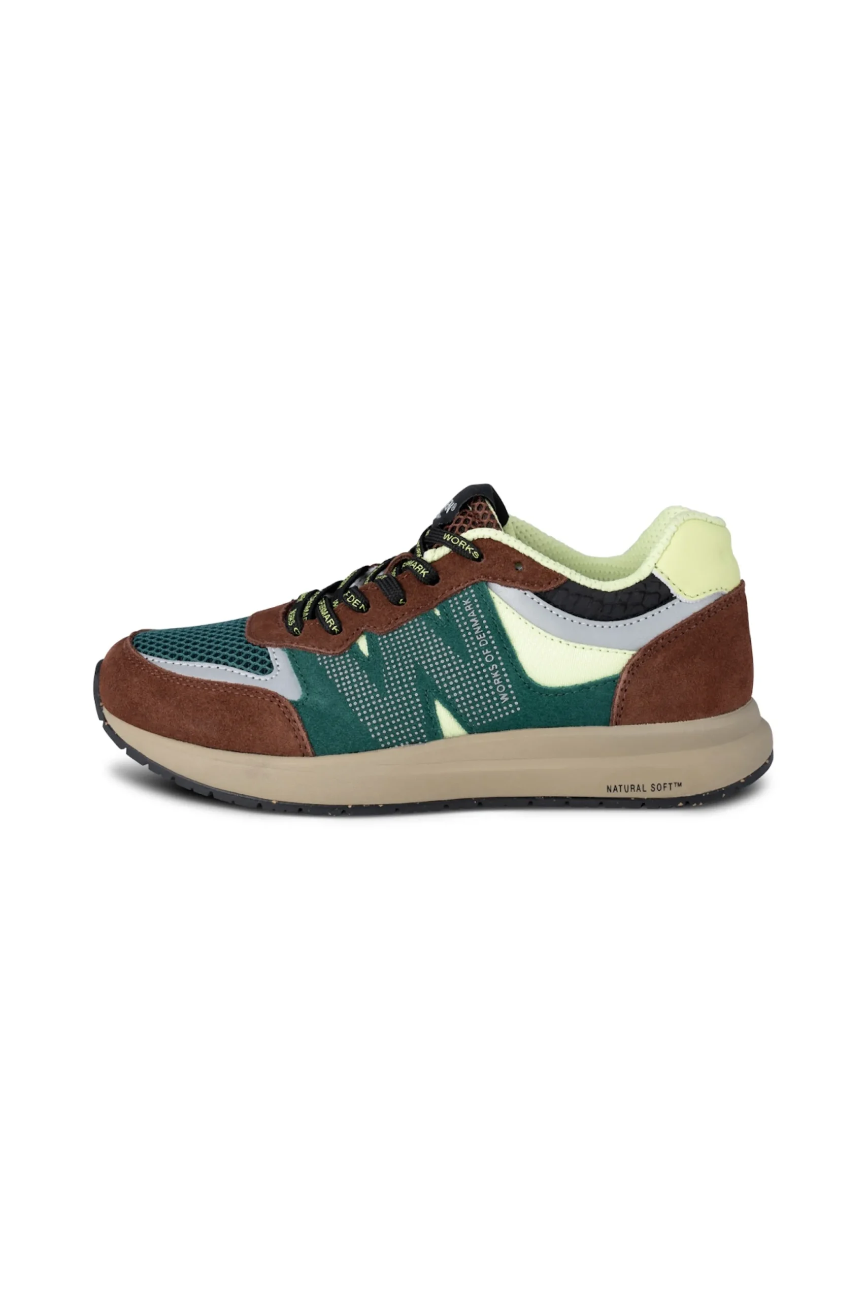 Vi præsenterer Rigmor Open Mesh, en dynamisk sneaker, der blander premium-håndværk med komfortteknologi. Fremstillet af certificeret LWG-ruskind, genbrugsmesh og ASC-certificeret upcyclet fiskelæder. En let EVA-mellemsål og en ydersål af gummi med 10 % genbrugsgummi sikrer holdbarhed. Den bløde PU-indersål med korkforing giver sammen med WODENs Natural Soft邃åndbarhed og komfort.\\n\\n- Certificeret ruskind fra Leather Working Group – Recycled tekstil \\n- Upcyclet fiskelæder med ASC certificering \\n- Formstøbt mellemsål i letvægtsmateriale EVA – Ydersål i gummi med 10% genanvendt gummi \\n- WODEN natural soft technogi TM. \\n- Blød formstøbt indlægssål i PU beklædt med kork – Woden air flow system TM.