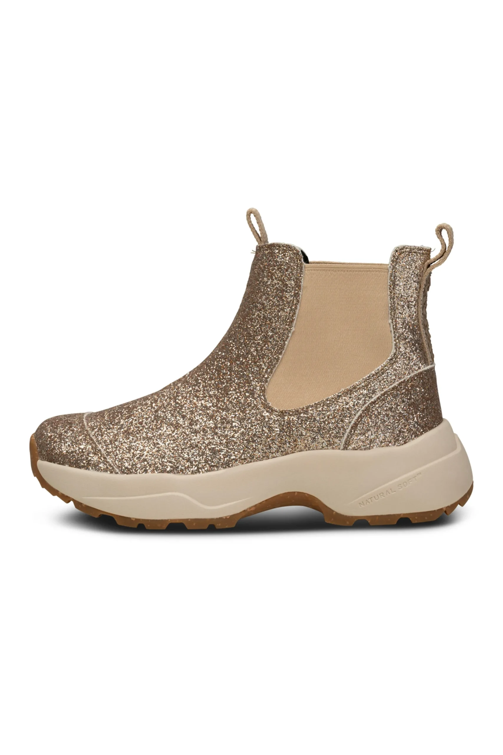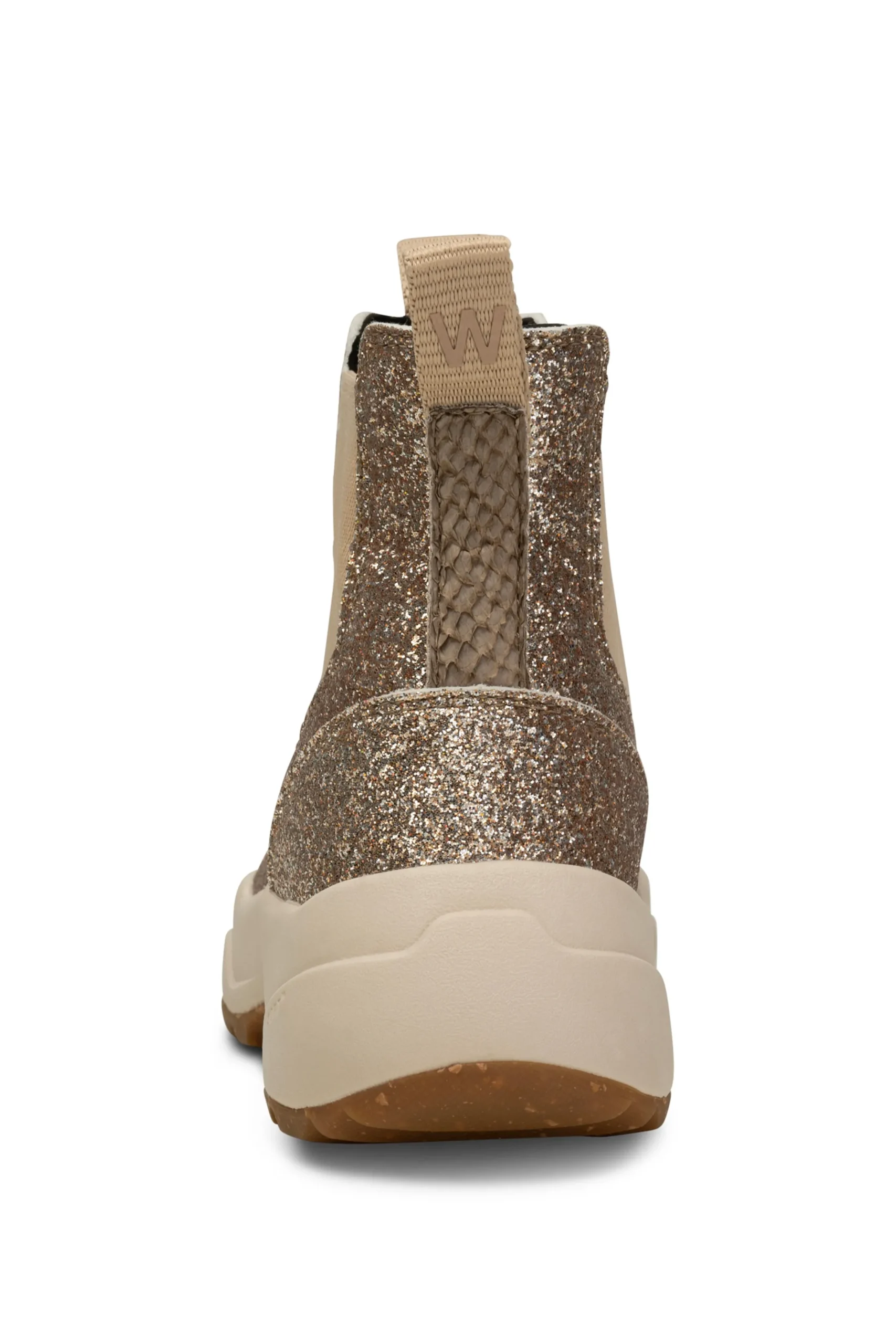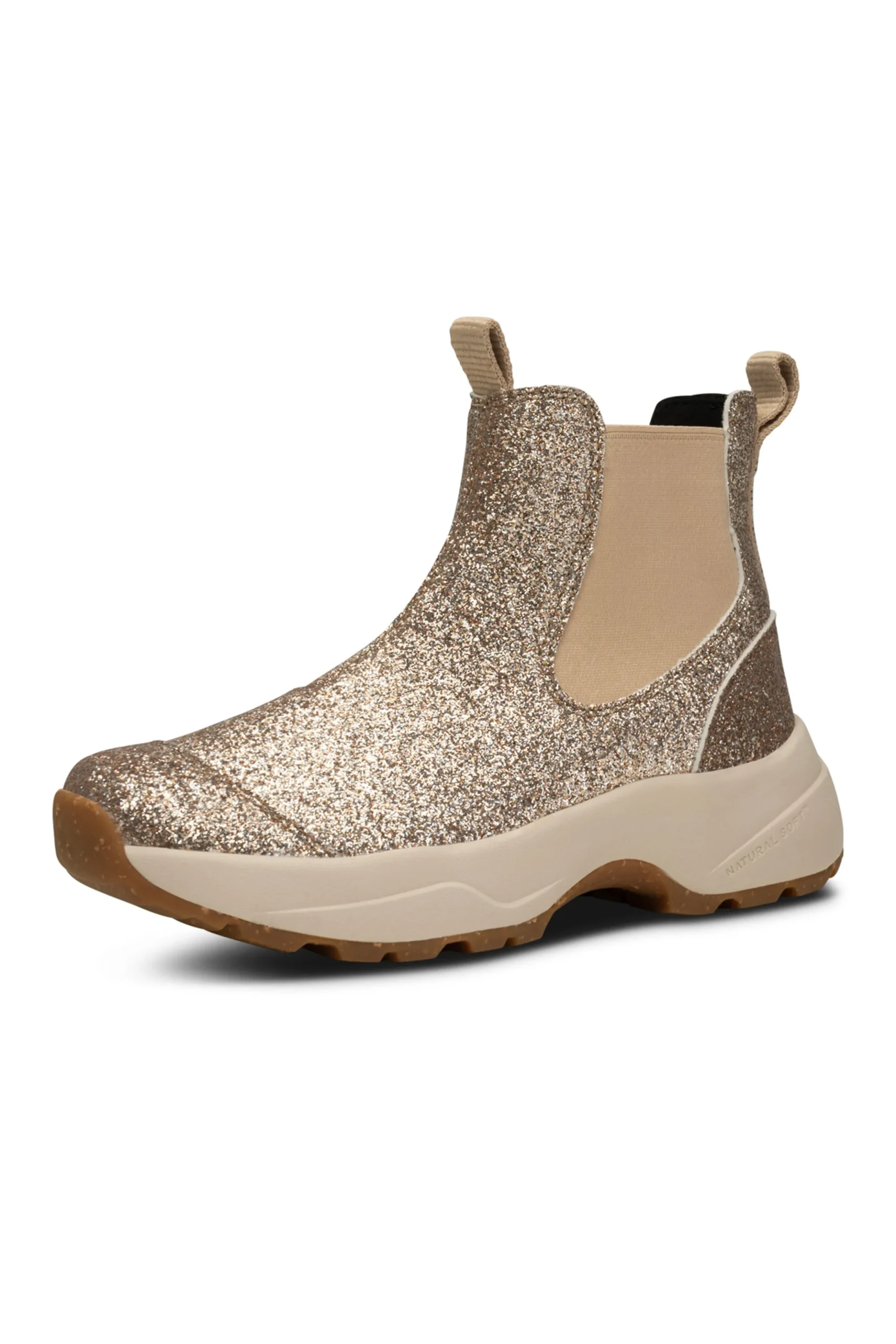 Støvle fra WODEN med elastik i siden. Dlitter. Gummisål.\\n