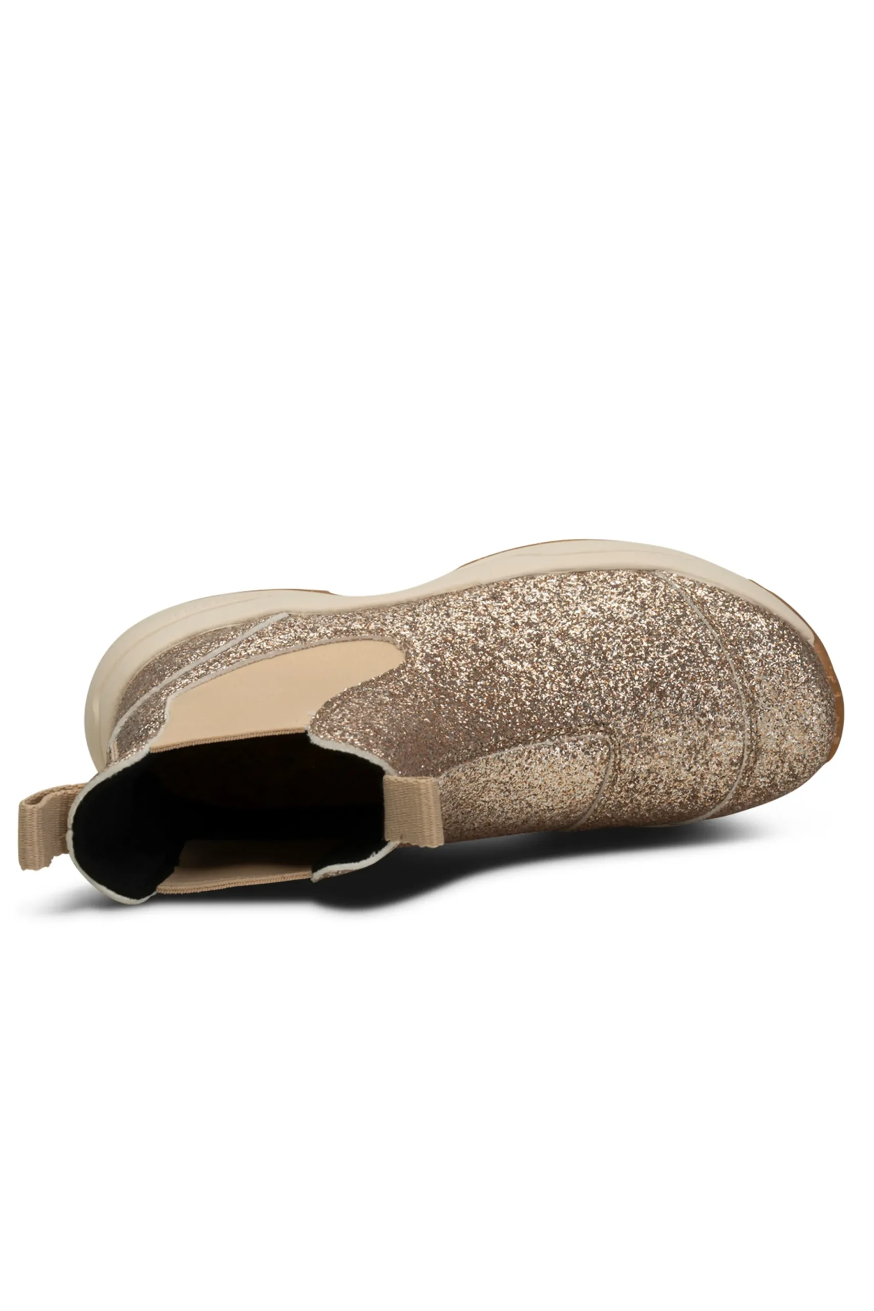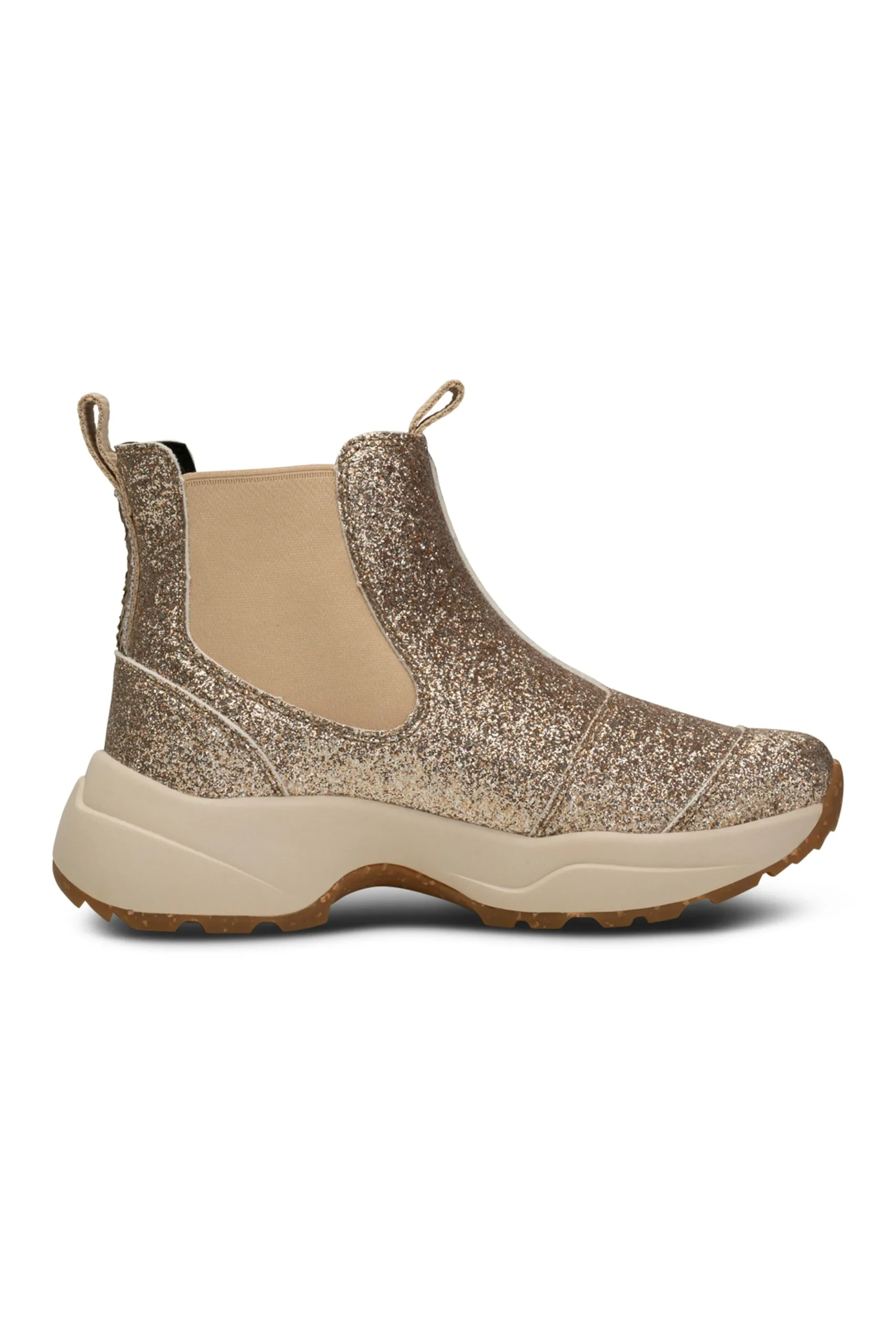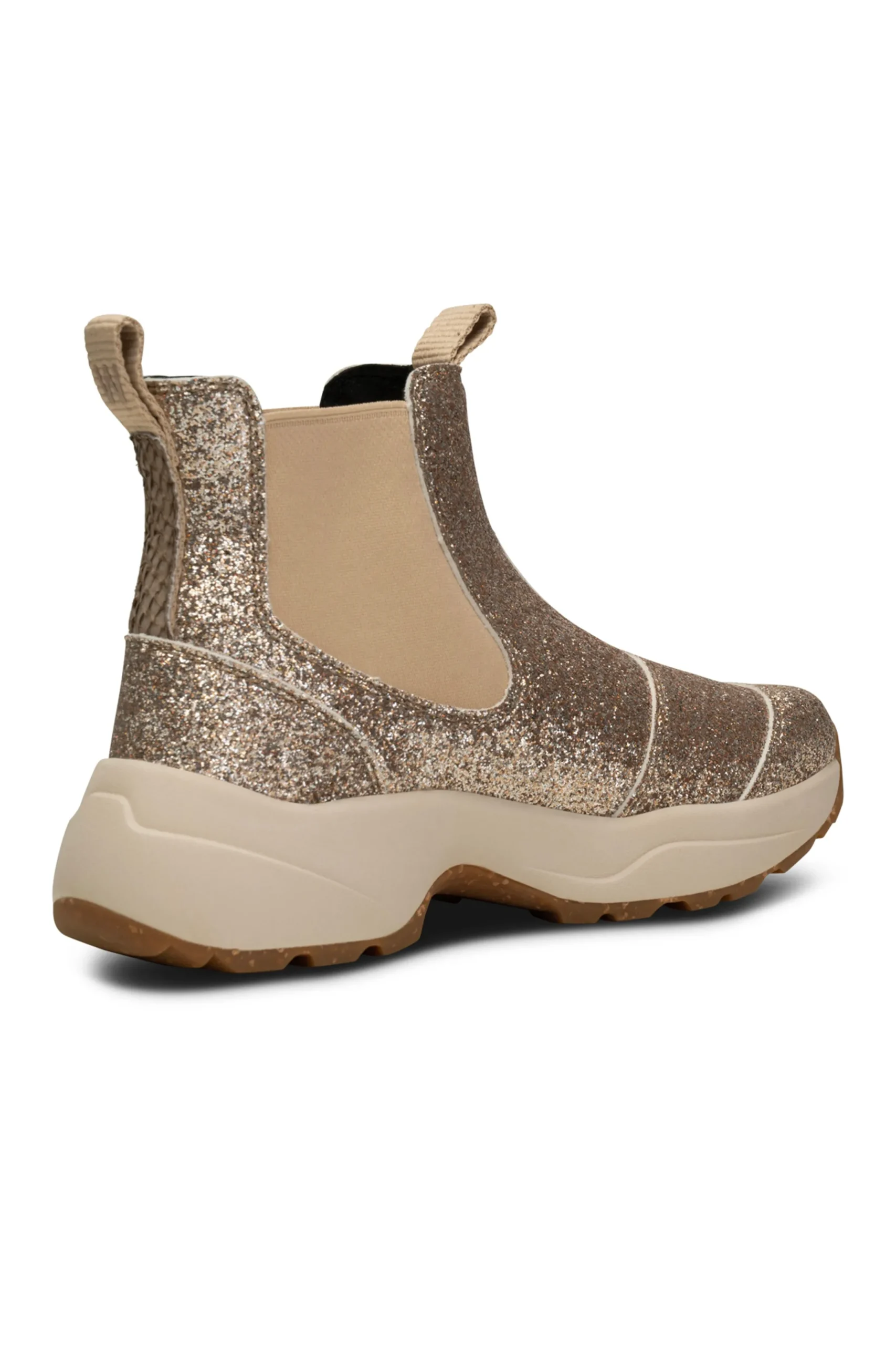 Støvle fra WODEN med elastik i siden. Dlitter. Gummisål.\\n