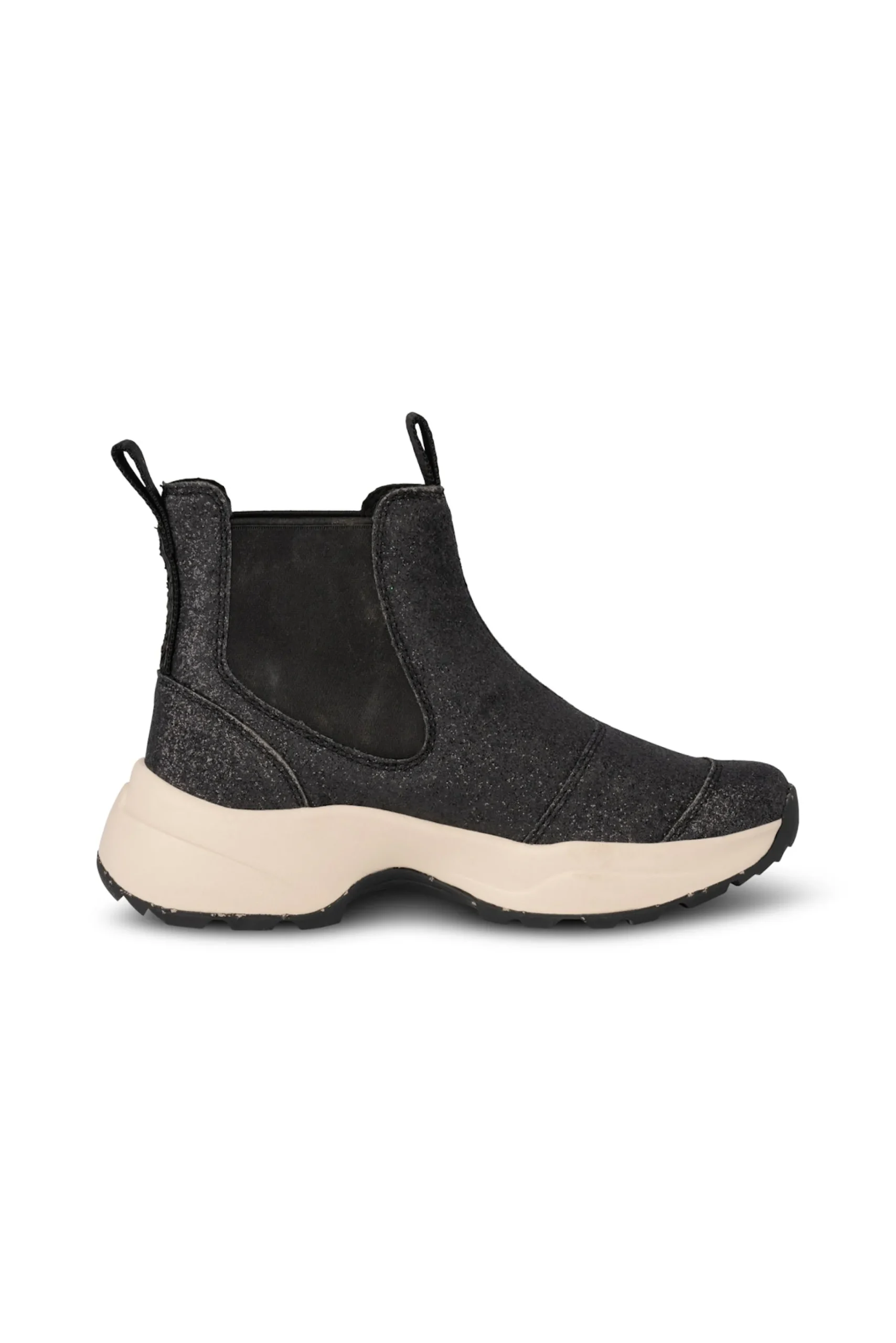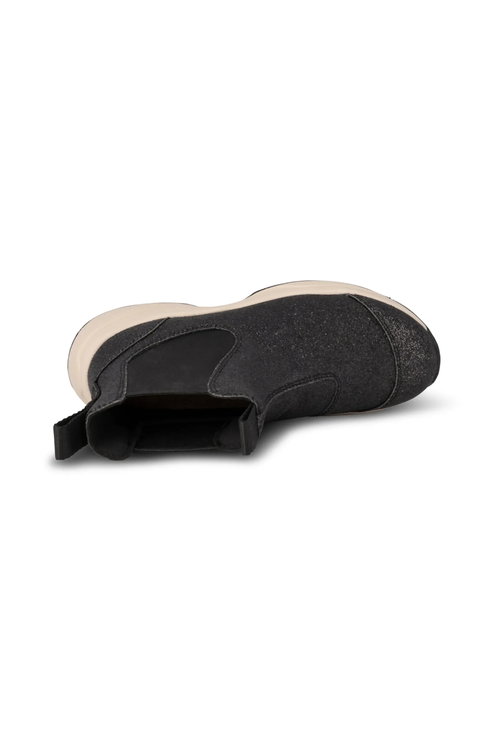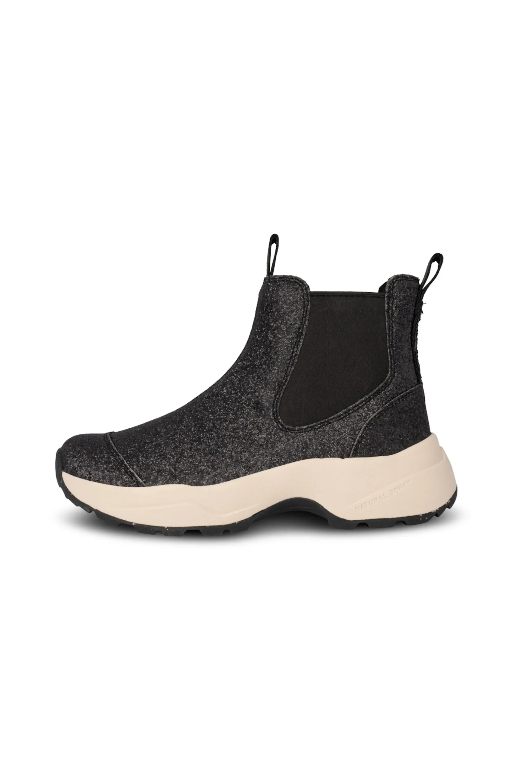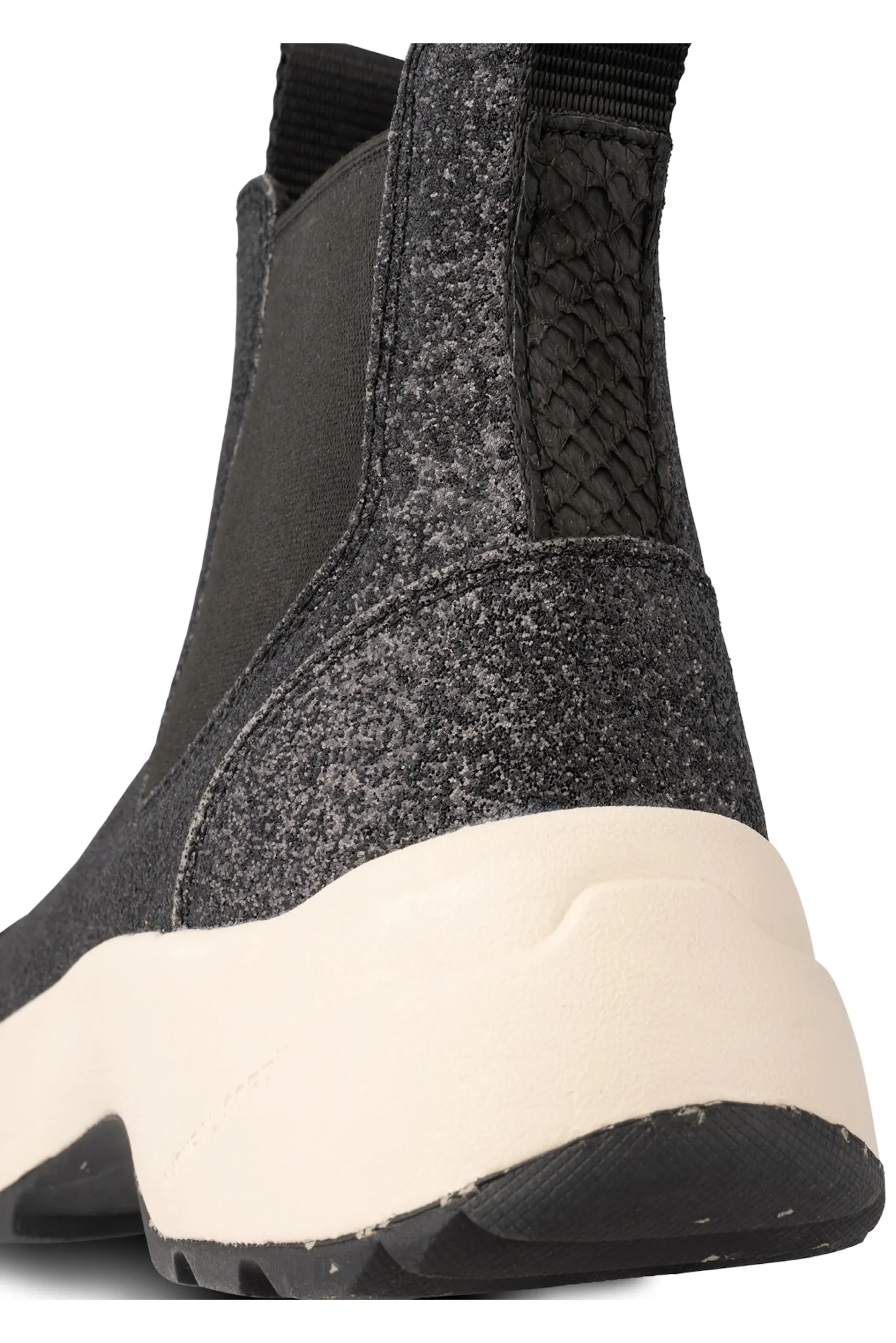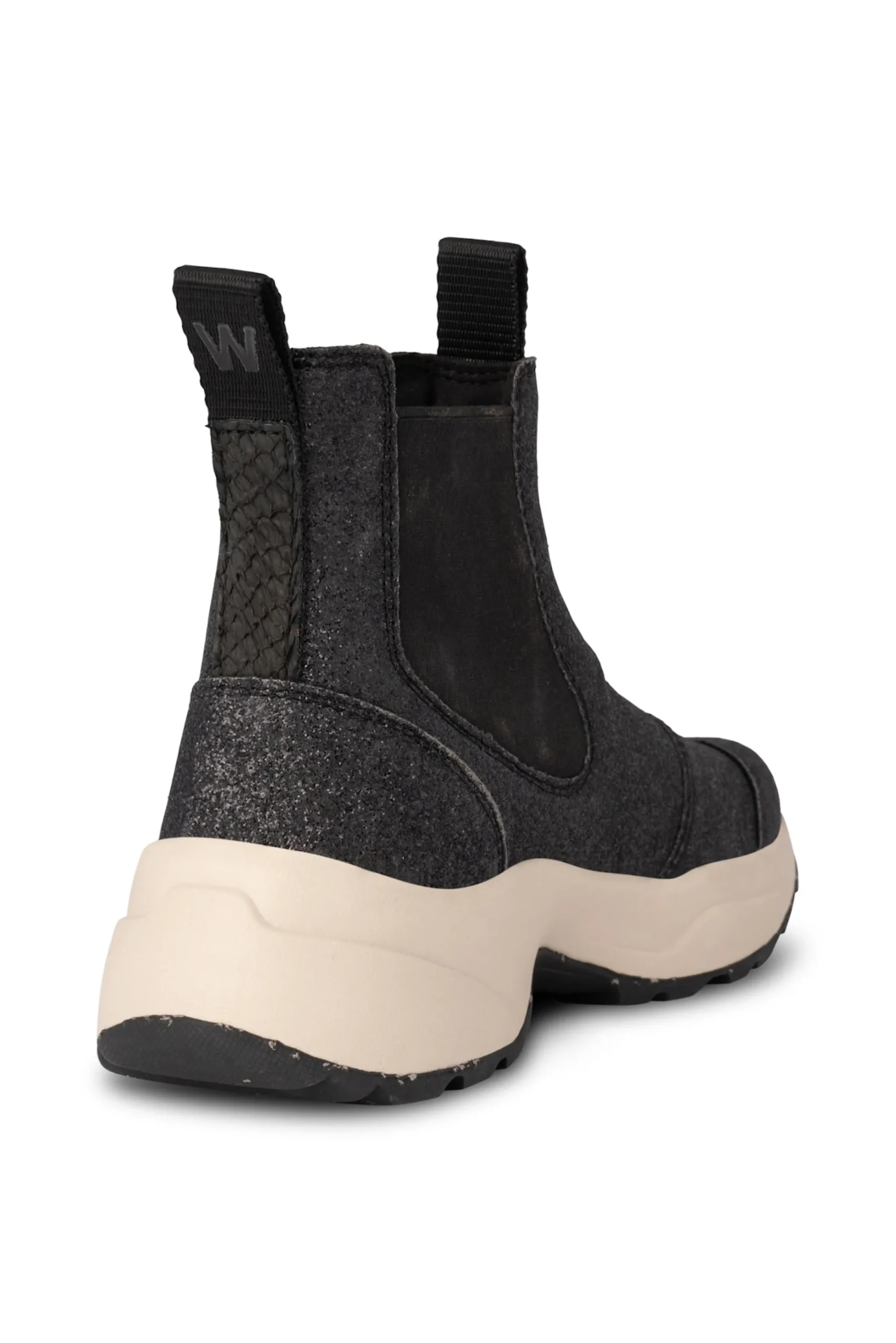 Silje Glitter er en glamourøs tilføjelse til din fodtøjssamling med et elegant skridsikkert design og elastiske sidepaneler. Derudover er støvlen udformet i et letvægtsdesign og har smukke fiskelæderdetaljer på hælen.\\n\\nDer er brugt blødt PU-skum til støvlens indersål, som både er let og stødabsorberende. \\n\\nStøvlens åndbarhed er sikret ved hjælp af en WODEN airflow indersål og en ydersål baseret på vores Natural Soft-teknologi. En teknologi, der er designet til at sikre den bedst mulige komfort.\\n\\n窶ægtssko\\n窶ål lavet af EVA\\n窶æder detalje\\n窶ægssål med Airflow system