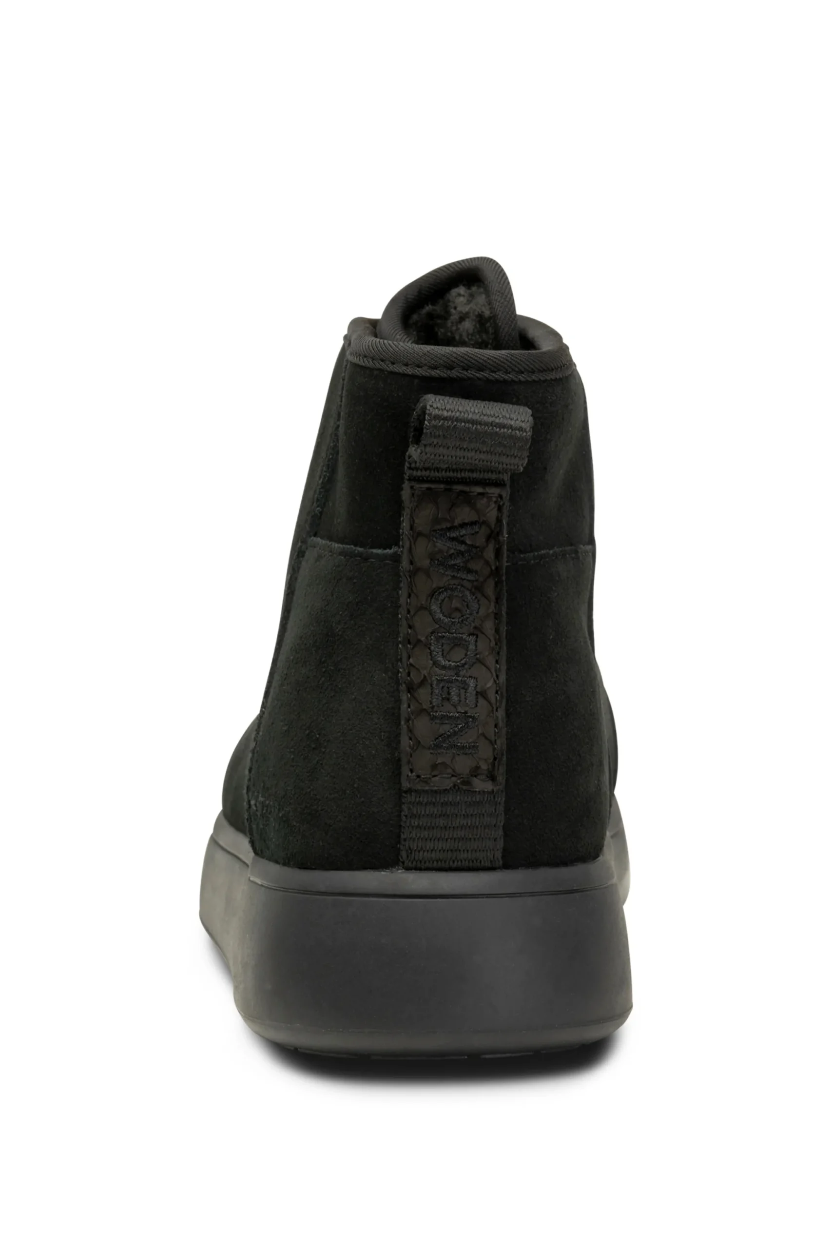 Støvle fra WODEN med gummisål. \\n\\nI den helt nye Silvia Waterproof får du WODENs velkendte kvalitet kombineret med et populært og komfortabelt design. Derudover er støvlen lavet af ruskind, der er LWG-certificeret og er foret med et varmt materiale. \\n\\nStøvlens åndbarhed er sikret ved hjælp af en WODEN airflow-sål samt en ydersål baseret på vores Natural Soft-teknologi. En teknologi, der er designet til at sikre den højest mulige komfort, hvilket gør Silvia til en komfortabel vandtæt følgesvend på farten.\\n\\n窶ål med Natural Soft teknologi\\n窶æt\\n窶æder\\n窶æder detalje\\n窶ægssål med Airflow system\\n