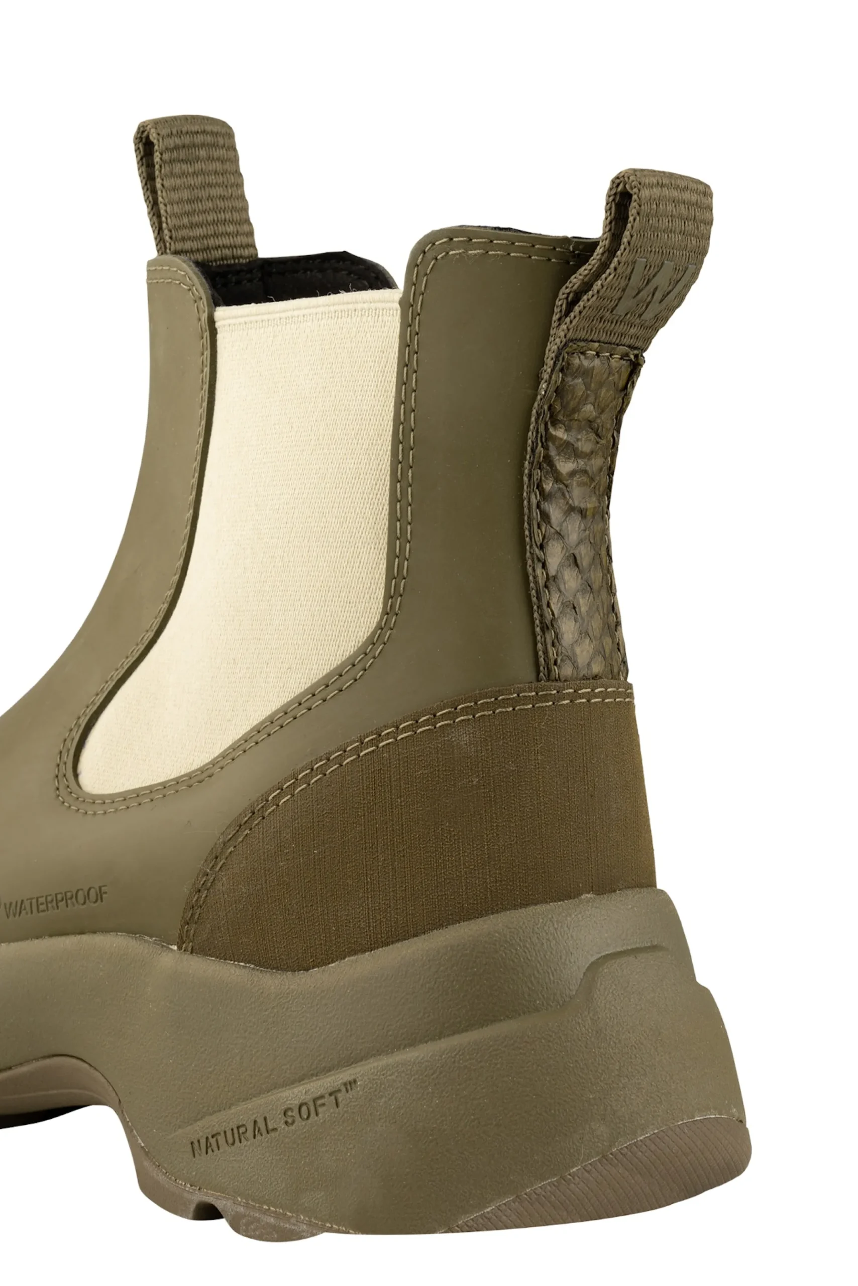 Støvler fra WODEN med elastik i siden. Overdel: 22% Textil (almindelig elastik) / 78% læder (100% LWG) Inderside: 90% Textil / 10% PU Indersål: Kork. Ydersål: Gummiydersål (Indeholder 10% genanvendt gummiprikker.)