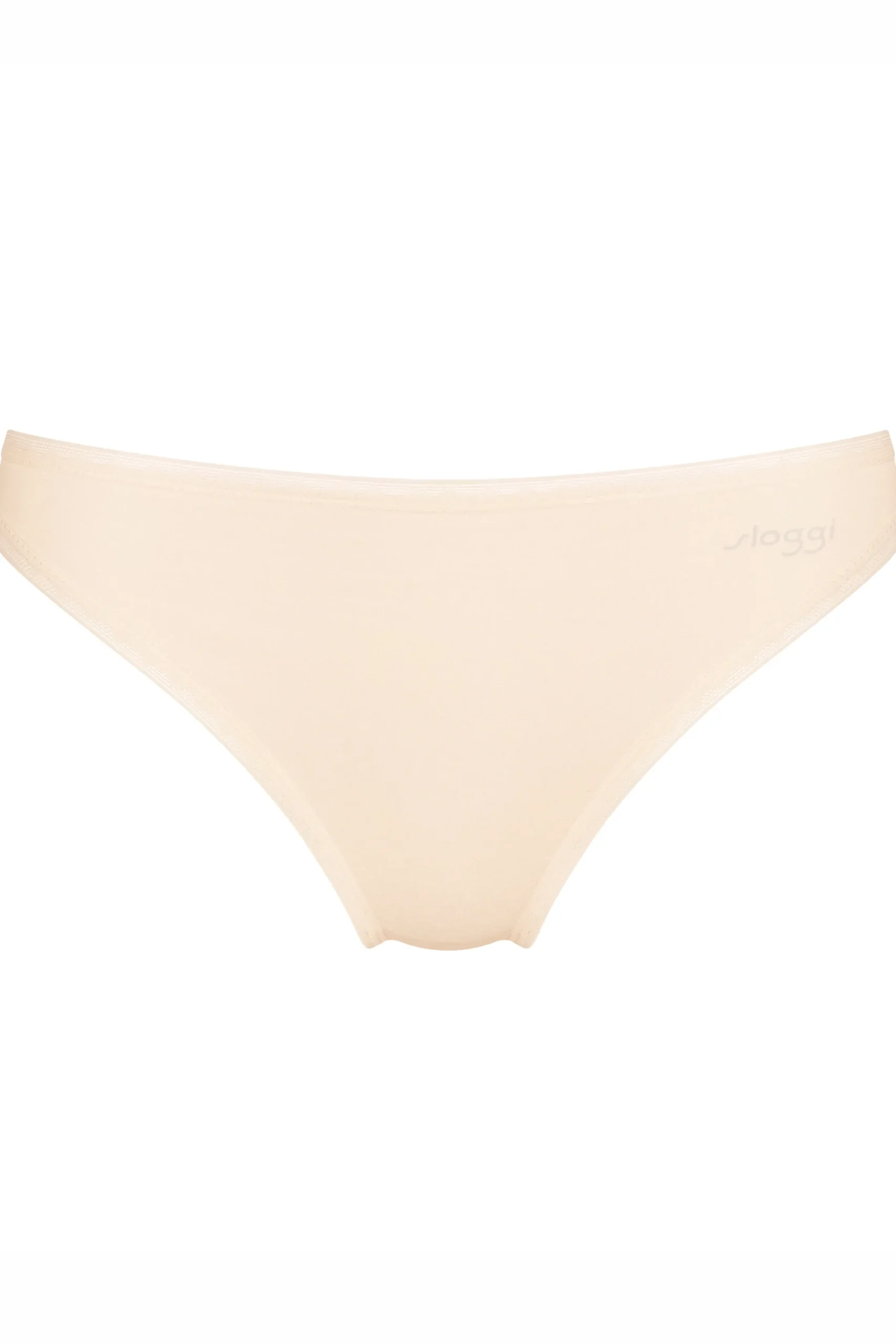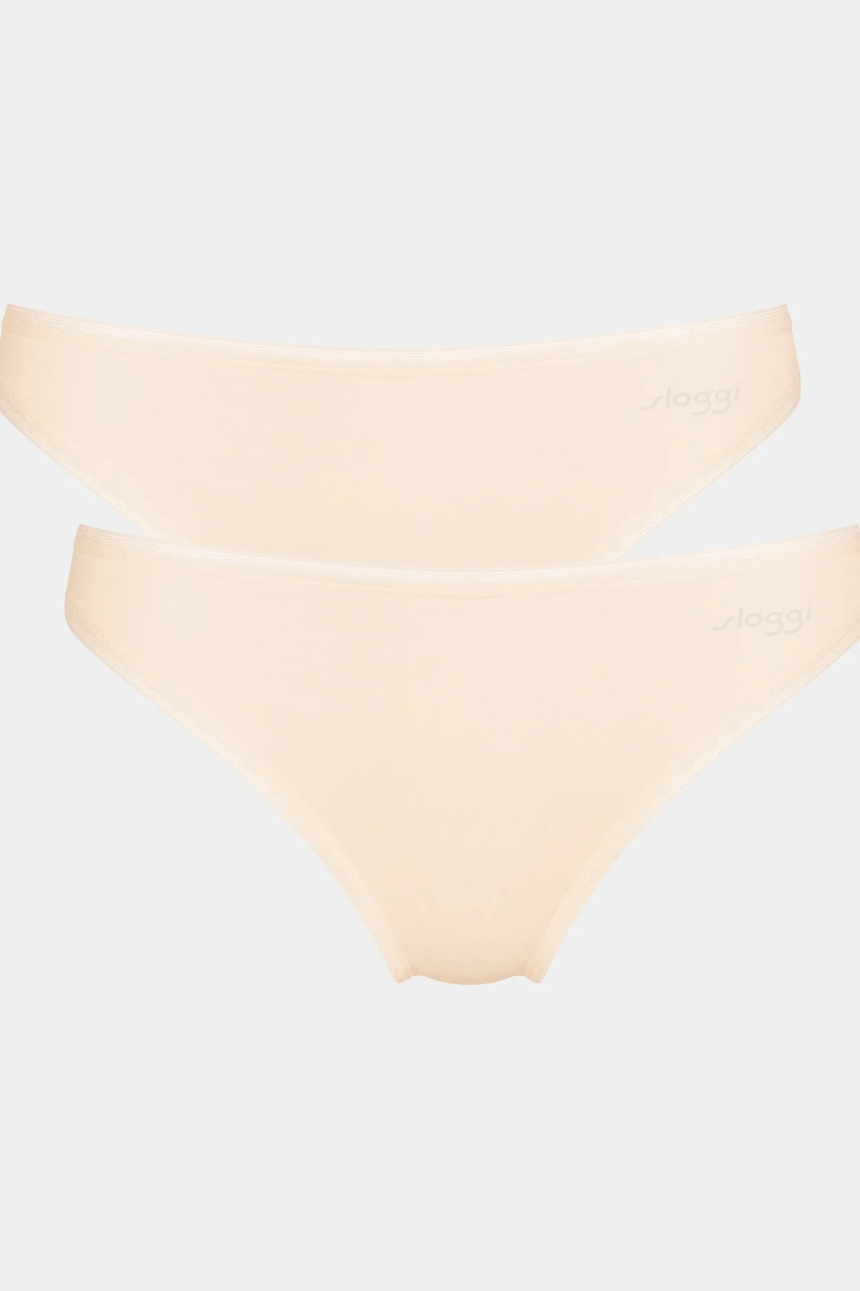 2-pack of tai briefs. High leg opening and full coverage on bottom. Made from premium organic cotton. Natural, breathable and durable. Elastic circular knit fabric with a super-soft feel. Stretchy geometric trim. Subtle sloggi branding. Recycled and 100% recyclable packaging. Better for you and the planet. Easy sizing. Available in a range of colours. Matching tops available.