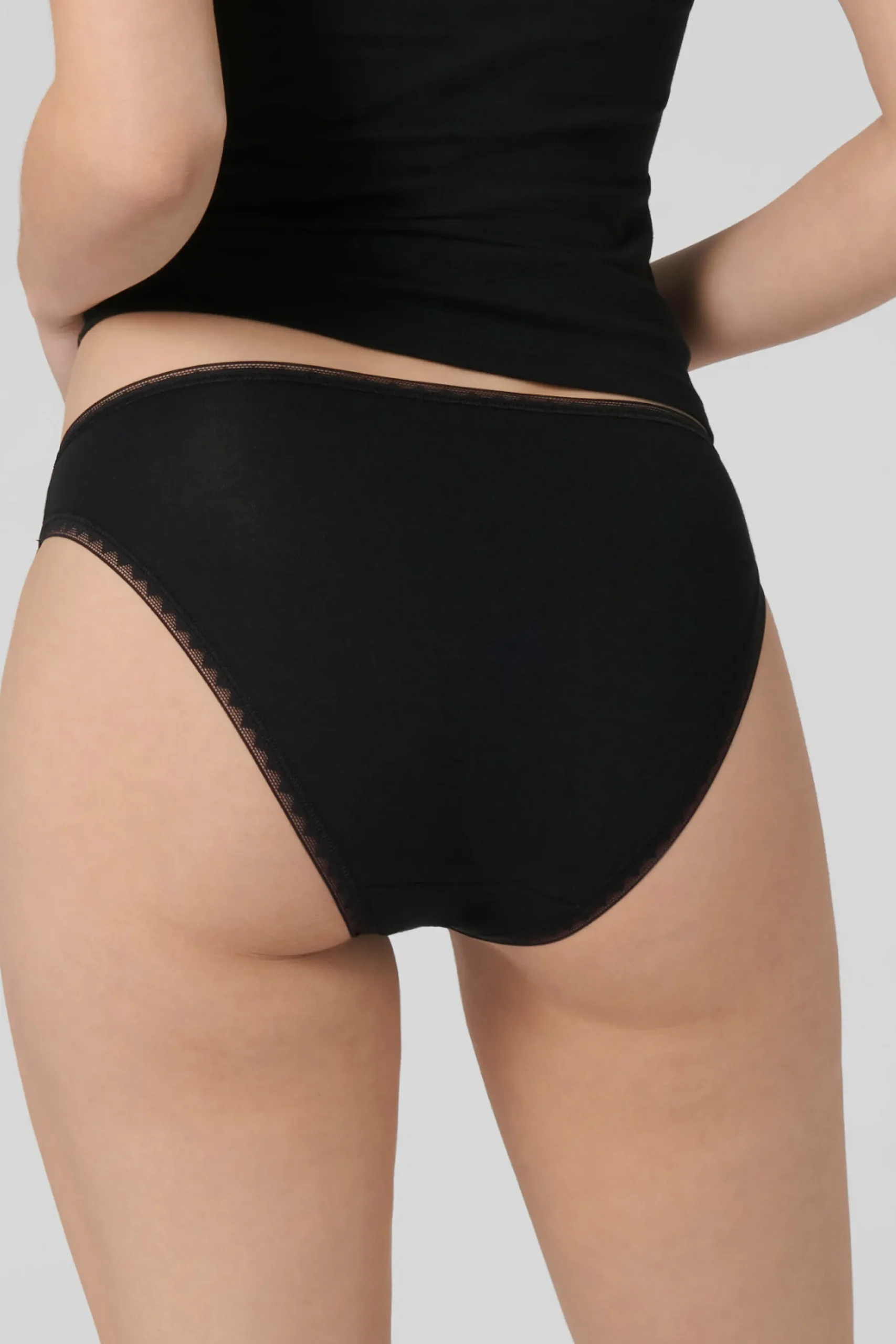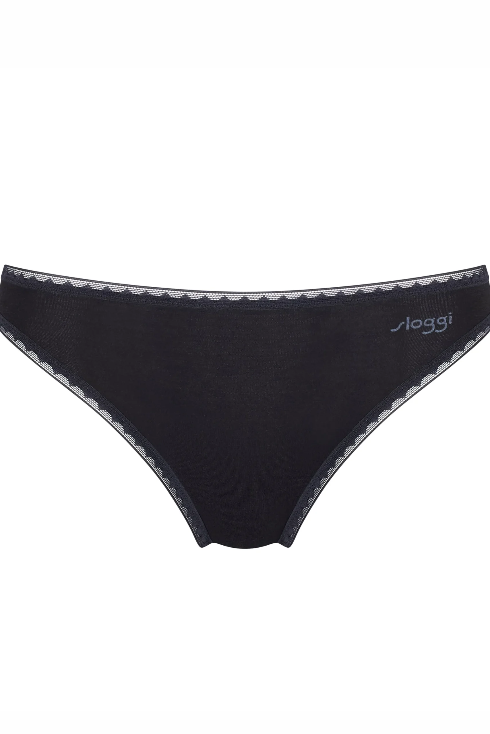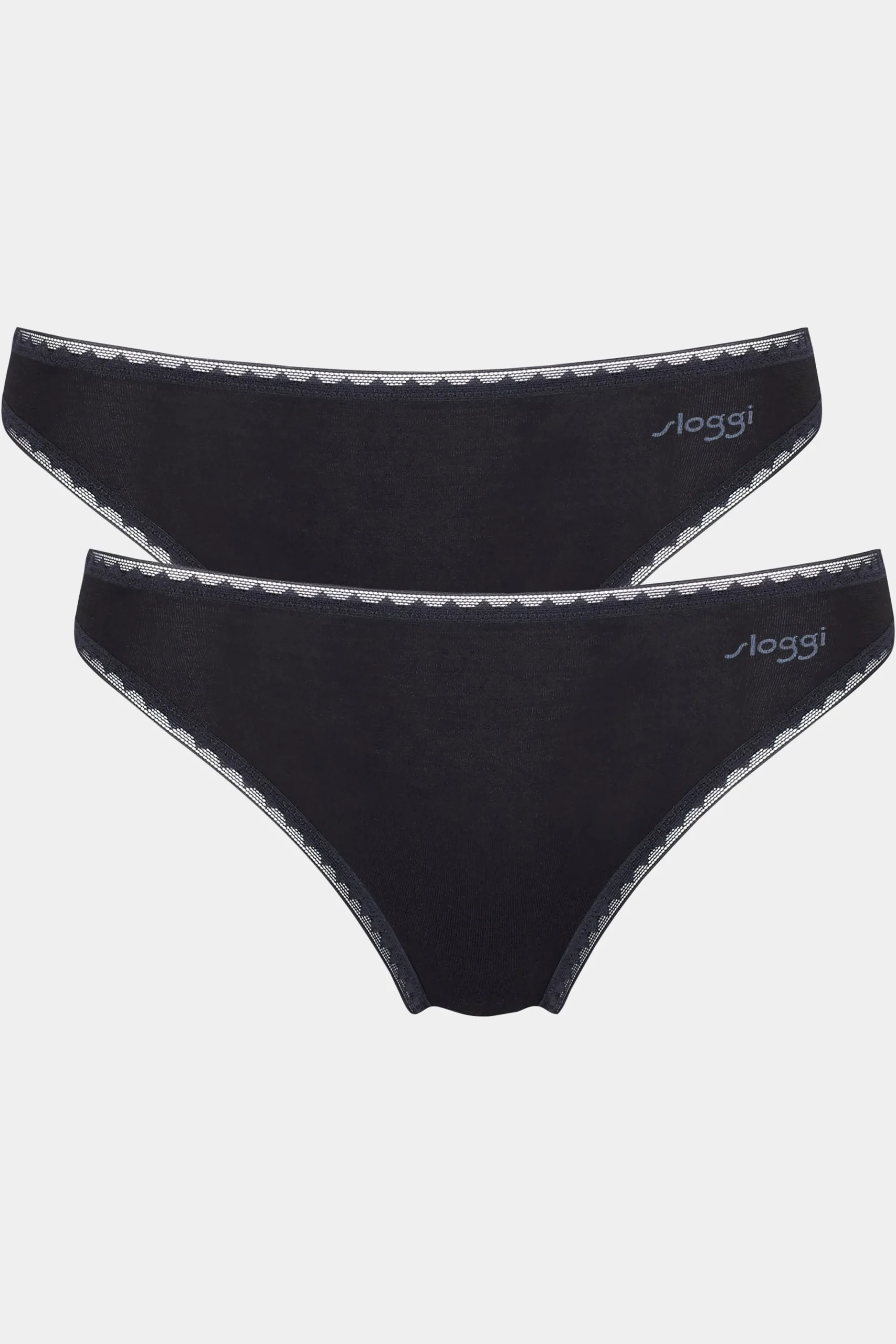 2-pack of tai briefs. High leg opening and full coverage on bottom. Made from premium organic cotton. Natural, breathable and durable. Elastic circular knit fabric with a super-soft feel. Stretchy geometric trim. Subtle sloggi branding. Recycled and 100% recyclable packaging. Better for you and the planet. Easy sizing. Available in a range of colours. Matching tops available.