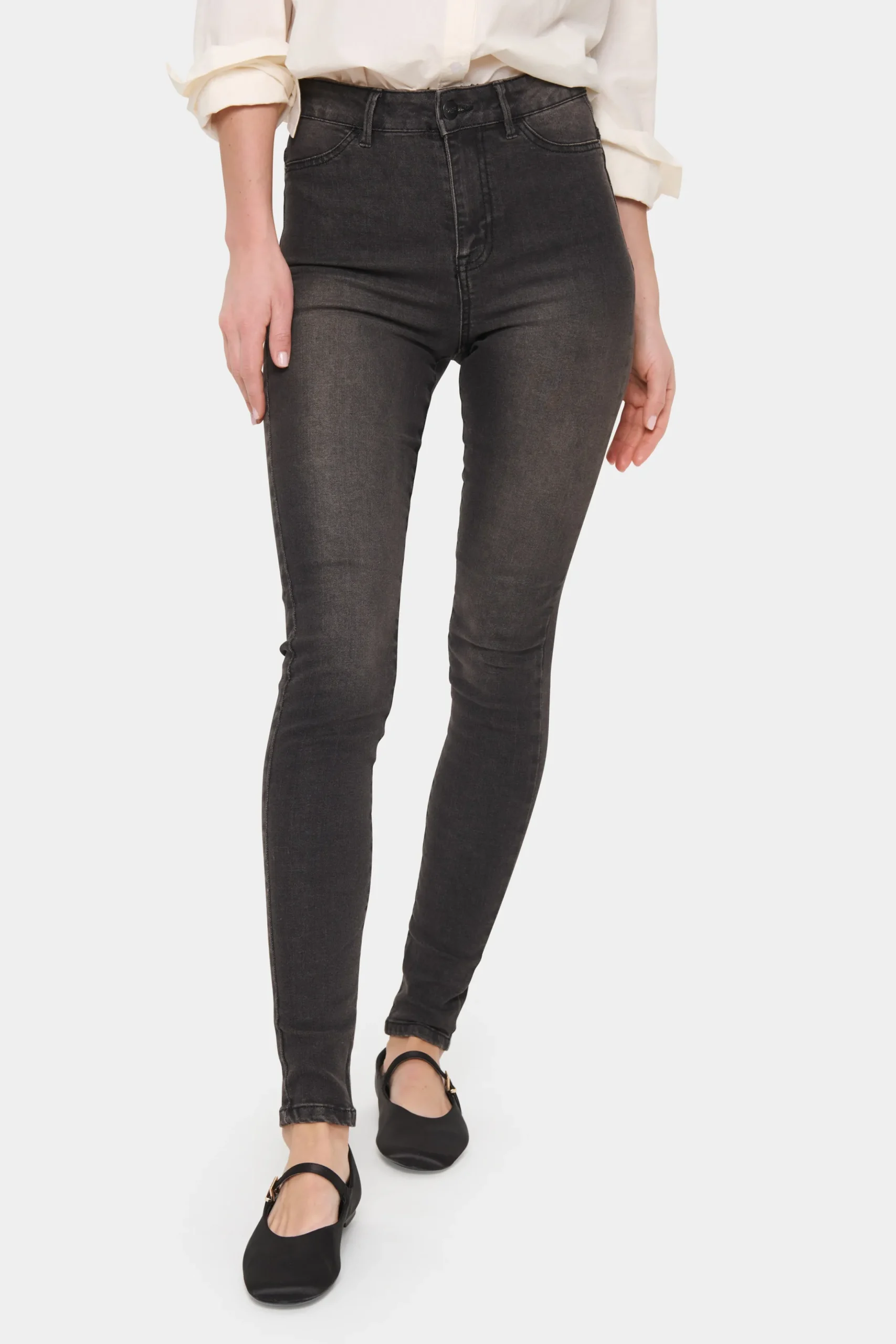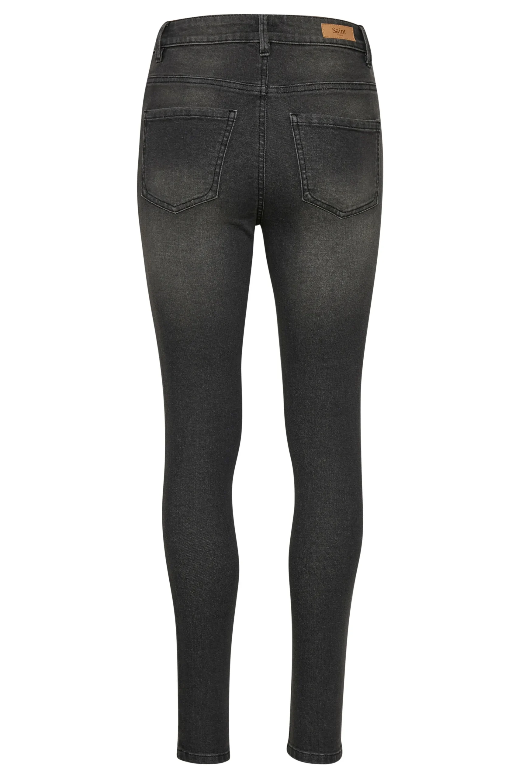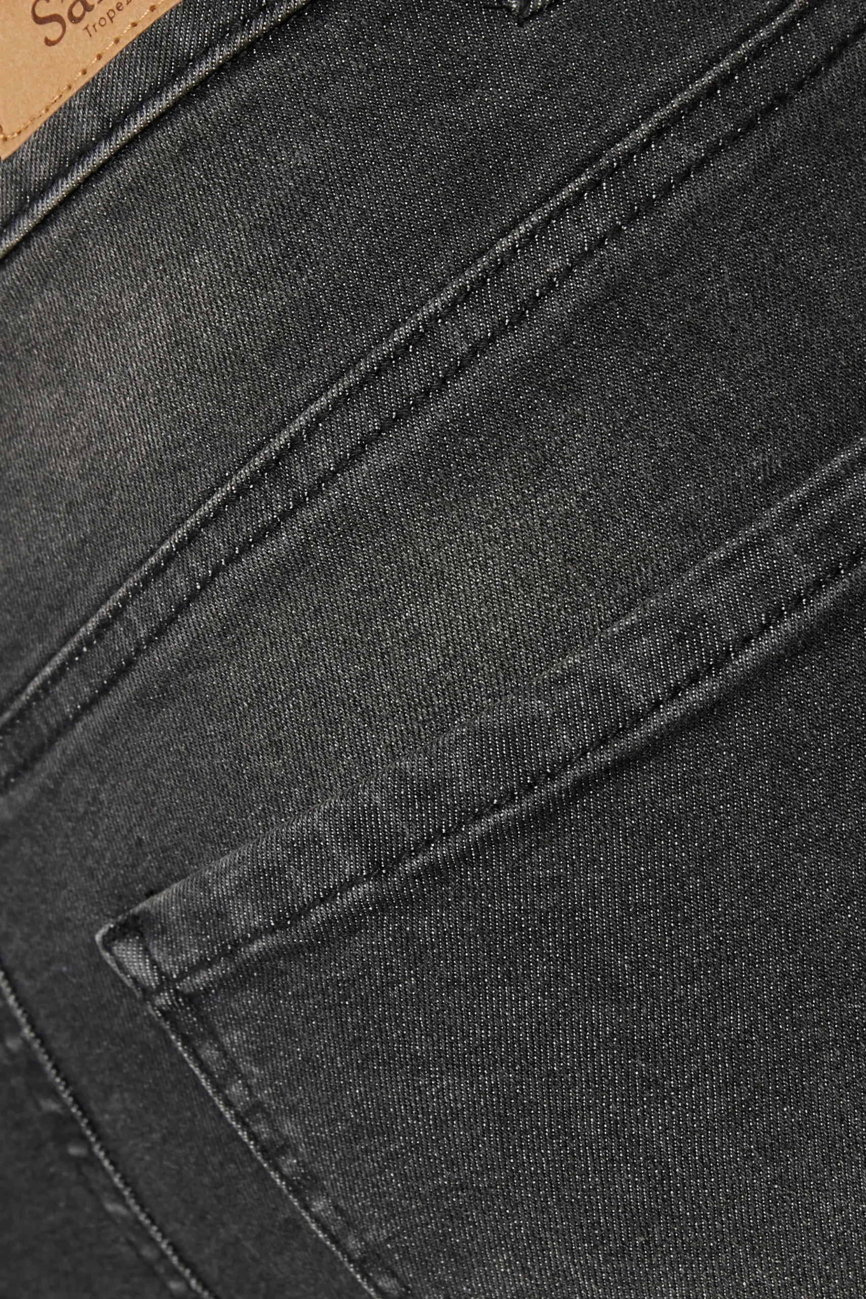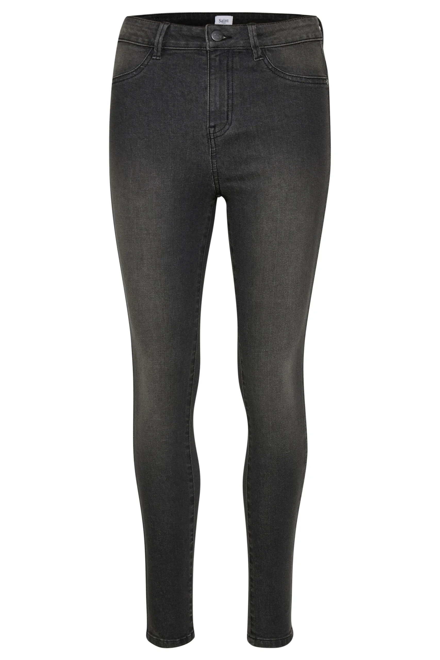Denimbuks fra Saint Tropez med fast linning, bæltestropper samt knap og lynlåslukning. 5 lommer. Tætsiddende pasform. Høj talje. Tætsiddende ben.