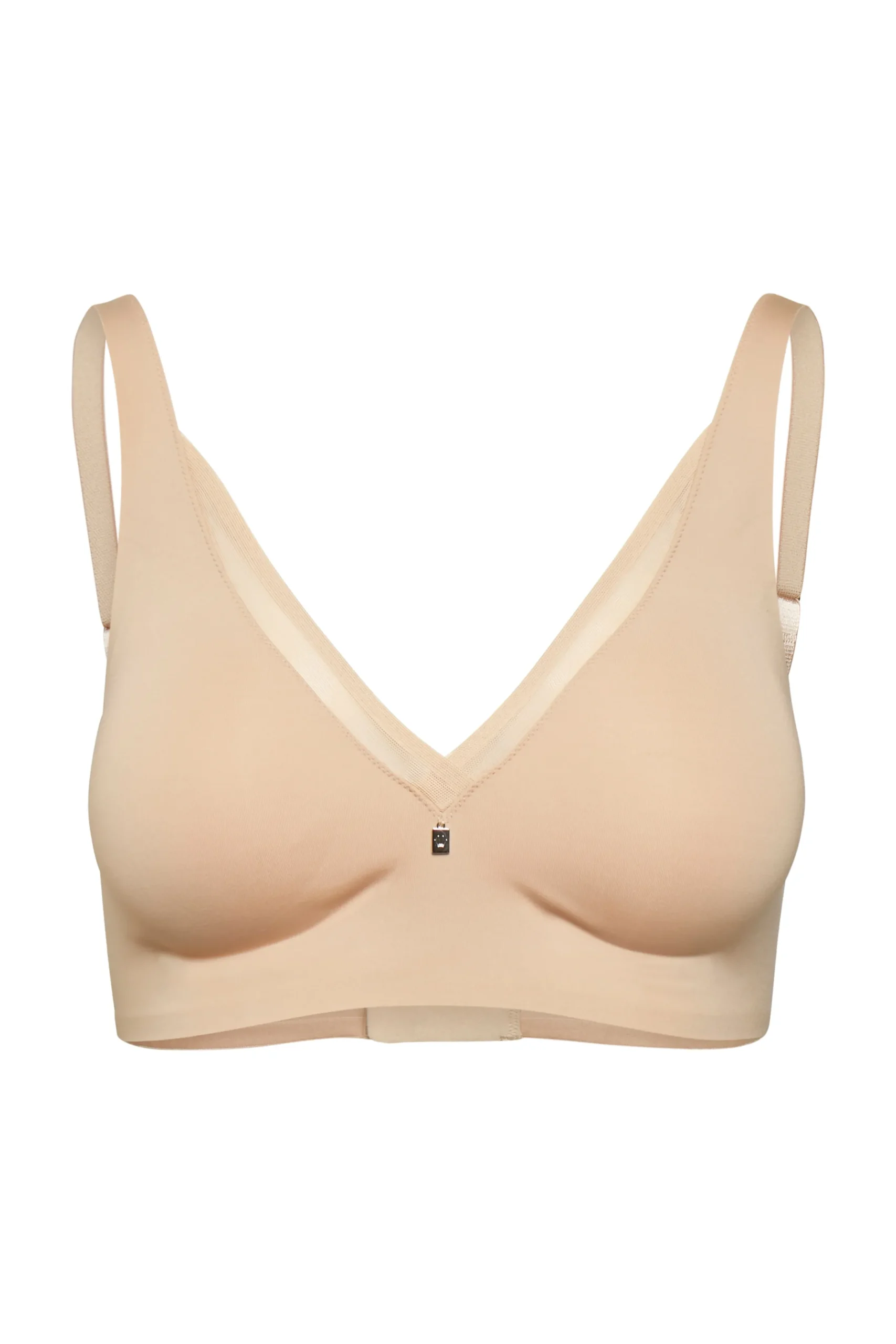 BH fra Triumph uden bøjle og polstring. Dobbelt laminering med blød foring. Justerbare skulderstropper. Hægtelukning bagtil.