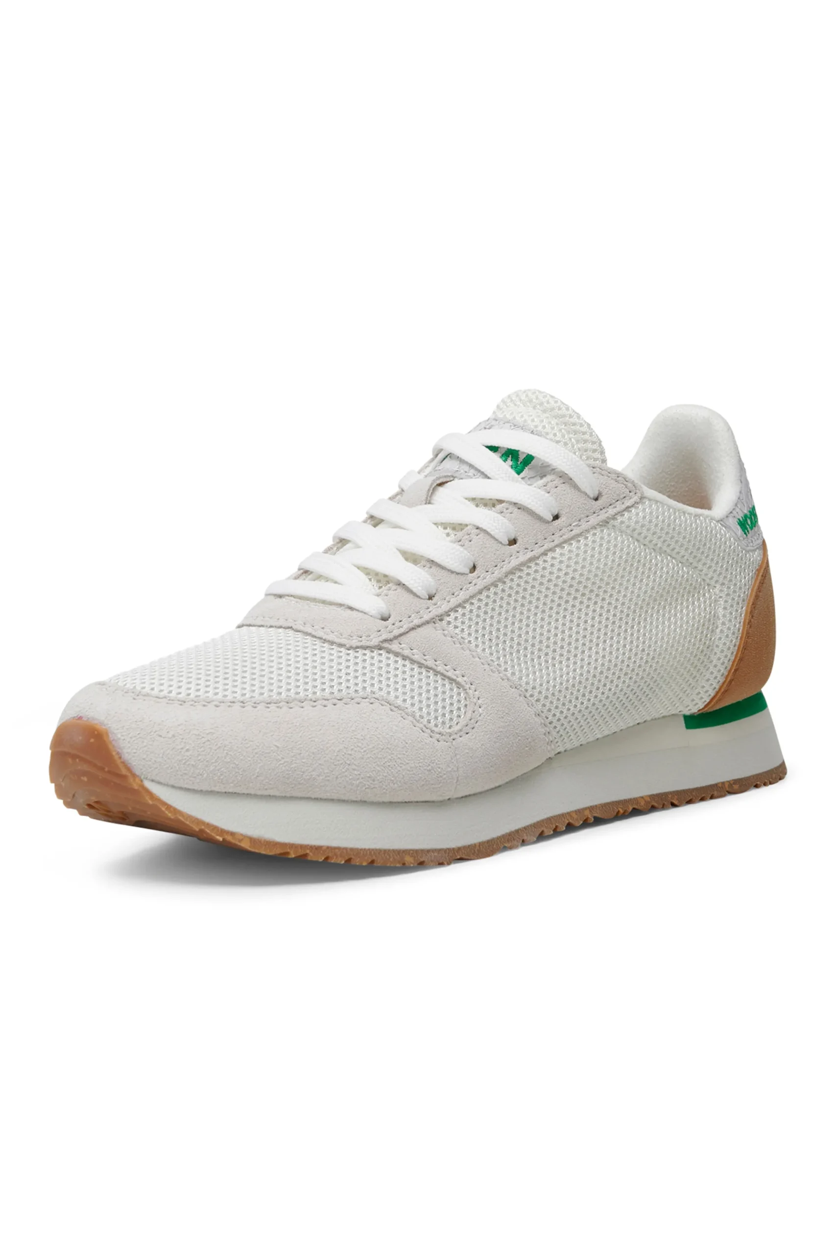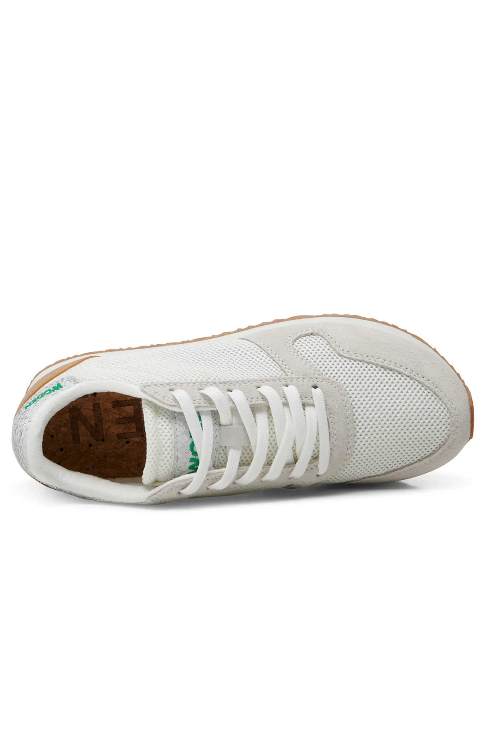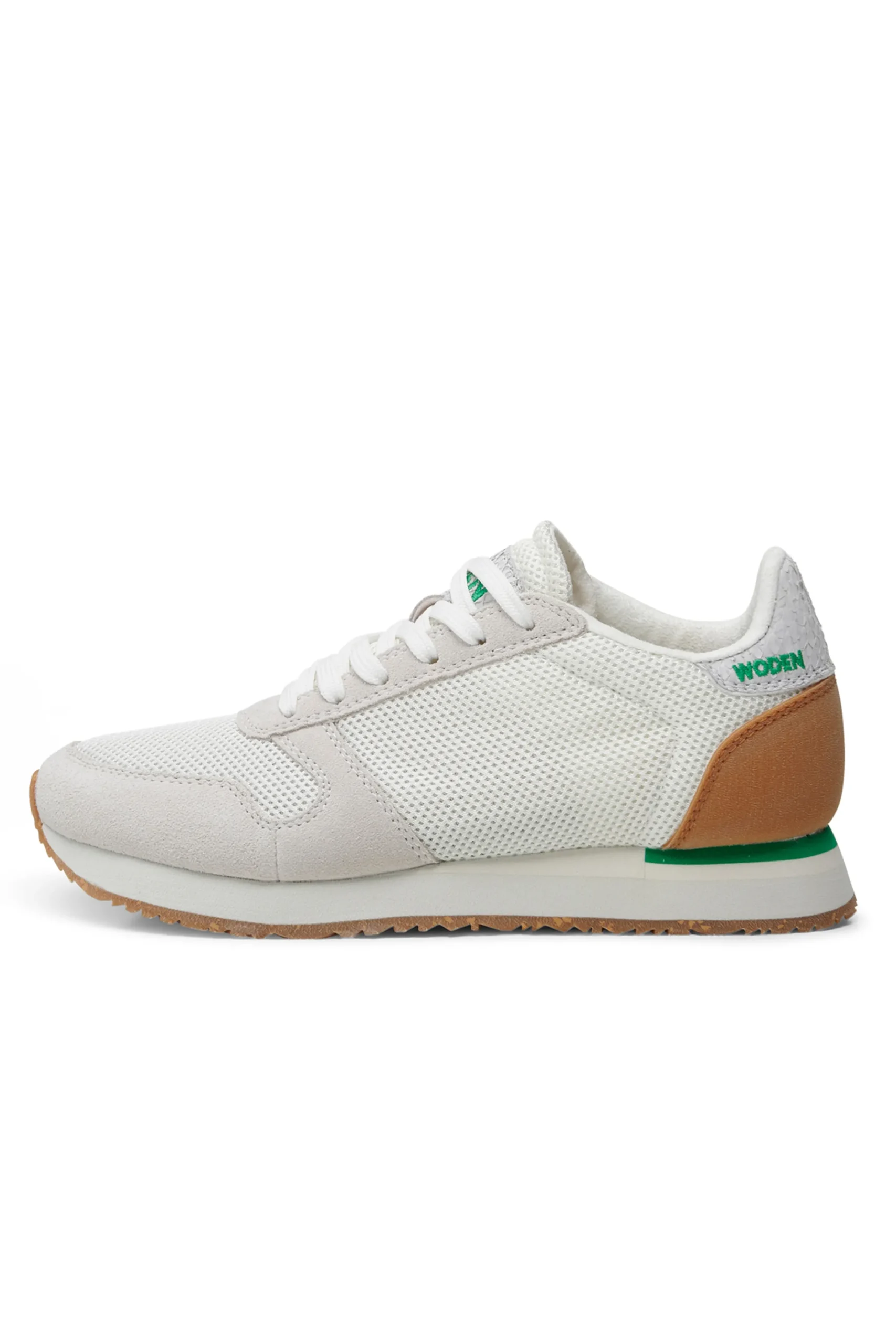 Sneakers fra WODEN med snøre. Overdel: 55% Textil/34% læder (100% LWG)/ 11% gummi. Inderside: 100% Textil (Microfiber materiale–50% genanvendt. Indersål: Kork. Ydersål: EVA mellemsål/Gummi ydersål (Indeholder 10% genanvendt gummiprikker.)