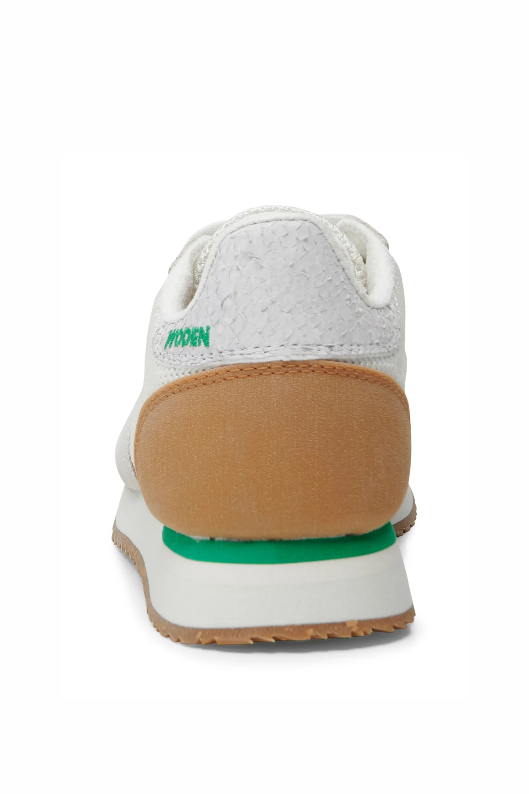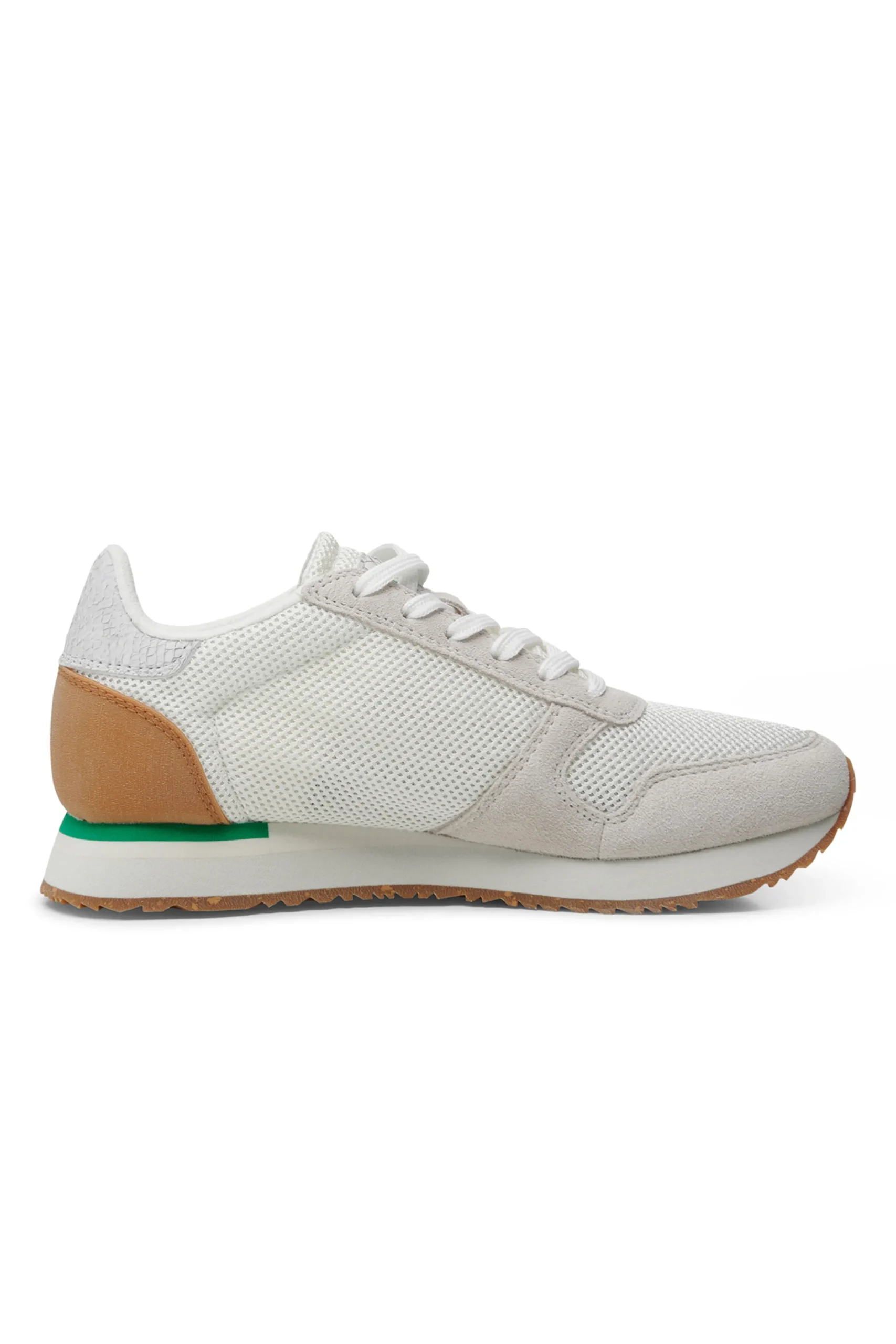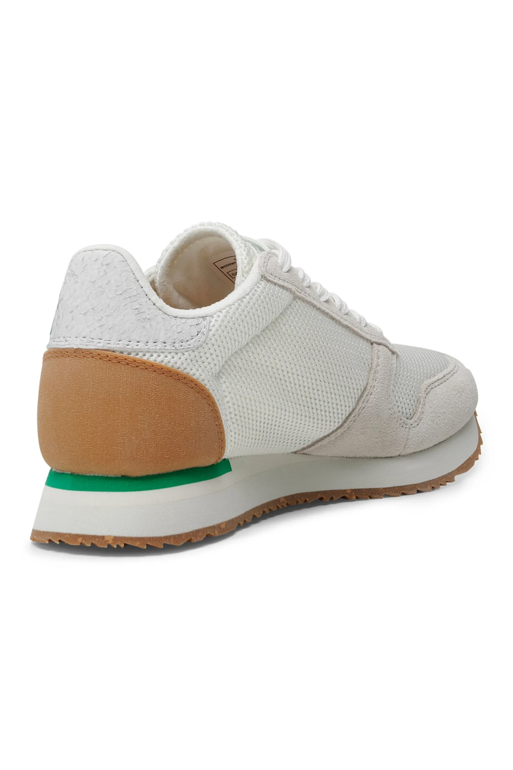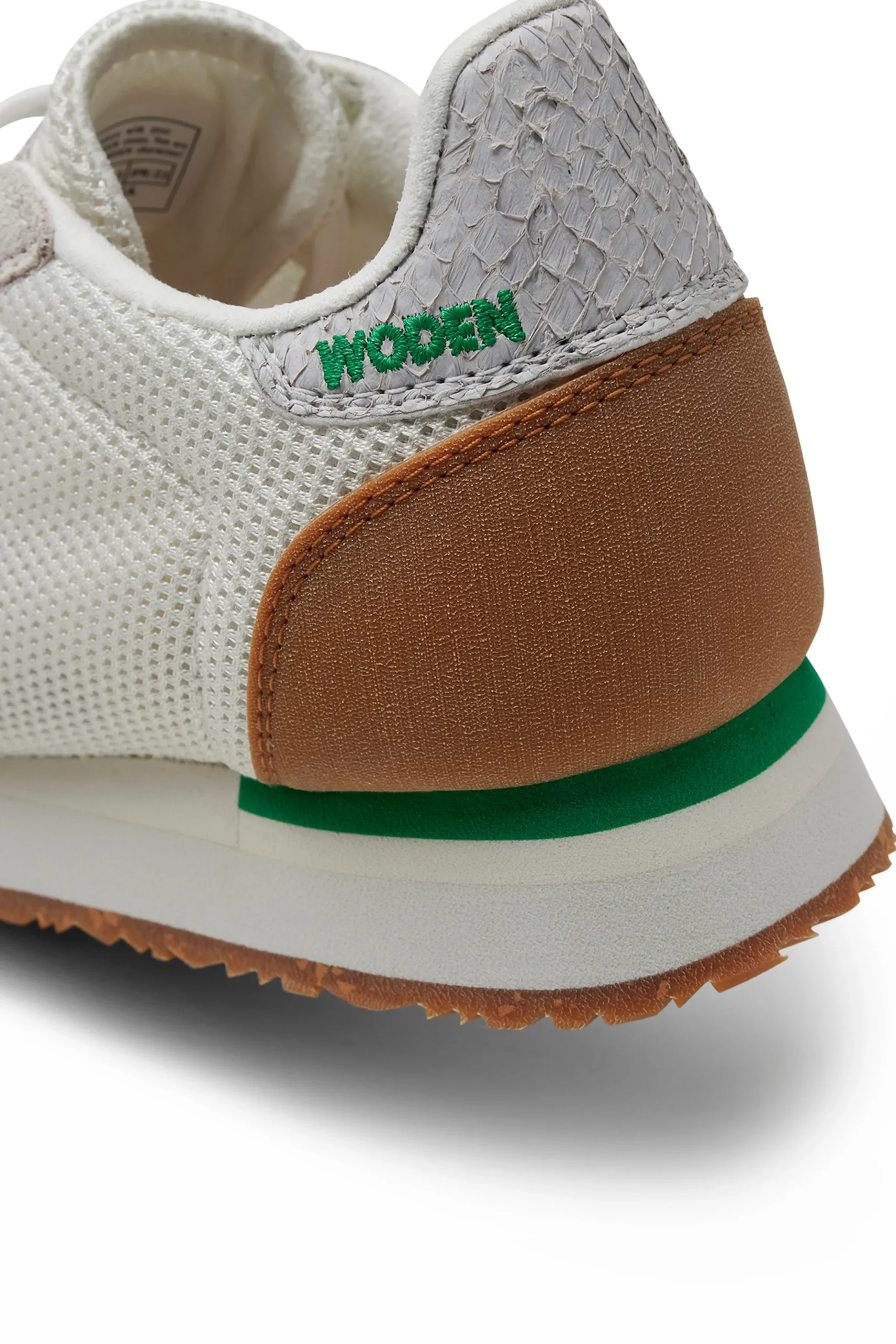 Sneakers fra WODEN med snøre. Overdel: 55% Textil/34% læder (100% LWG)/ 11% gummi. Inderside: 100% Textil (Microfiber materiale–50% genanvendt. Indersål: Kork. Ydersål: EVA mellemsål/Gummi ydersål (Indeholder 10% genanvendt gummiprikker.)