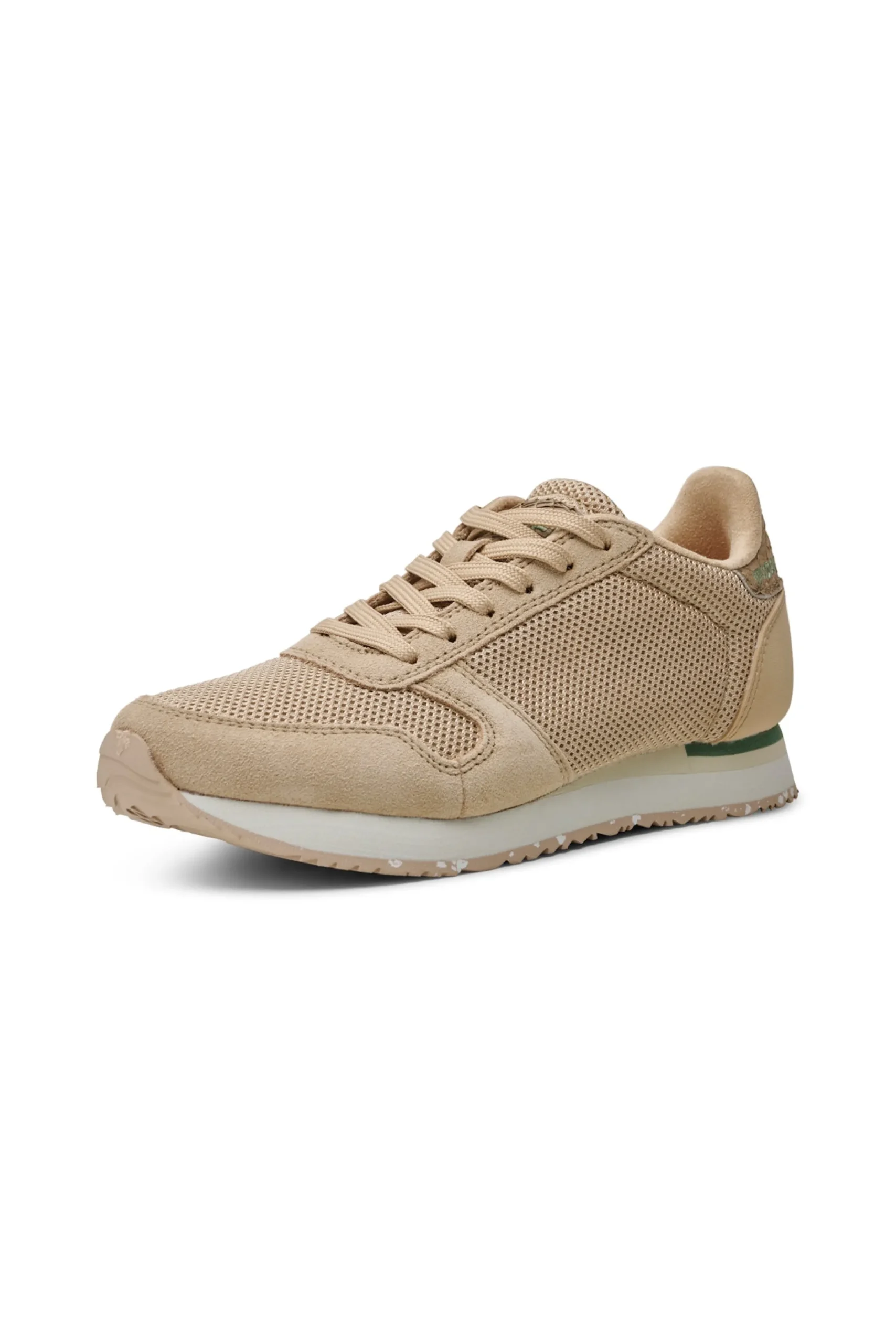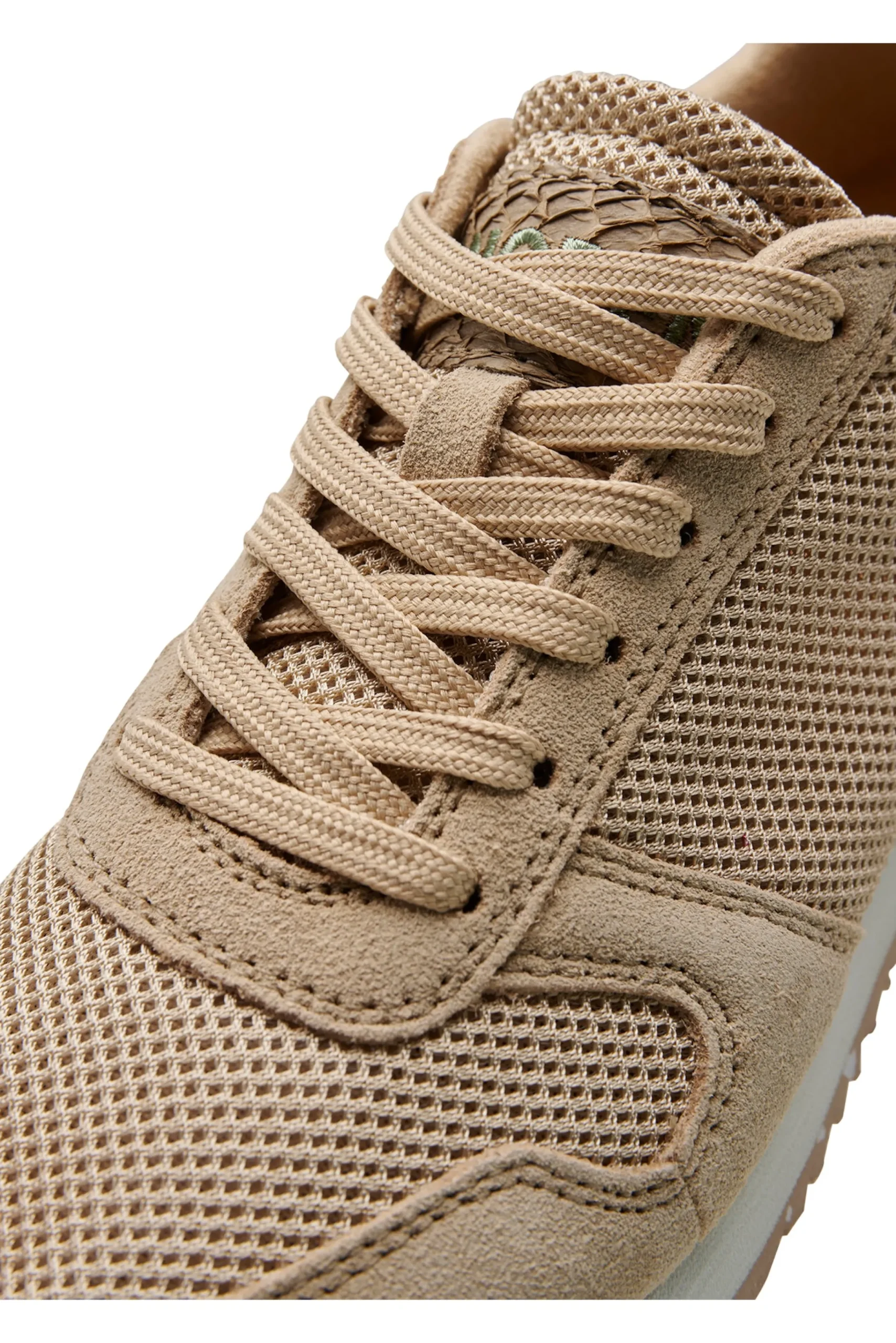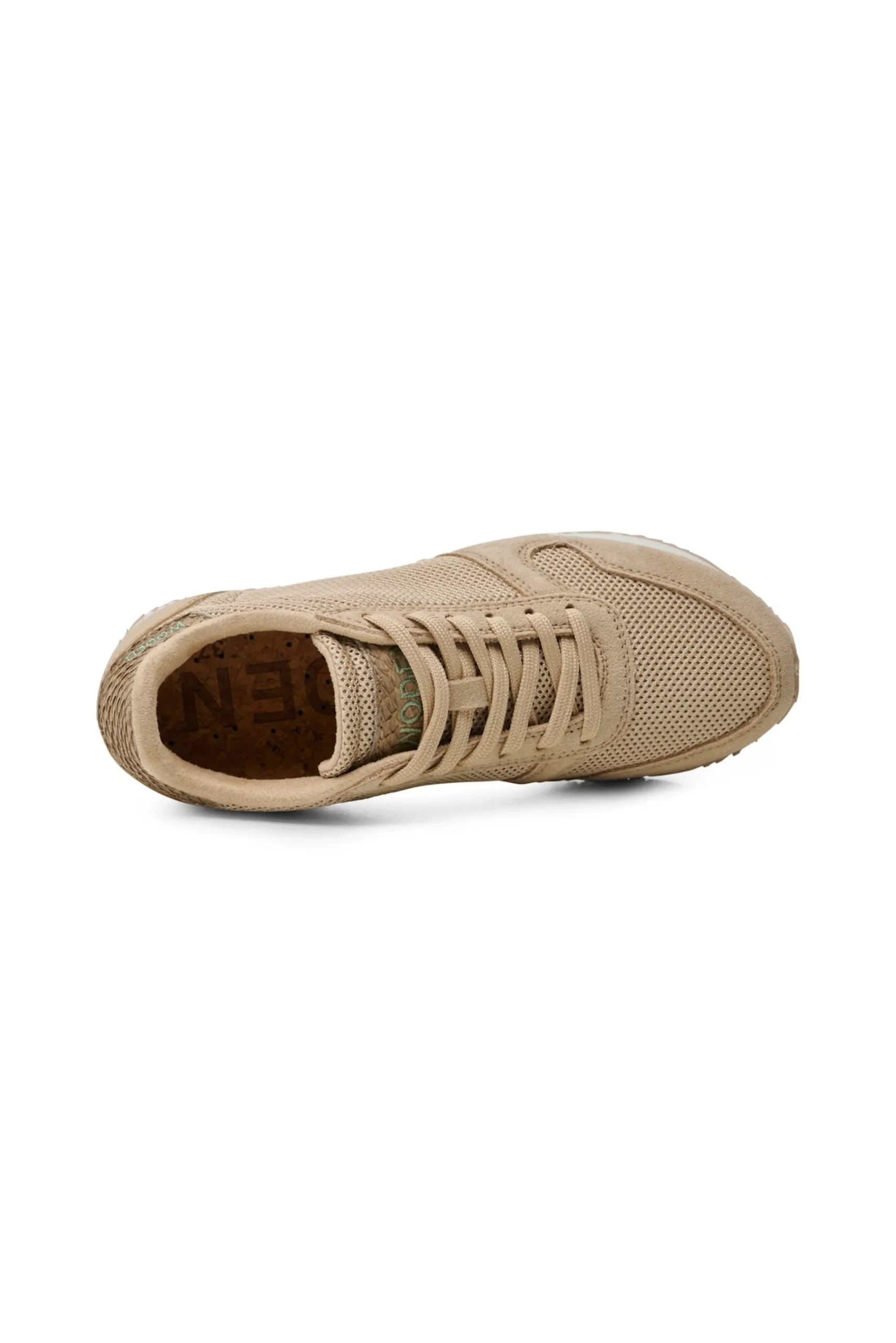 Sneakers fra WODEN med snøre. Overdel: 55% Textil/34% læder (100% LWG)/ 11% gummi. Inderside: 100% Textil (Microfiber materiale–50% genanvendt. Indersål: Kork. Ydersål: EVA mellemsål/Gummi ydersål (Indeholder 10% genanvendt gummiprikker.)
