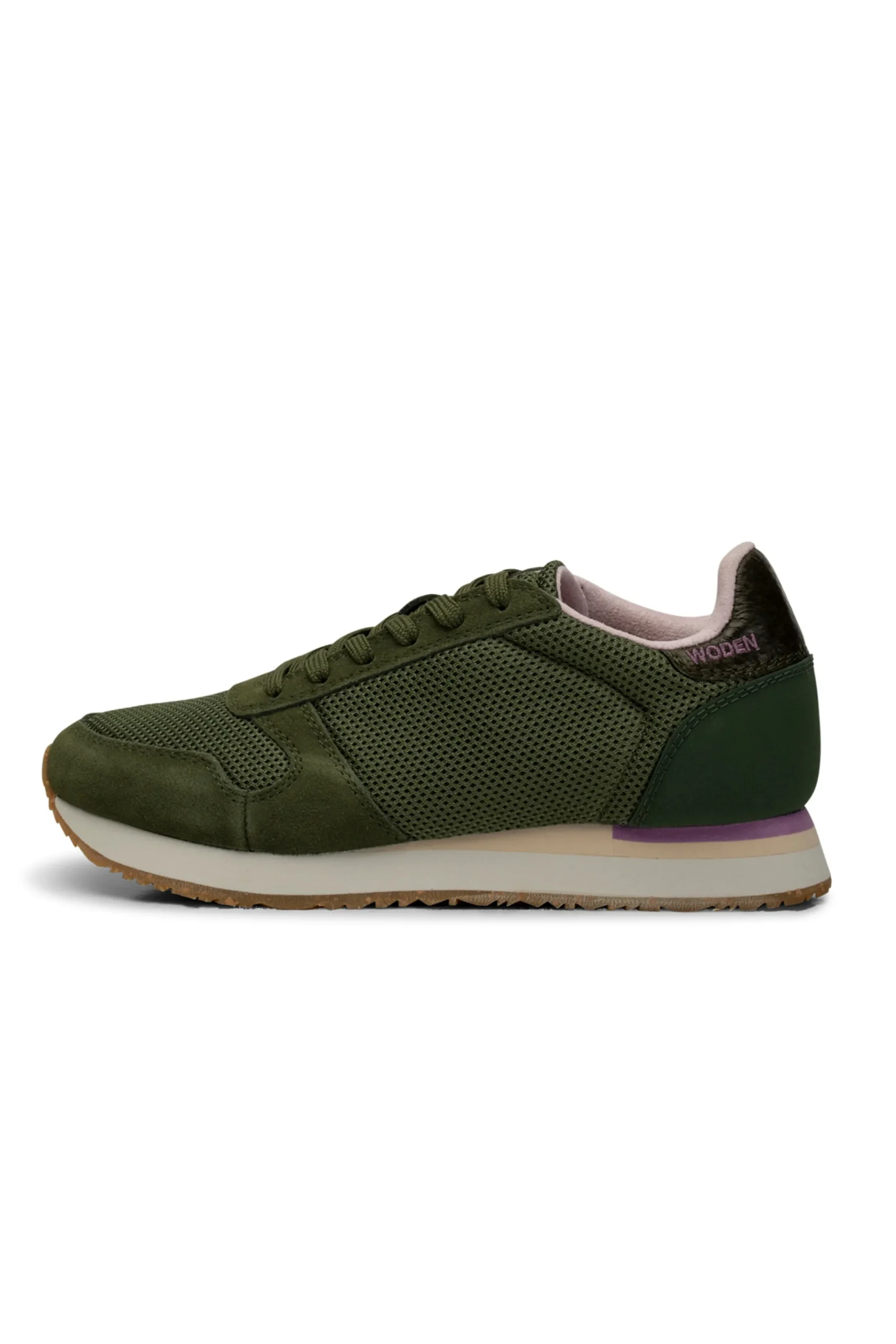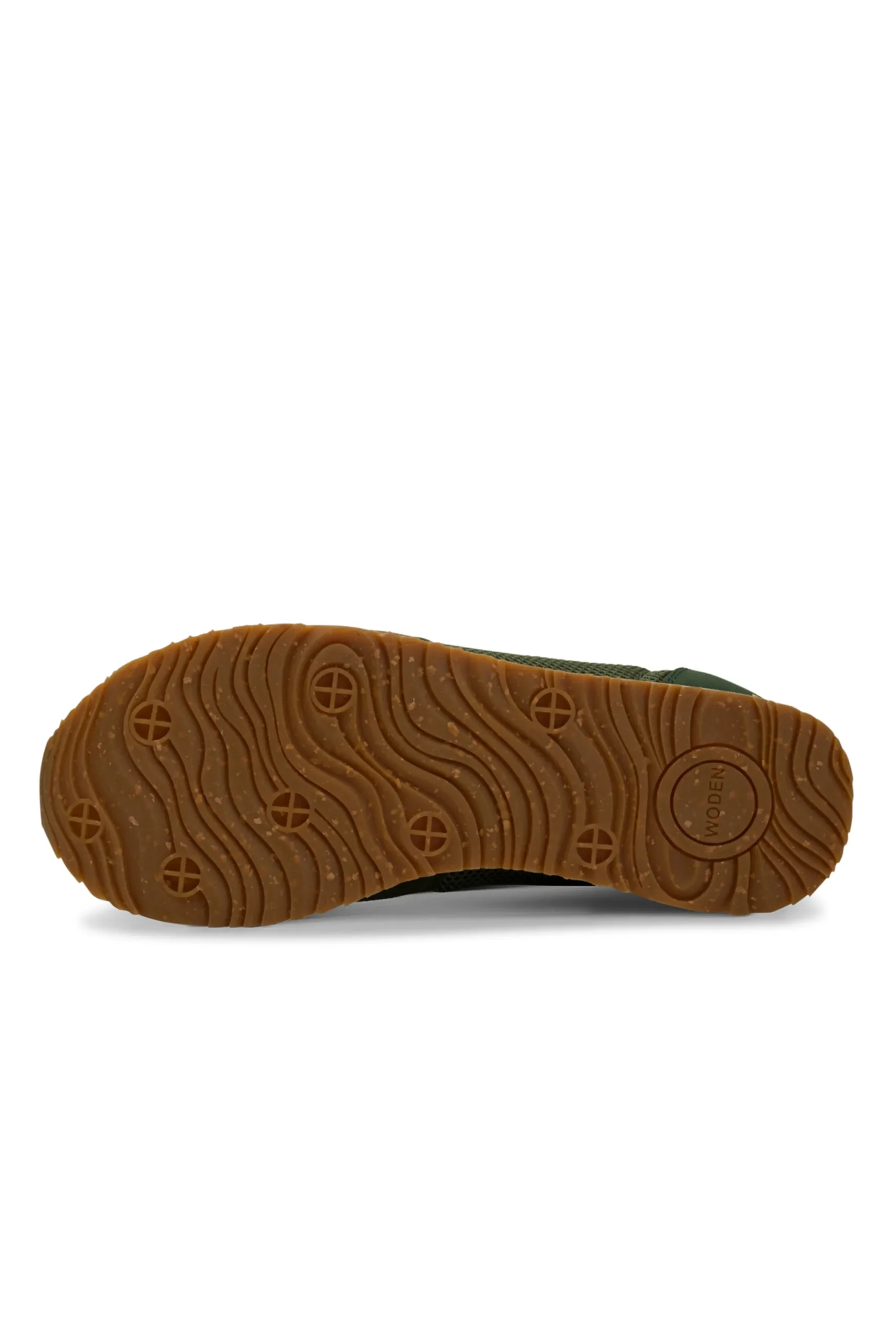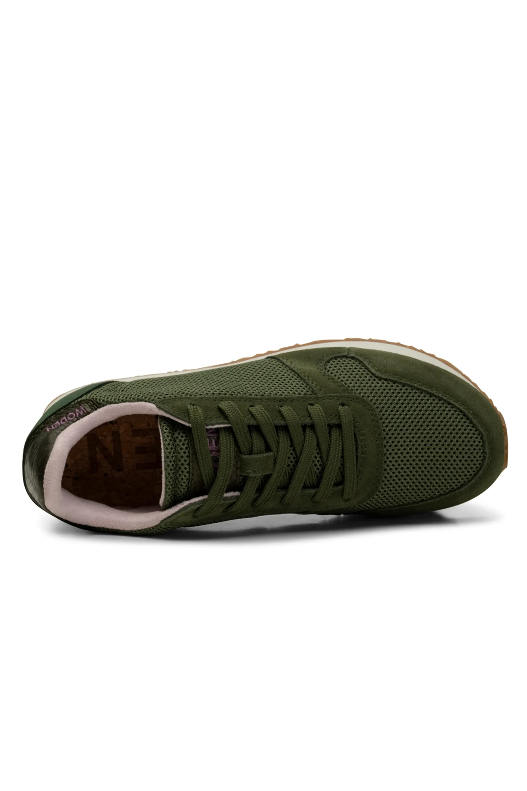 Sneakers fra WODEN med snøre. Overdel: 55% Textil/34% læder (100% LWG)/ 11% gummi. Inderside: 100% Textil (Microfiber materiale–50% genanvendt. Indersål: Kork. Ydersål: EVA mellemsål/Gummi ydersål (Indeholder 10% genanvendt gummiprikker.)
